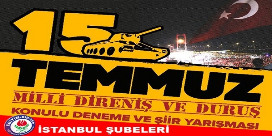 Eğitim-Bir-Sen İstanbul Şubeleri, şehit ve gazilerimizin hatıralarını yaşatmak, Milli irade bilincini ve direniş ruhunu canlı tutmak, tarih boyunca yaşanan yakın ve uzak çevredeki darbe ve hainliklere karşı duyarlılığı artırmak amacıyla, eğitim çalışanları arası, ödüllü, 15 TEMMUZ MİLLÎ DİRENİŞ VE DURUŞ konulu ŞİİR ve DENEME yarışması düzenliyor.