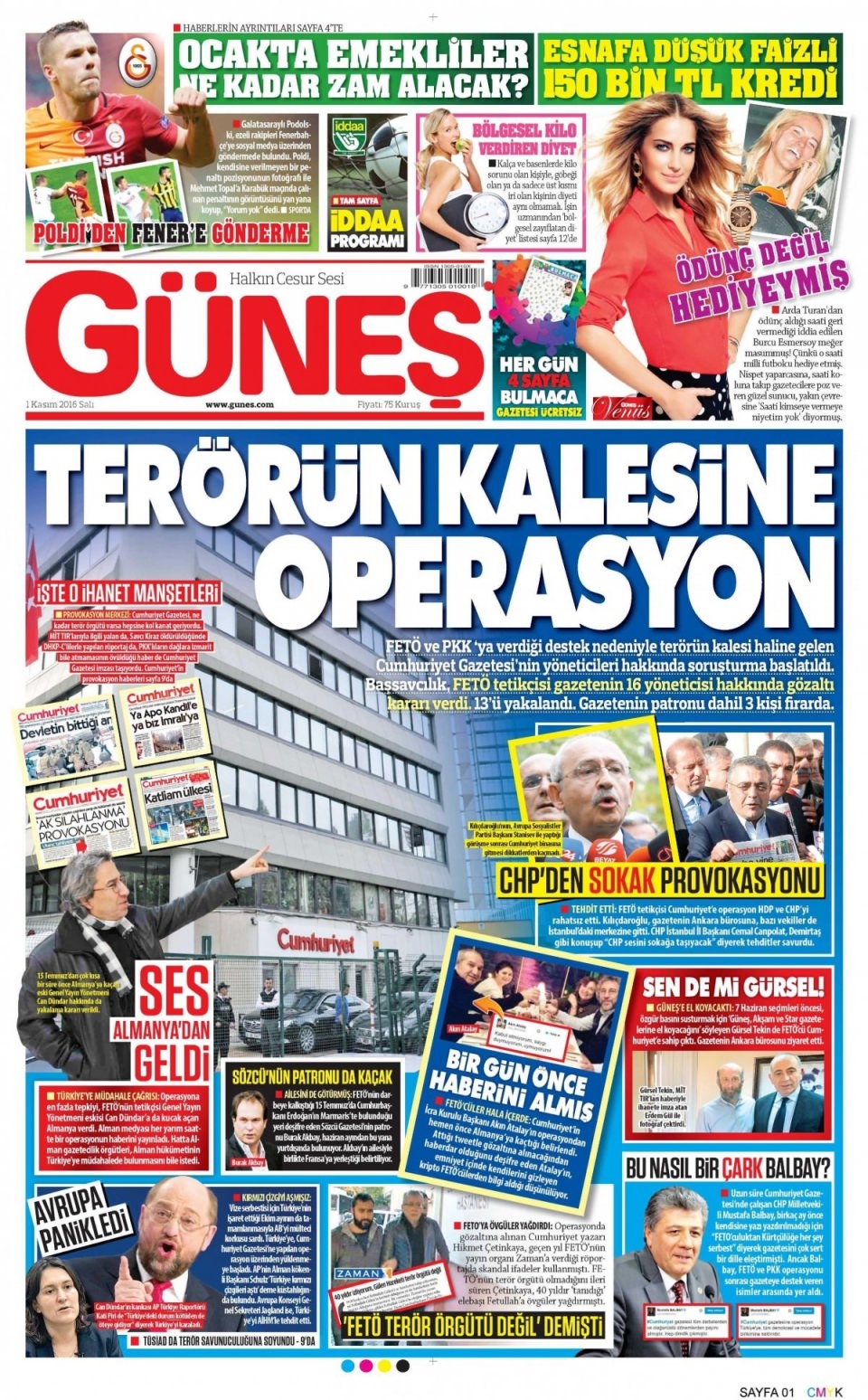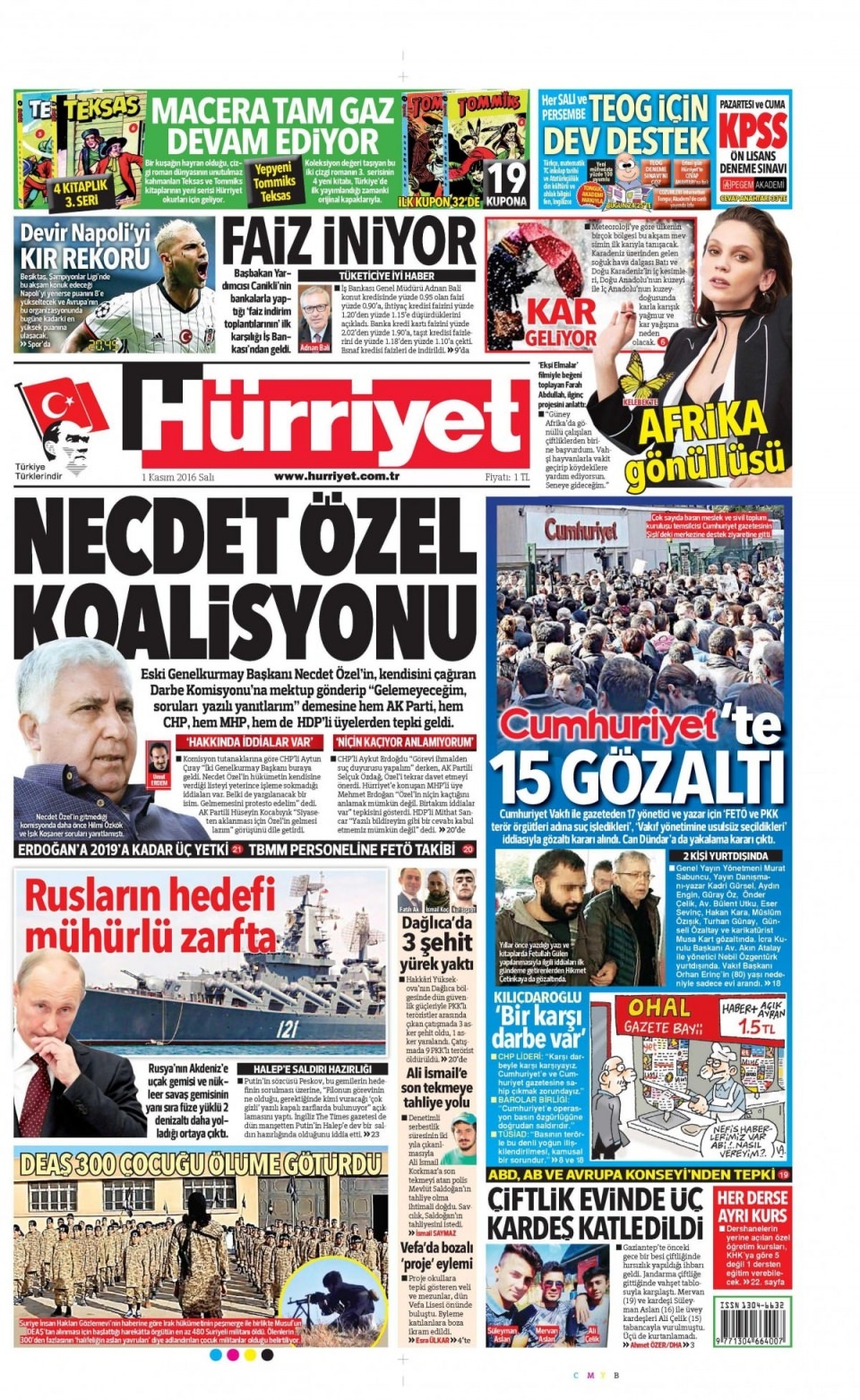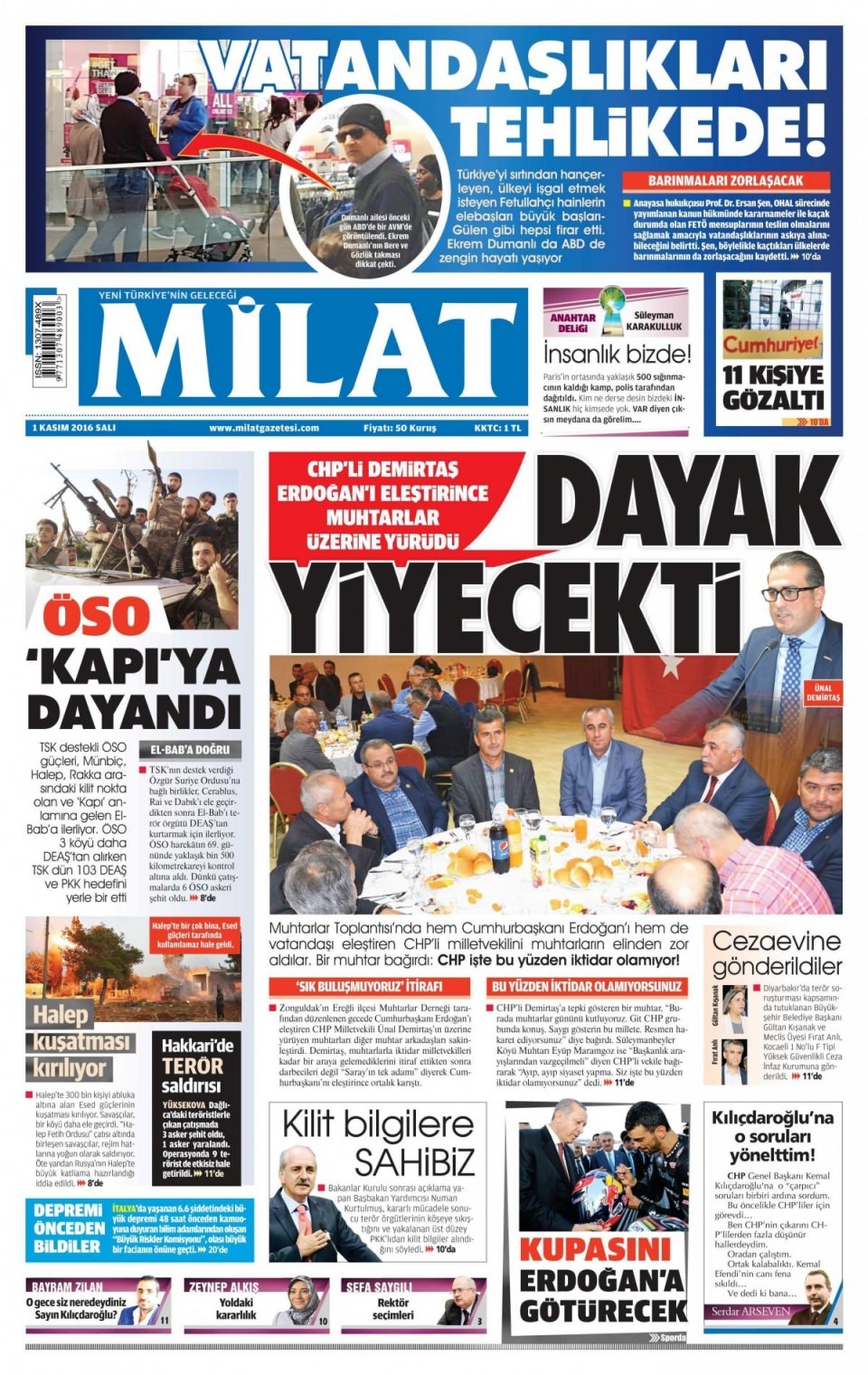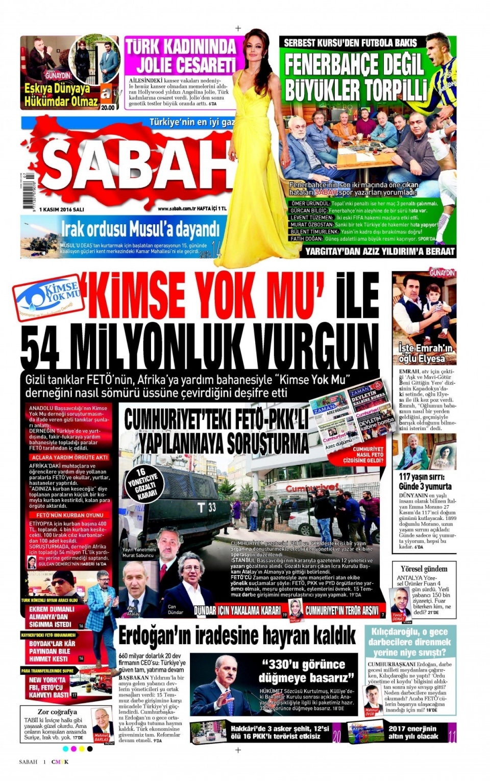 1 Kasım Salı günün gazete manşetleri