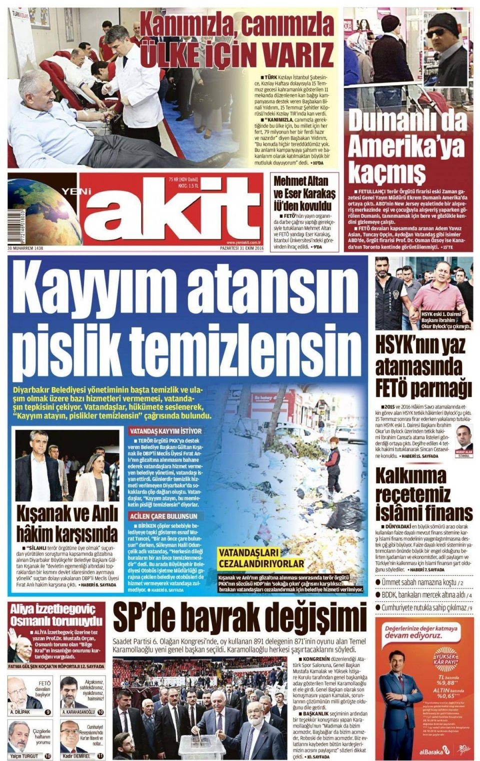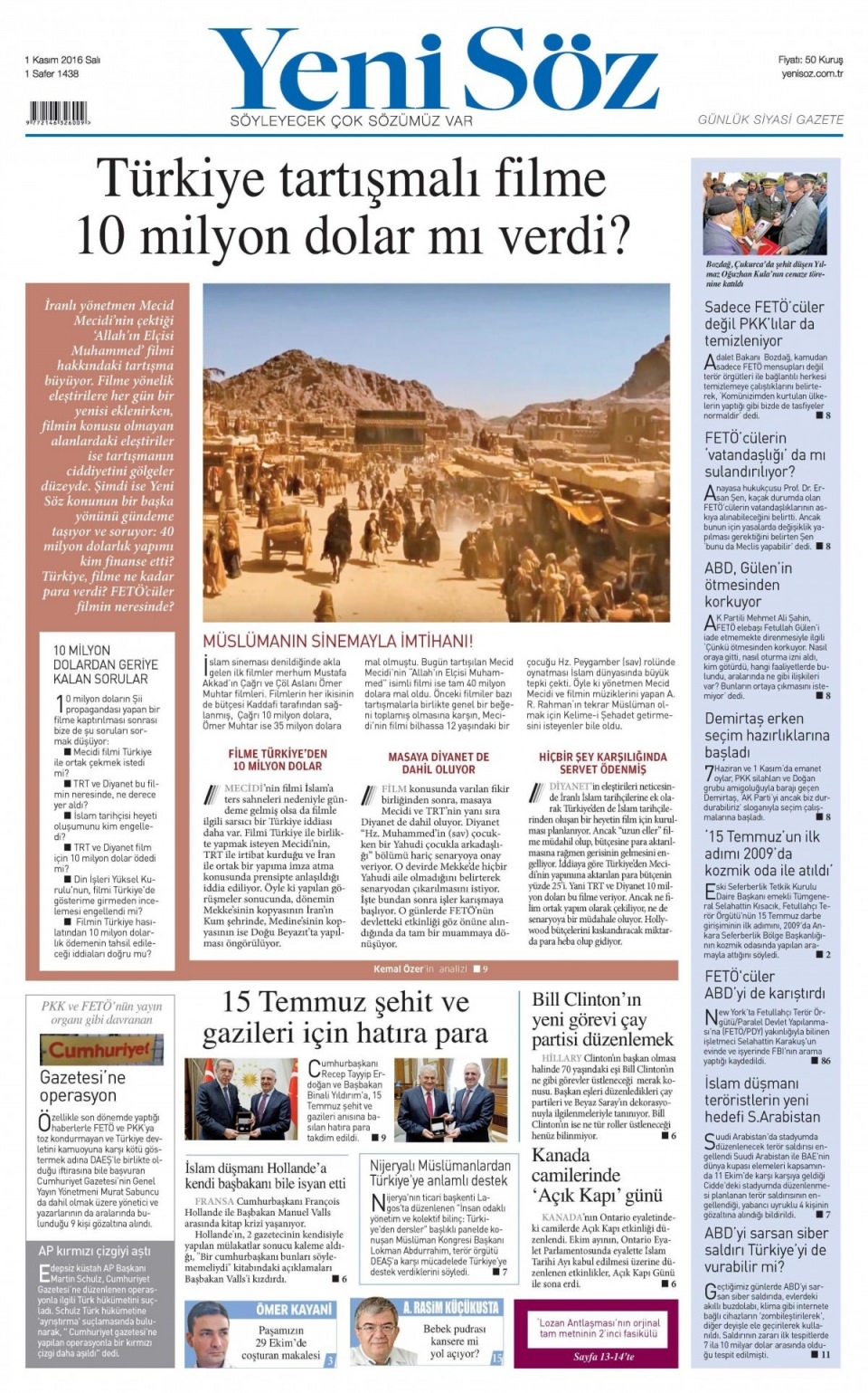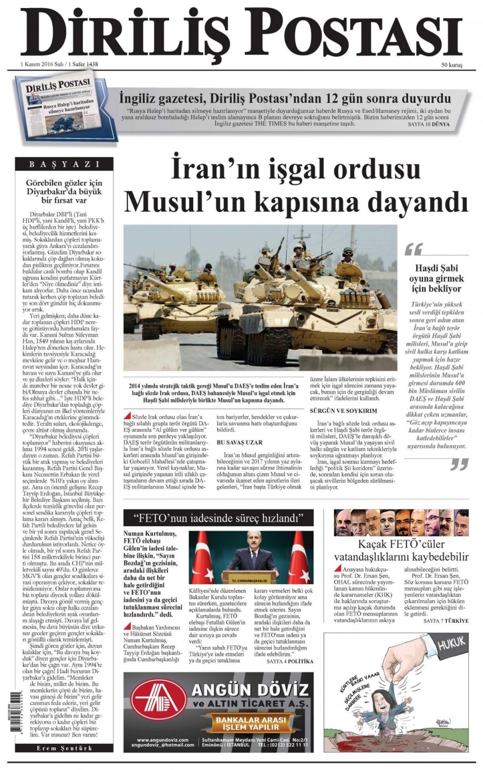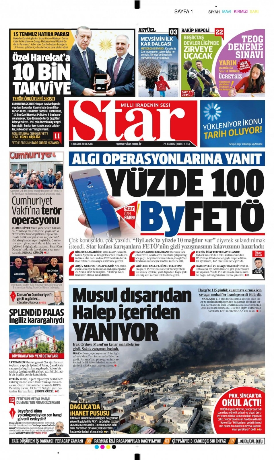 1 Kasım Salı günün gazete manşetleri