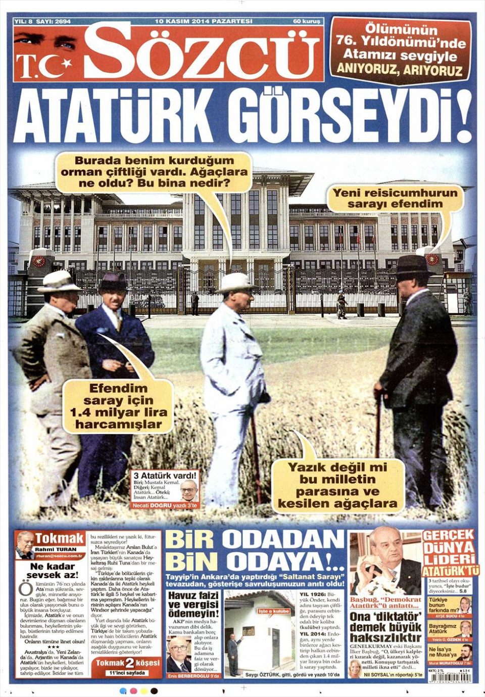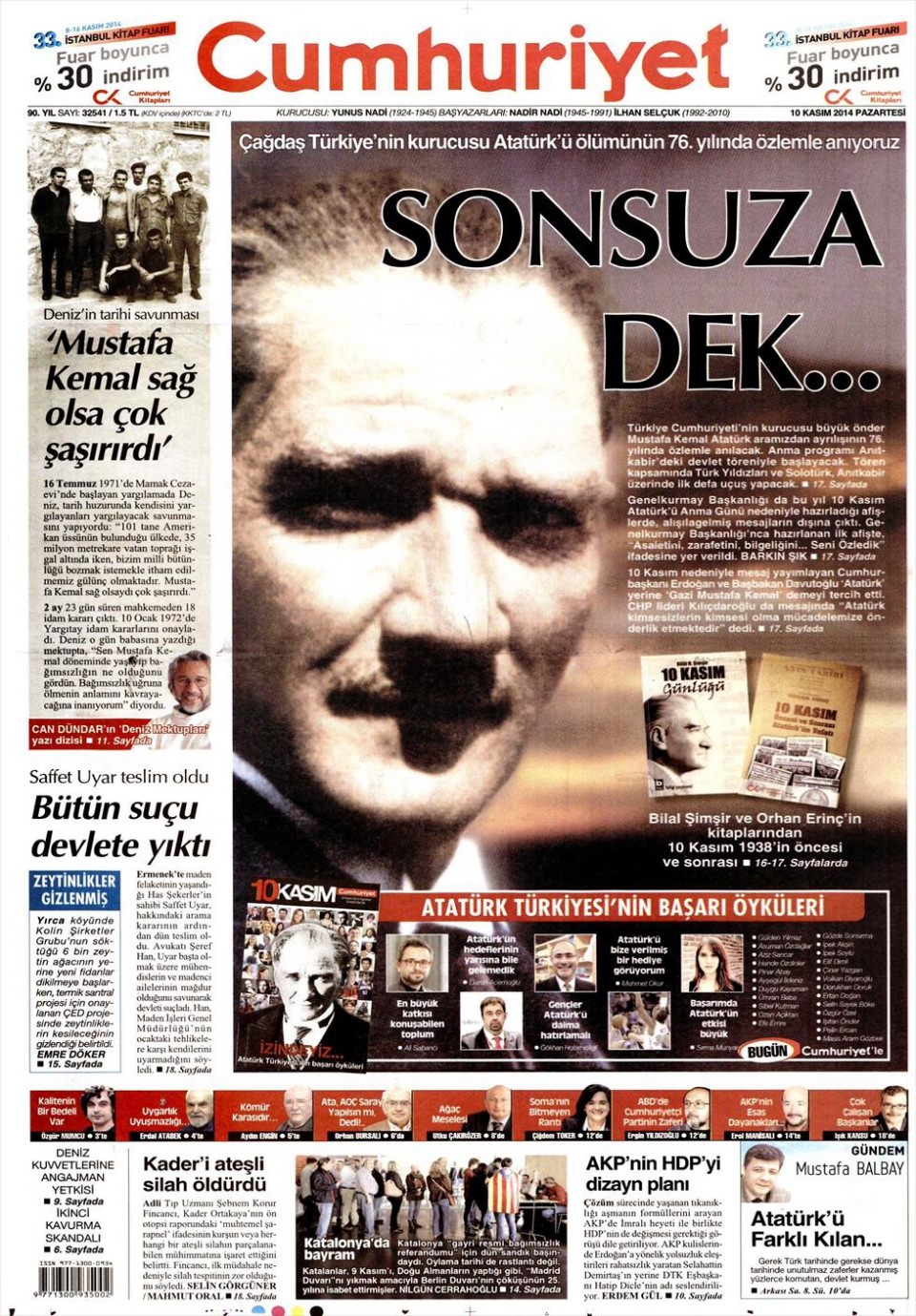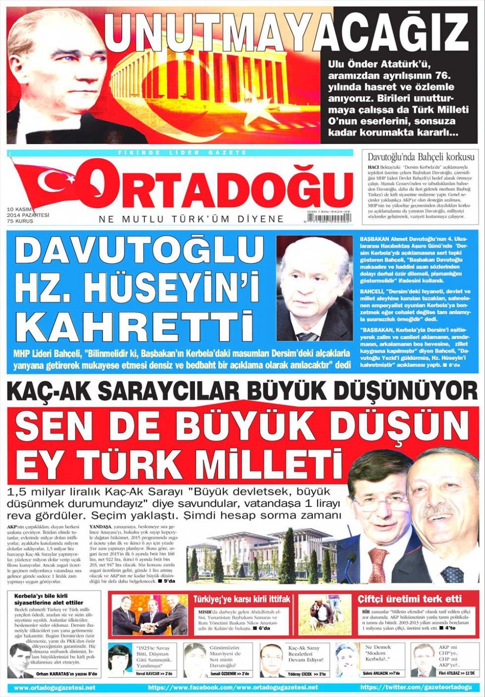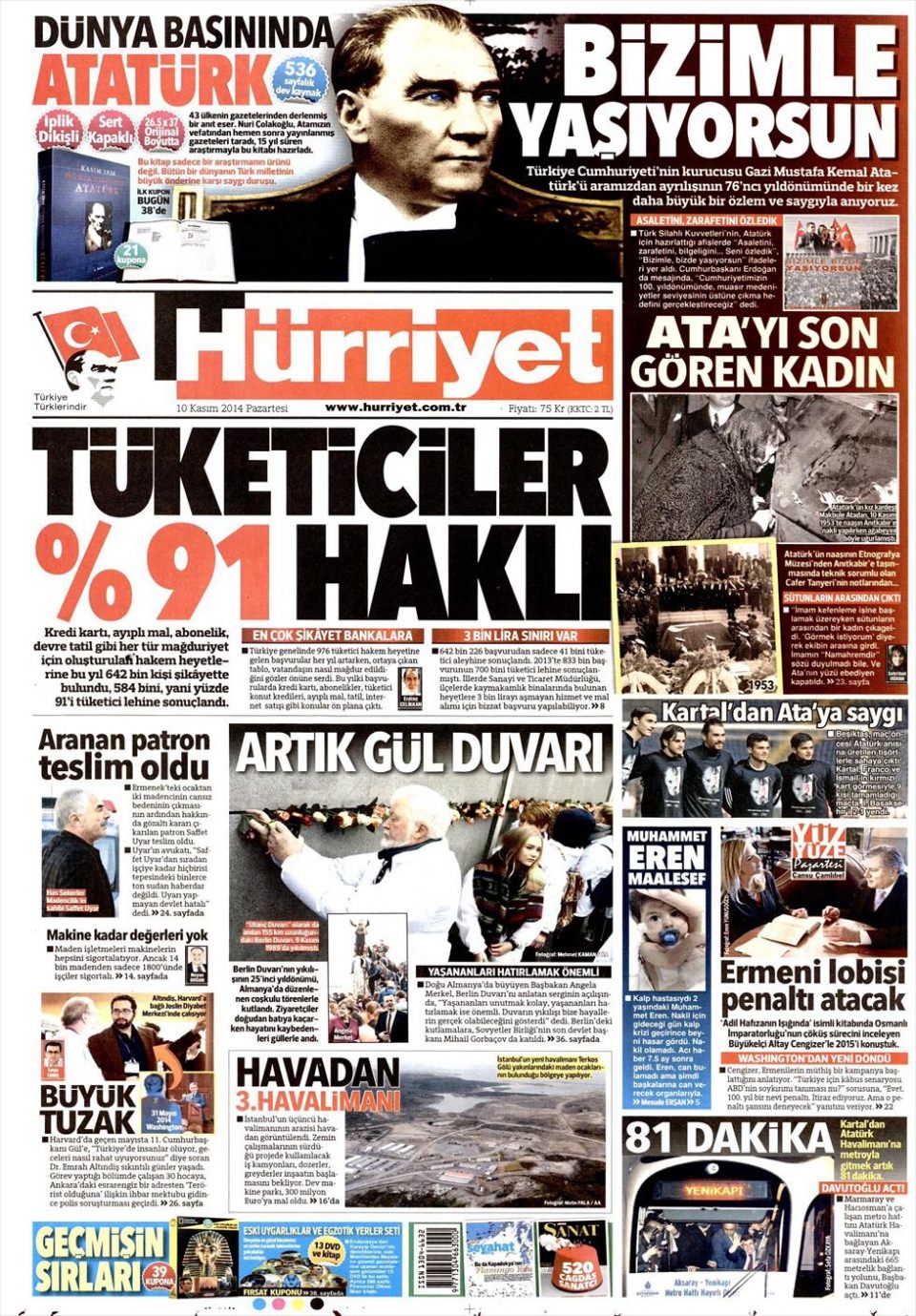 10 Kasım 2014 gazete manşetleri