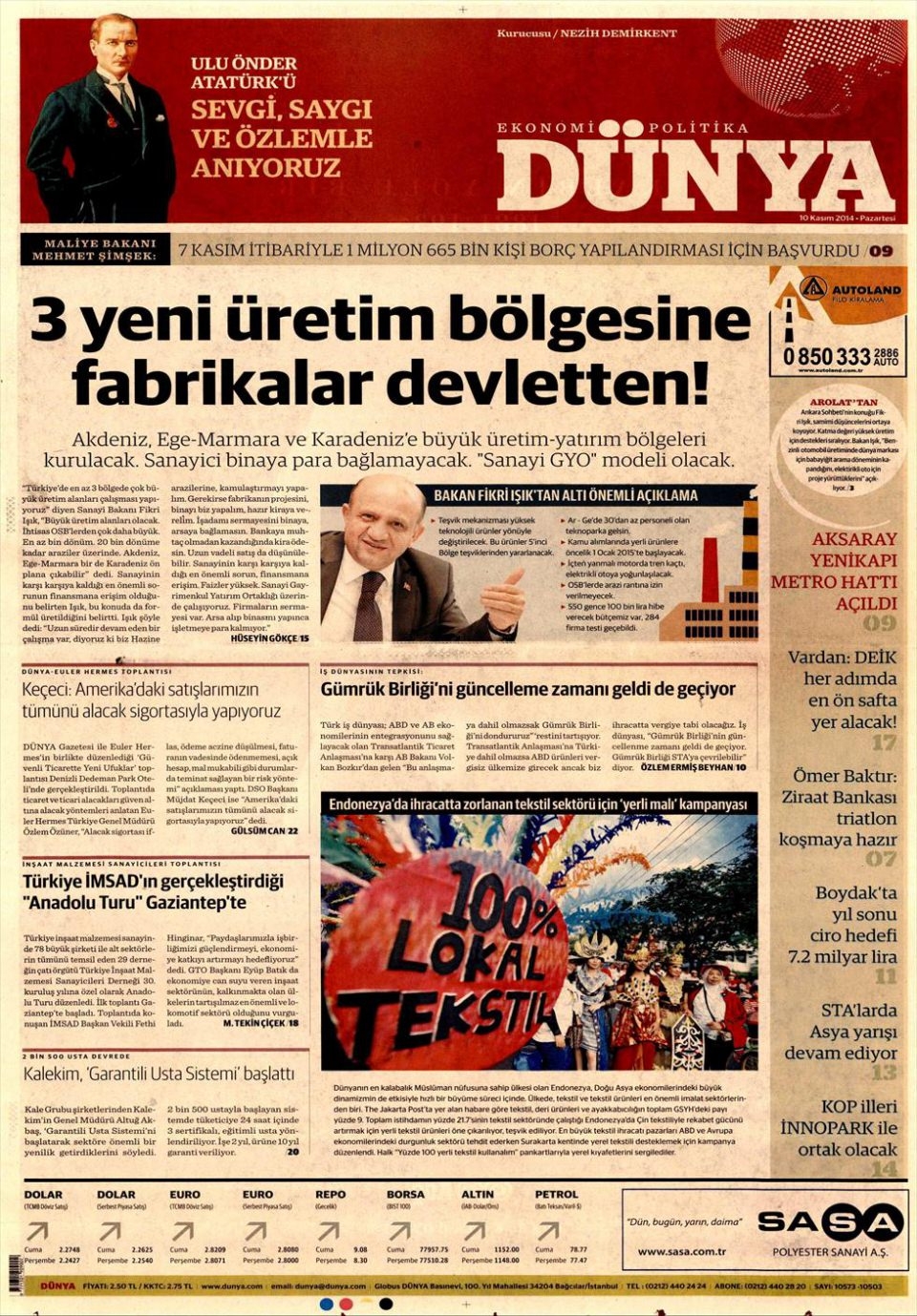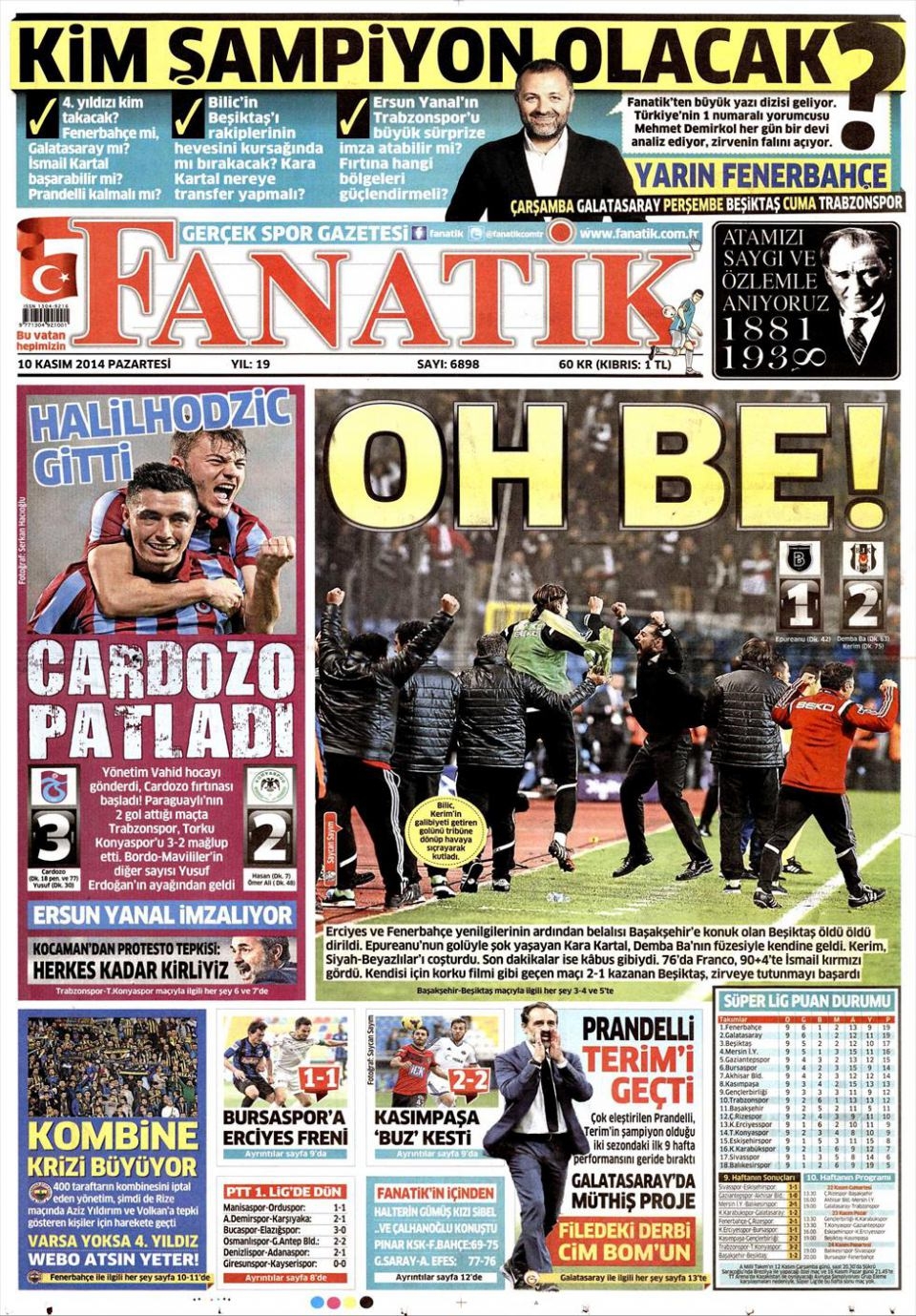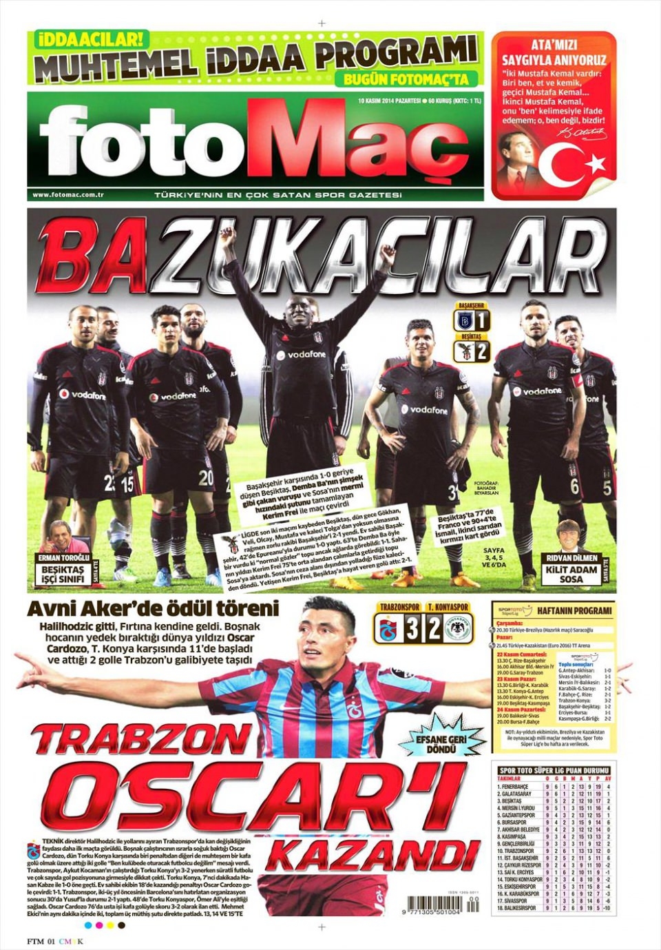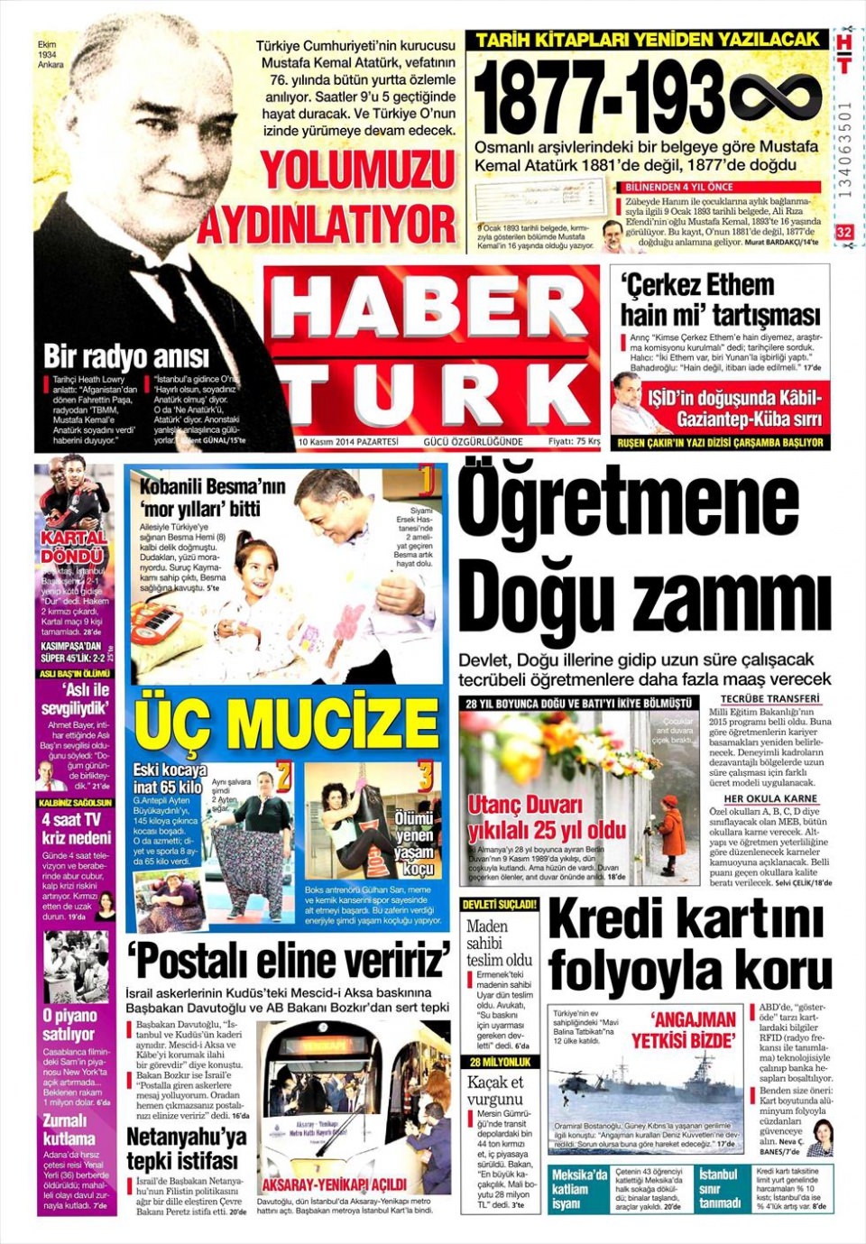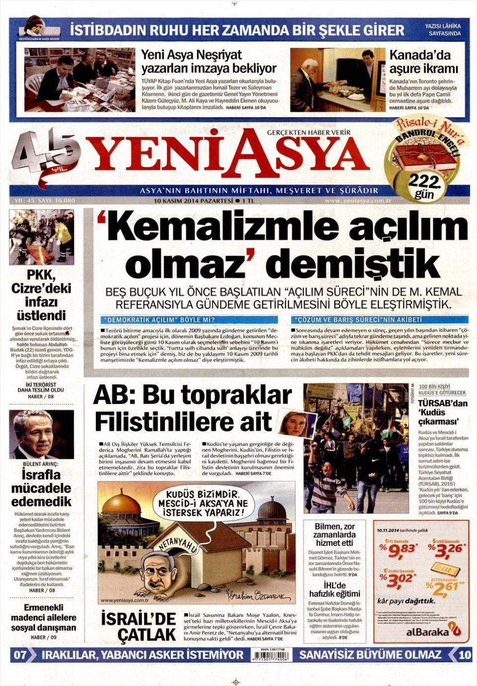 10 Kasım 2014 gazete manşetleri