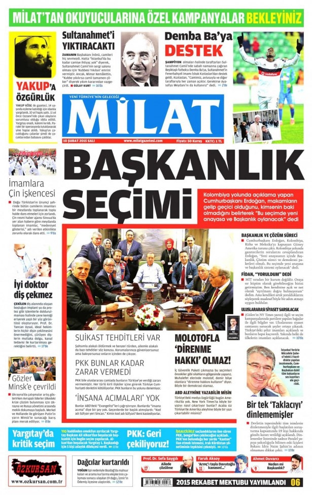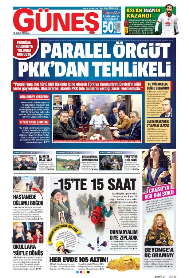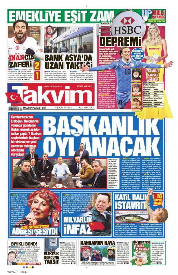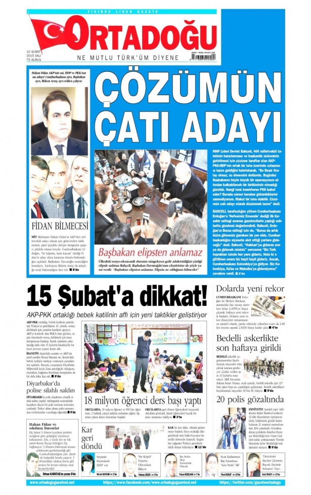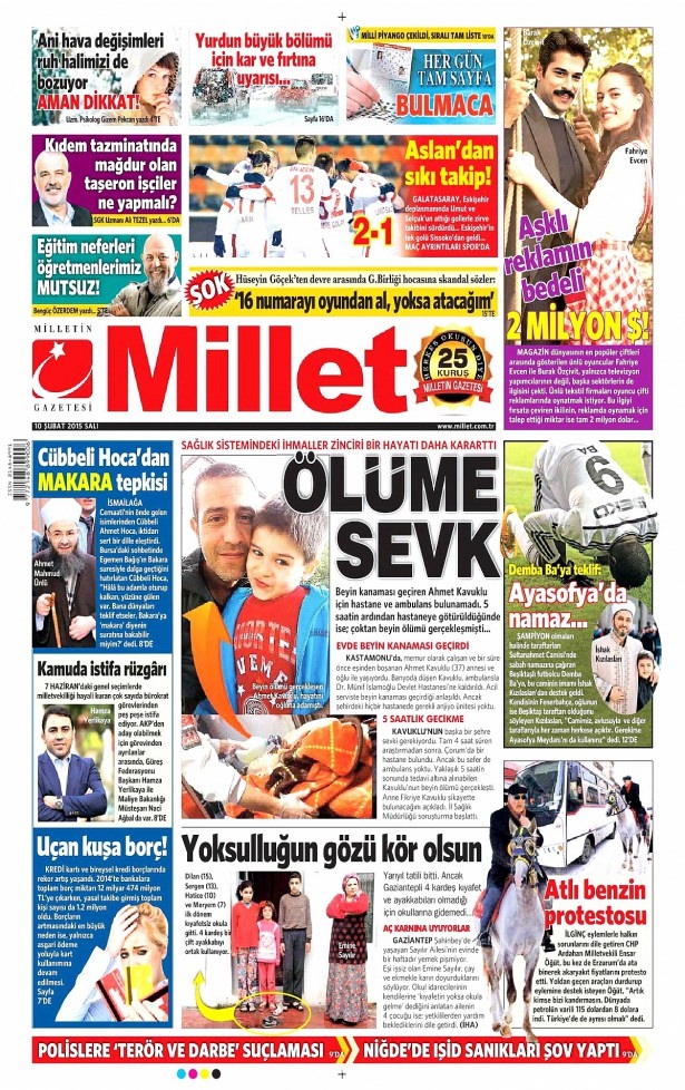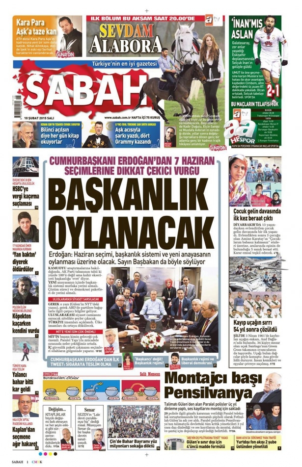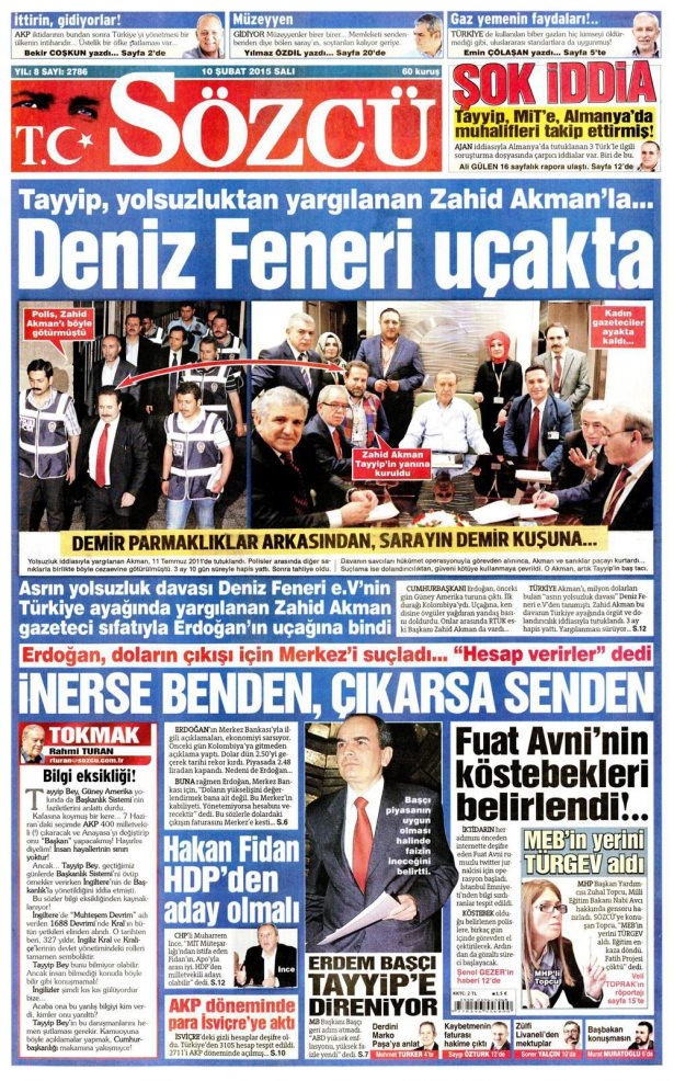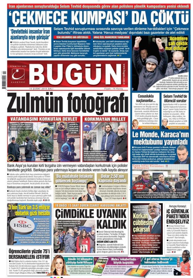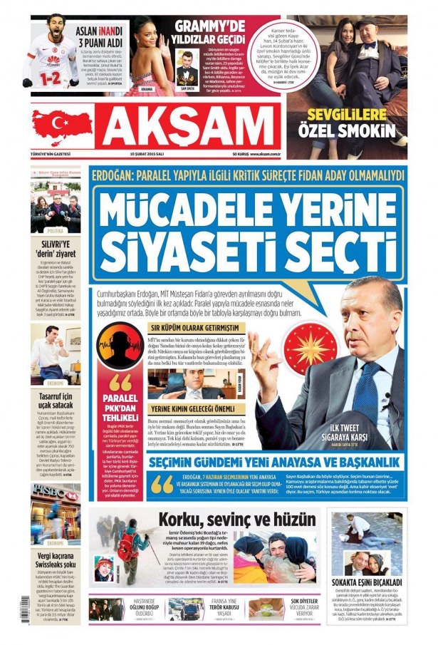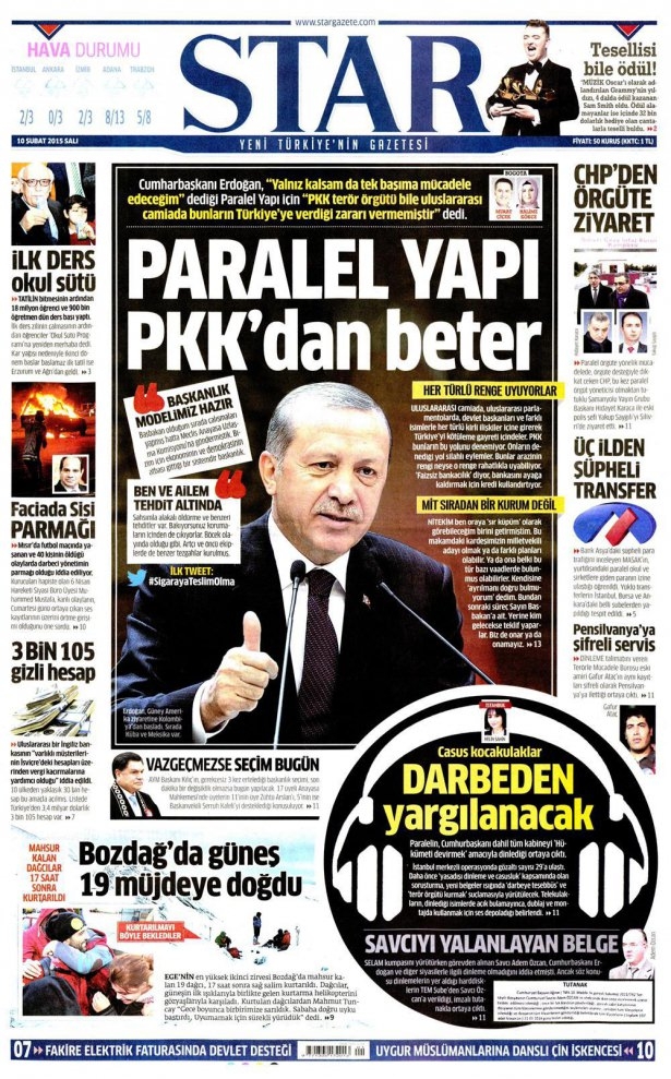 10 Şubat 2015 gazete manşetleri