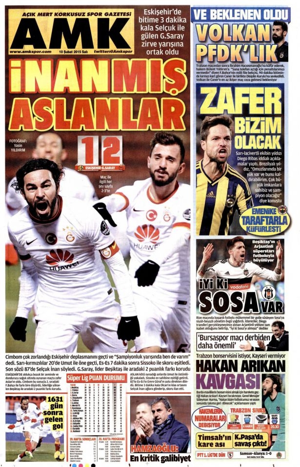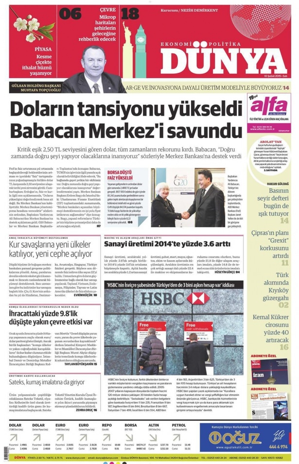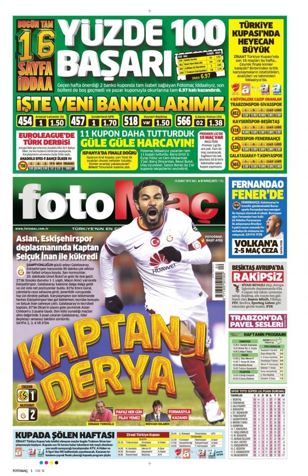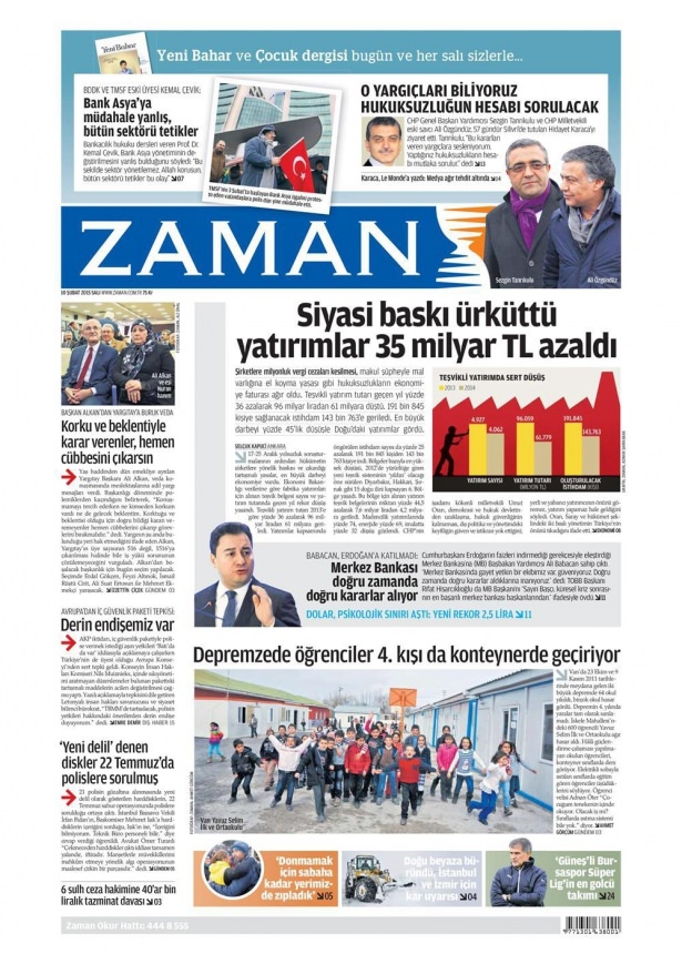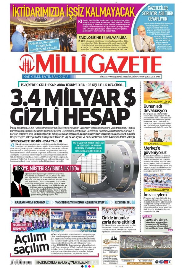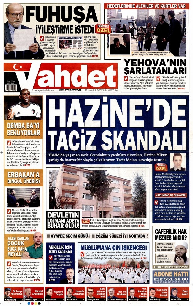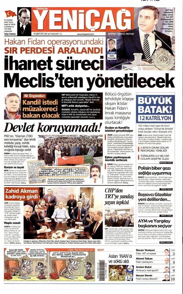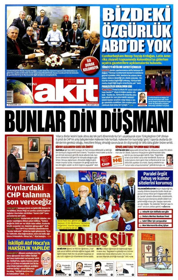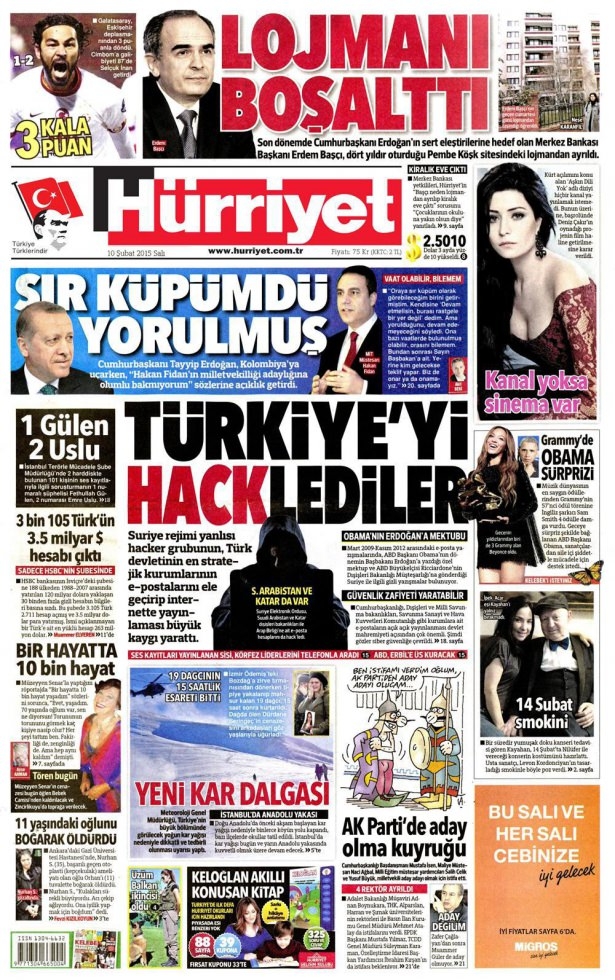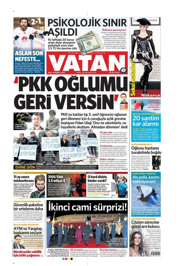 10 Şubat 2015 gazete manşetleri