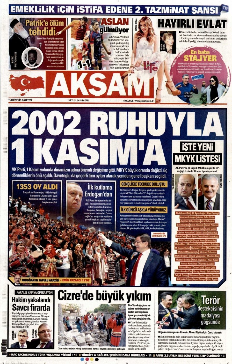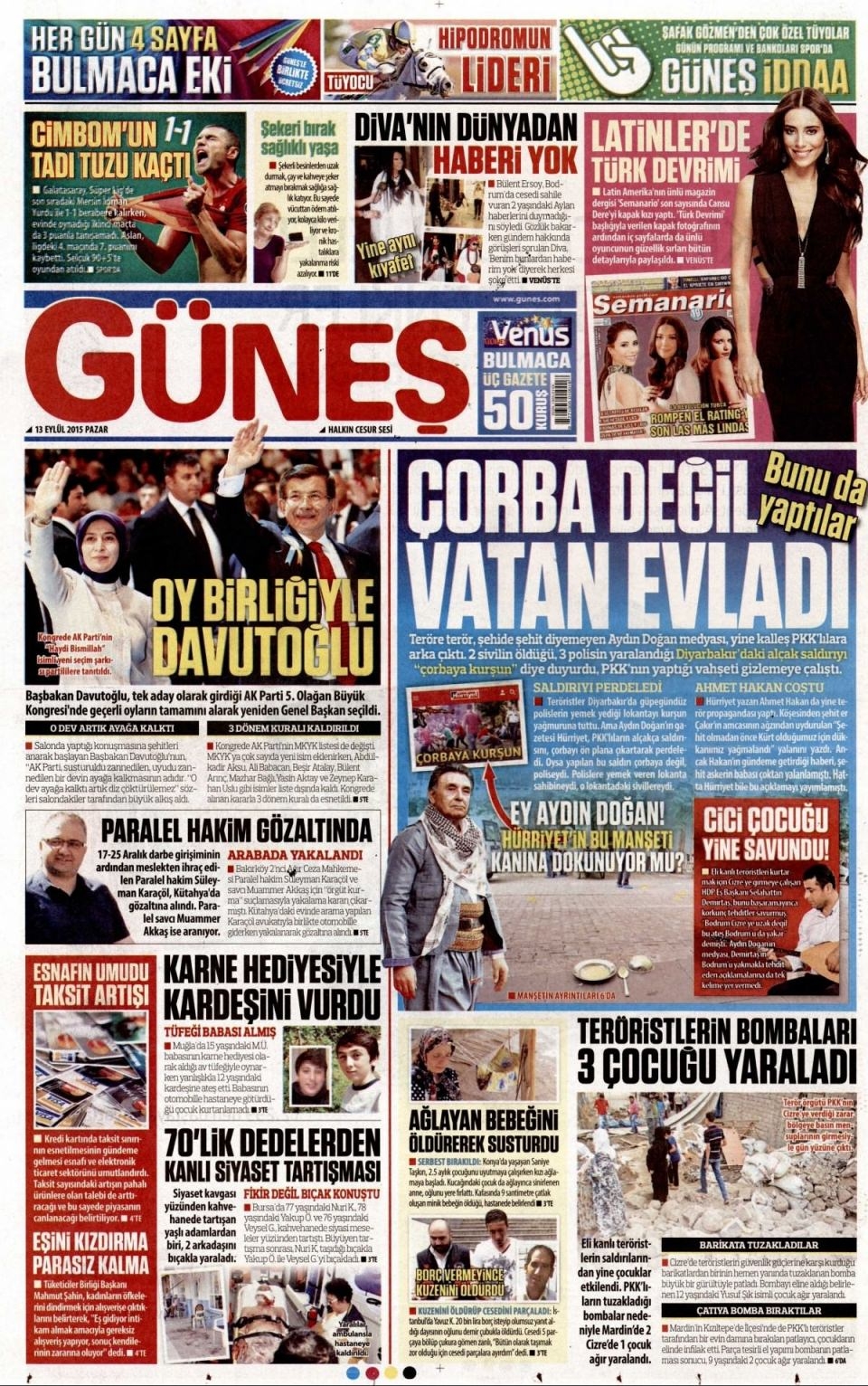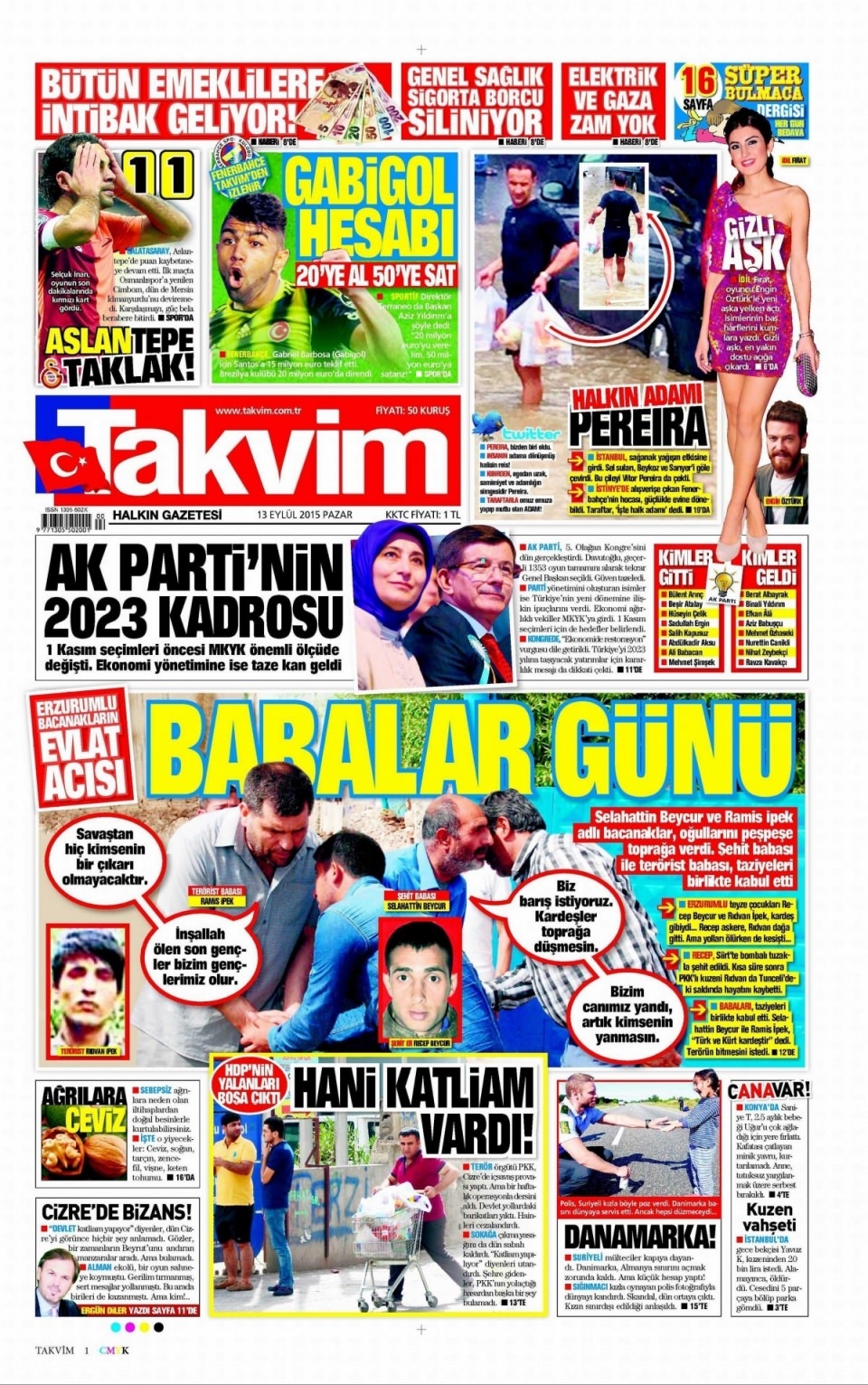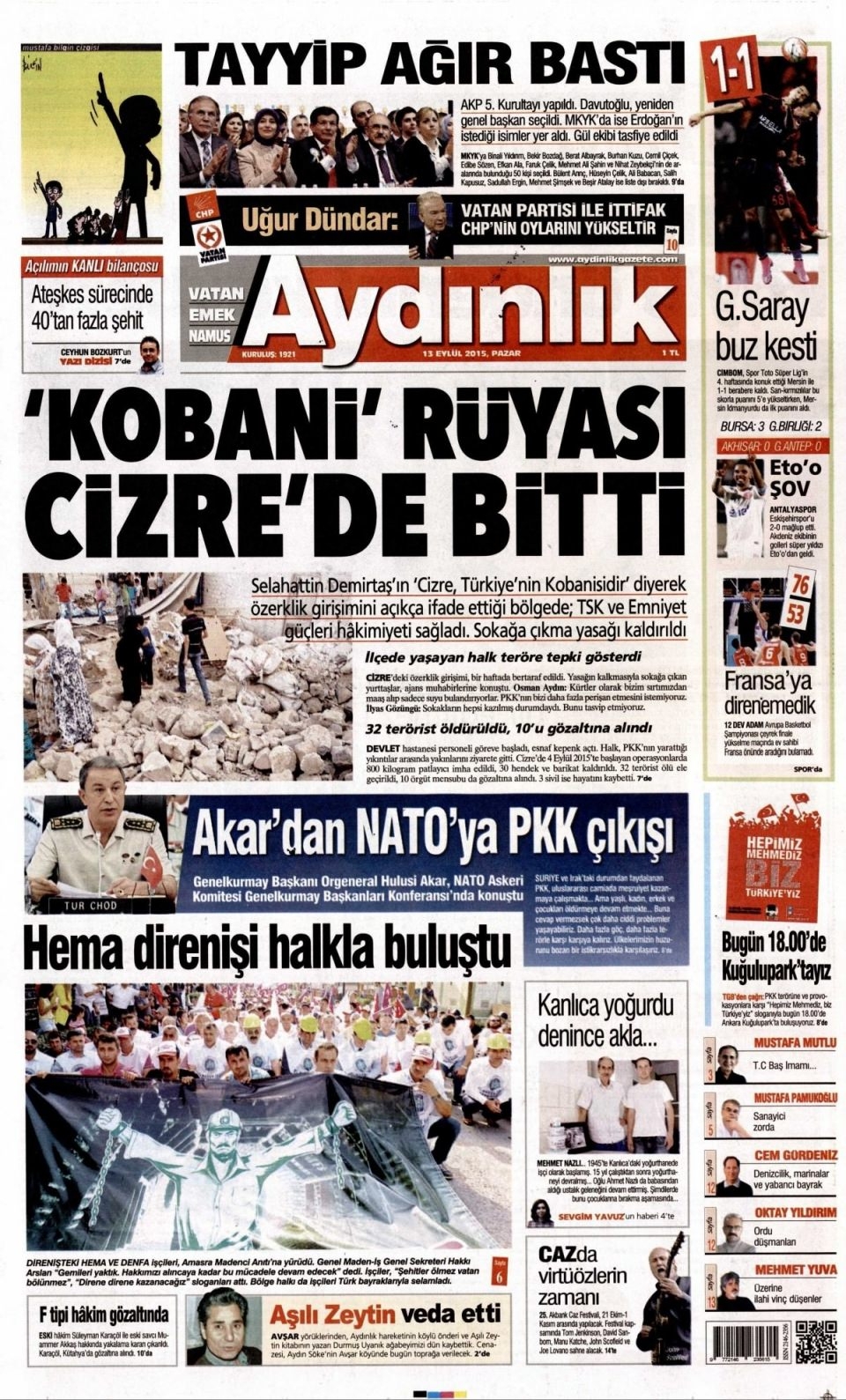 13 Eylül Pazar günü gazete manşetleri