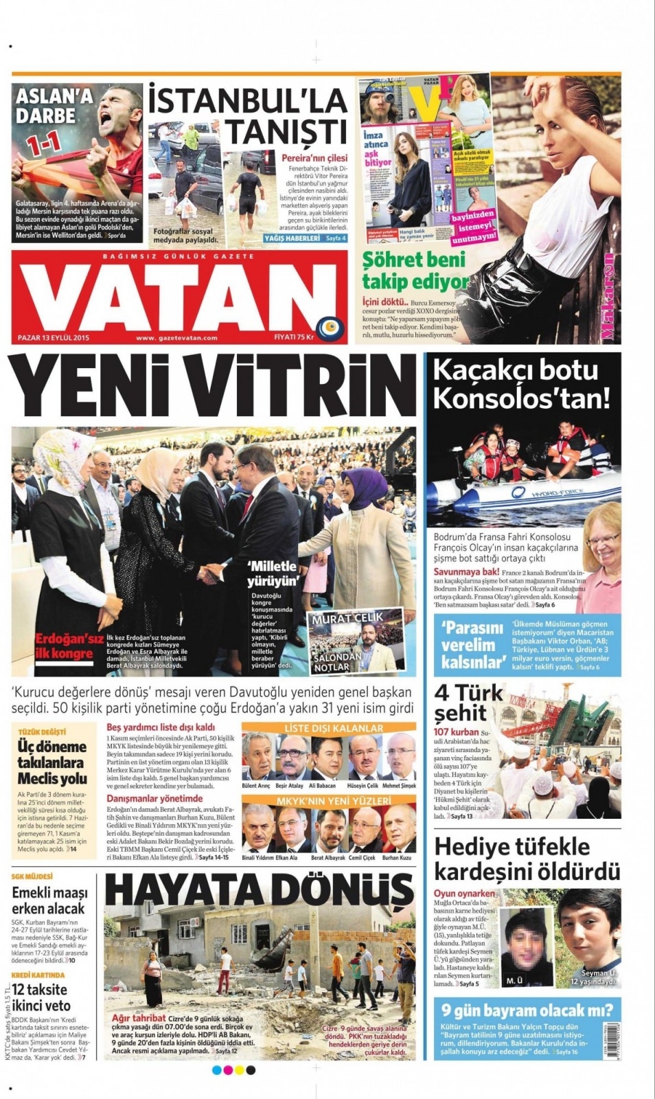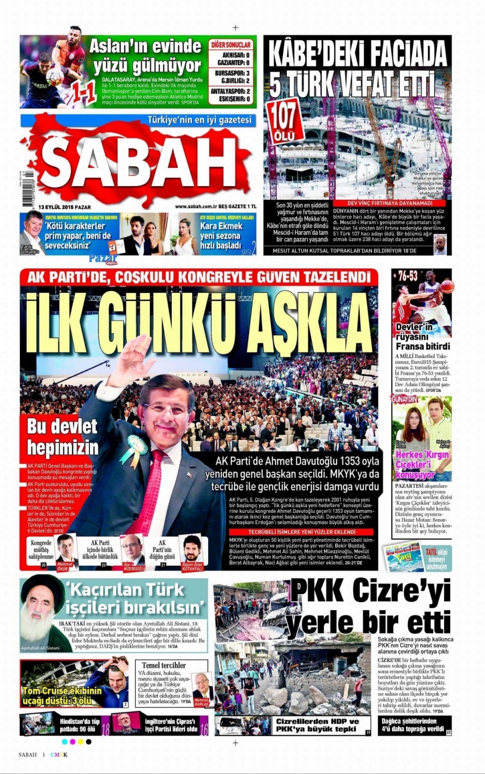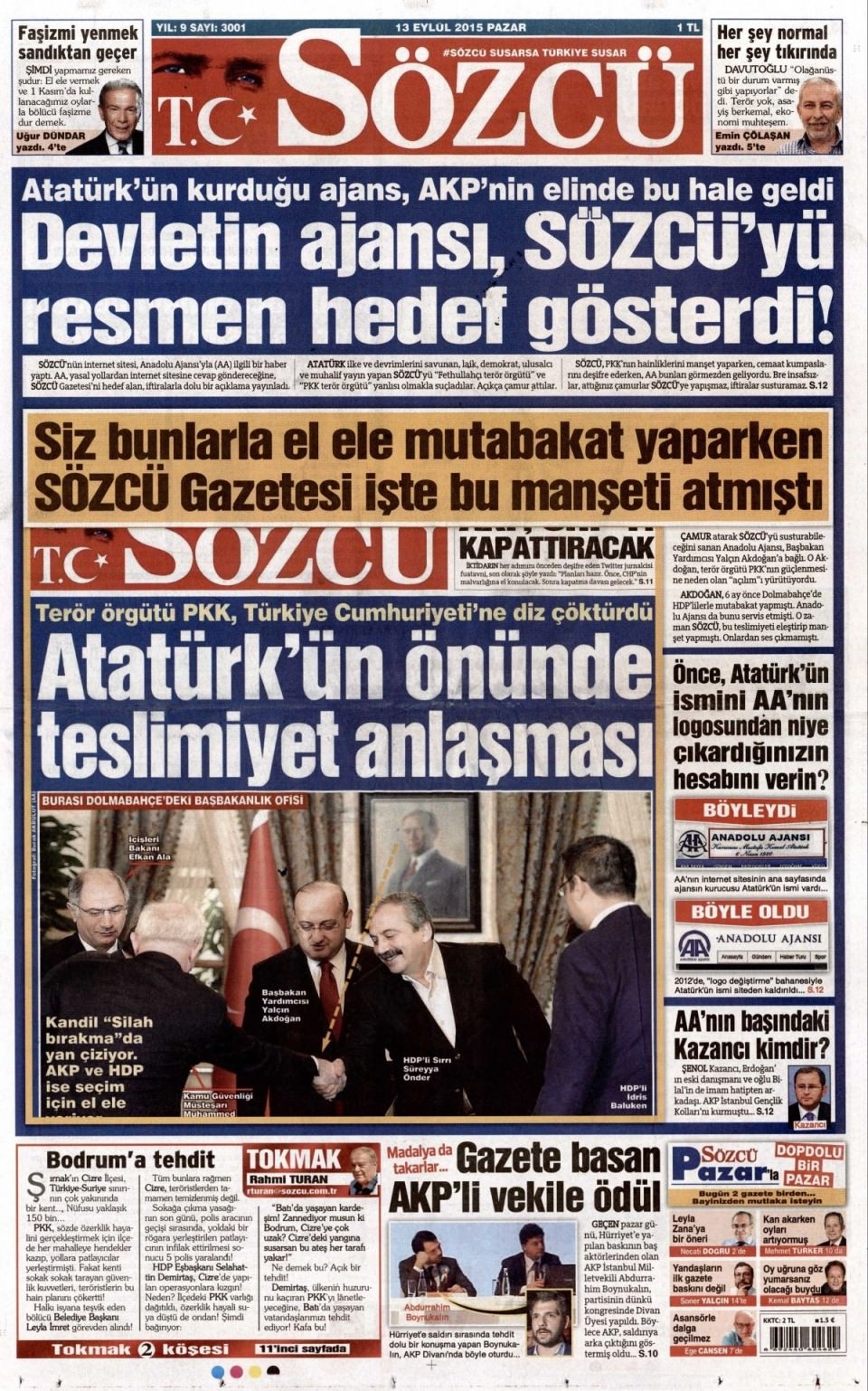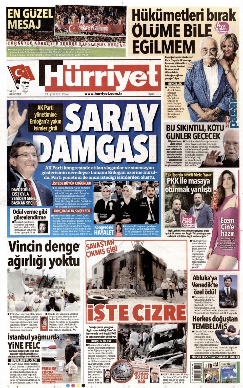 13 Eylül Pazar günü gazete manşetleri