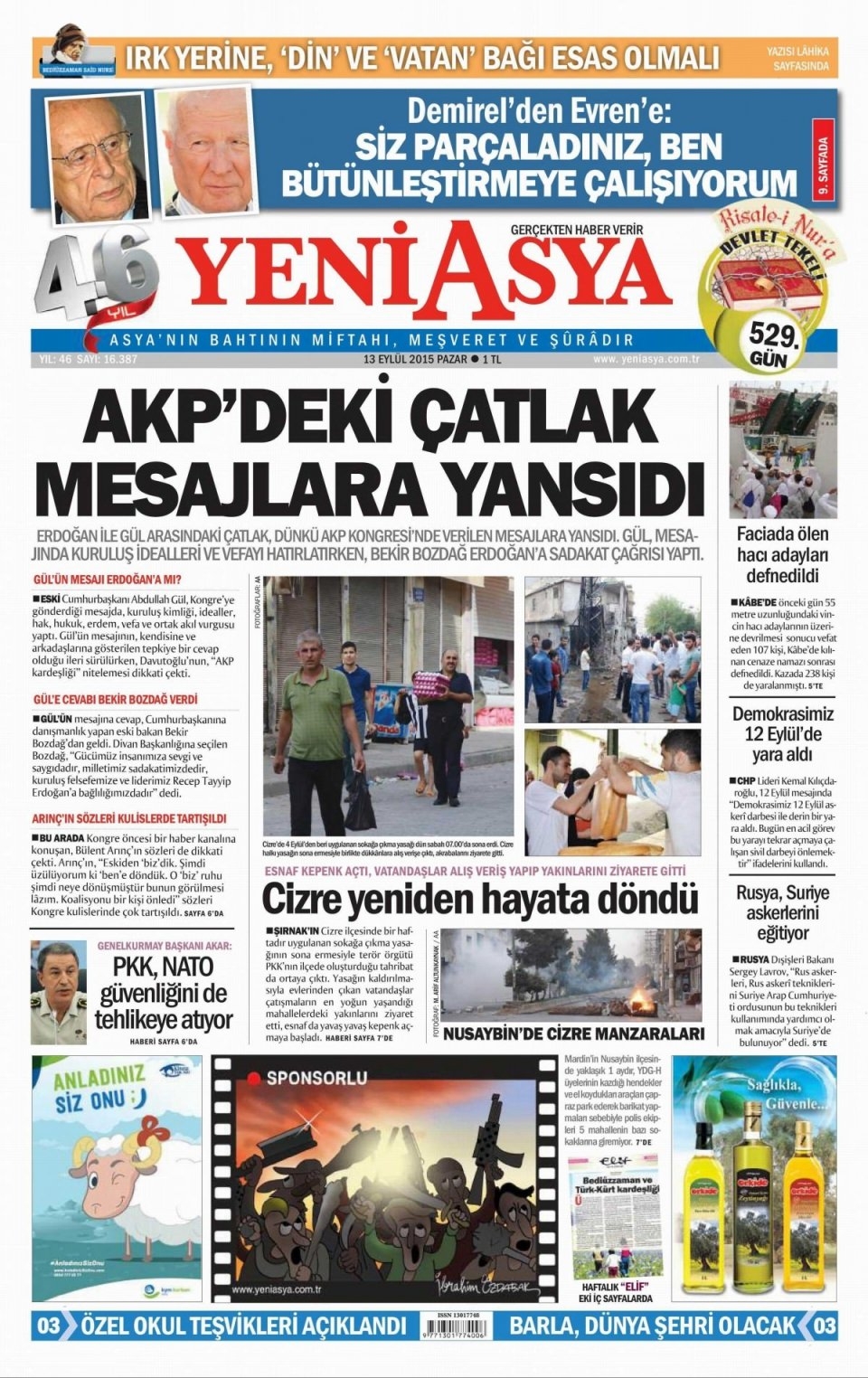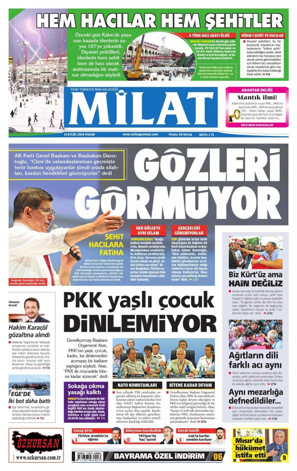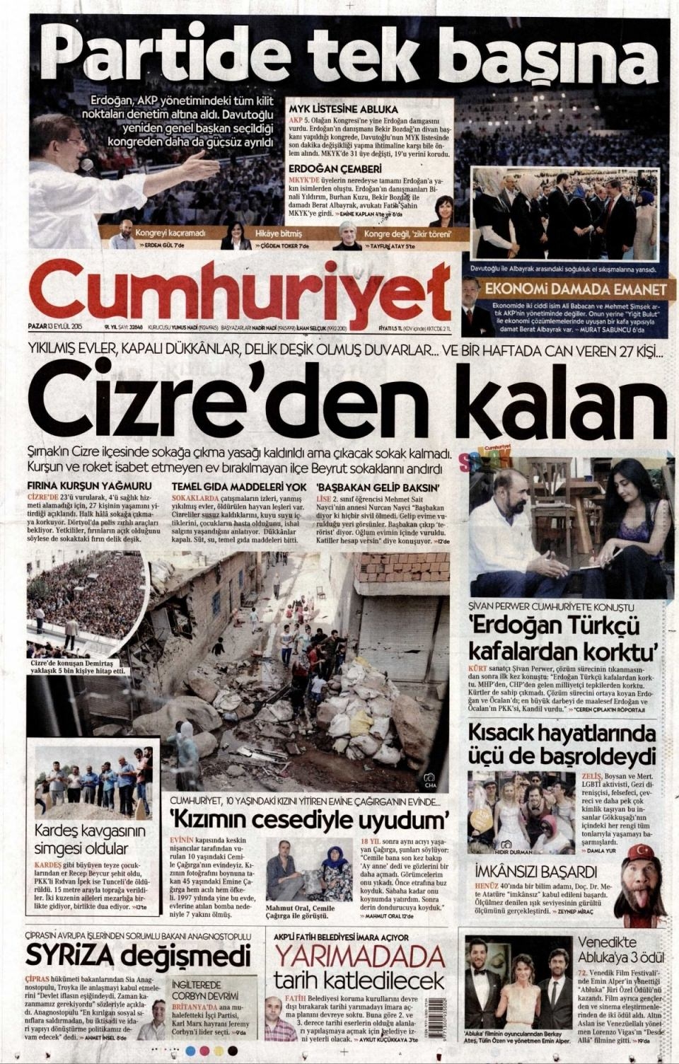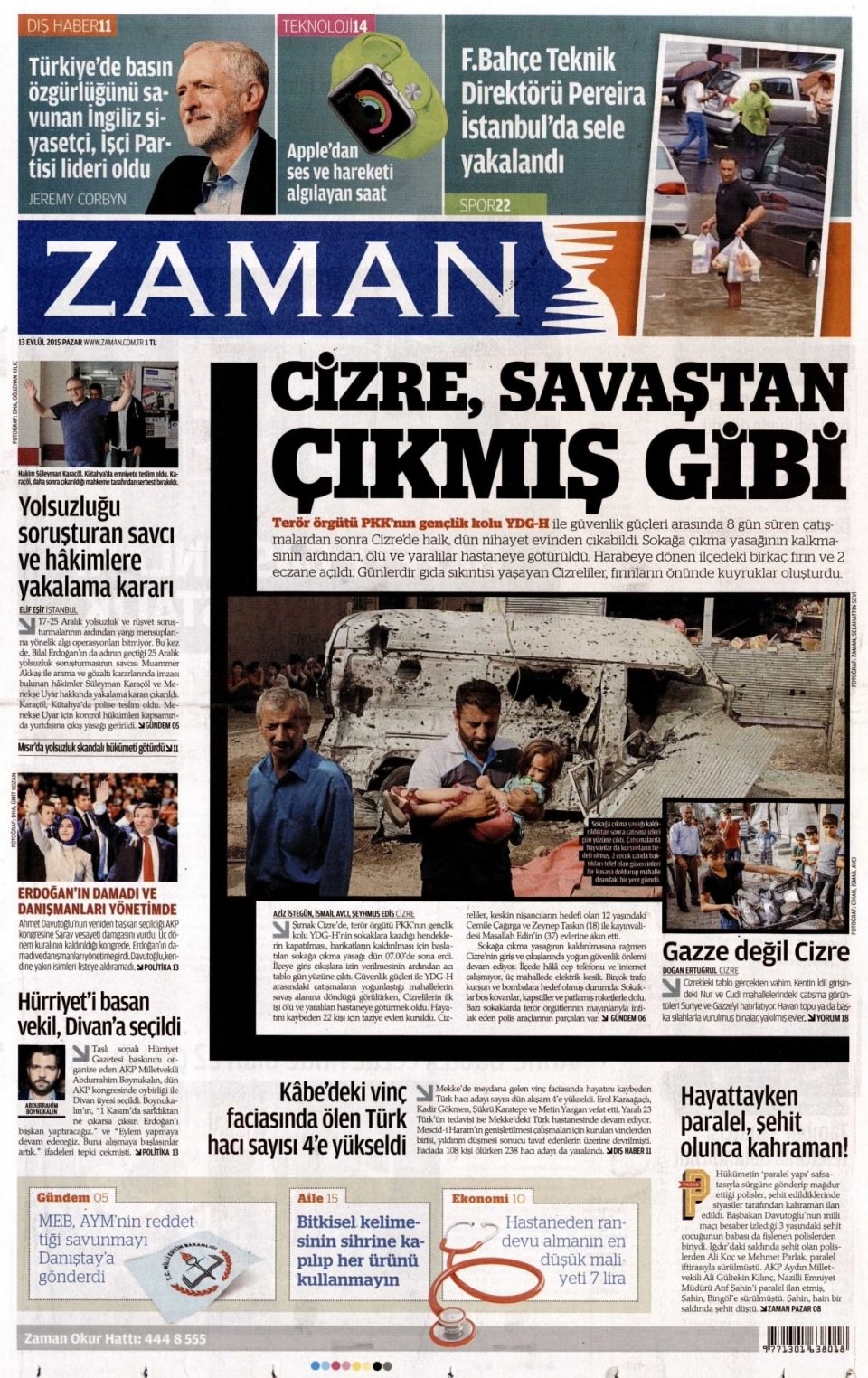 13 Eylül Pazar günü gazete manşetleri
