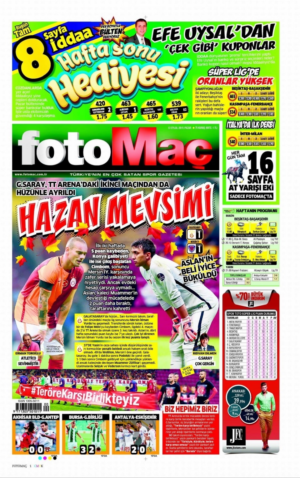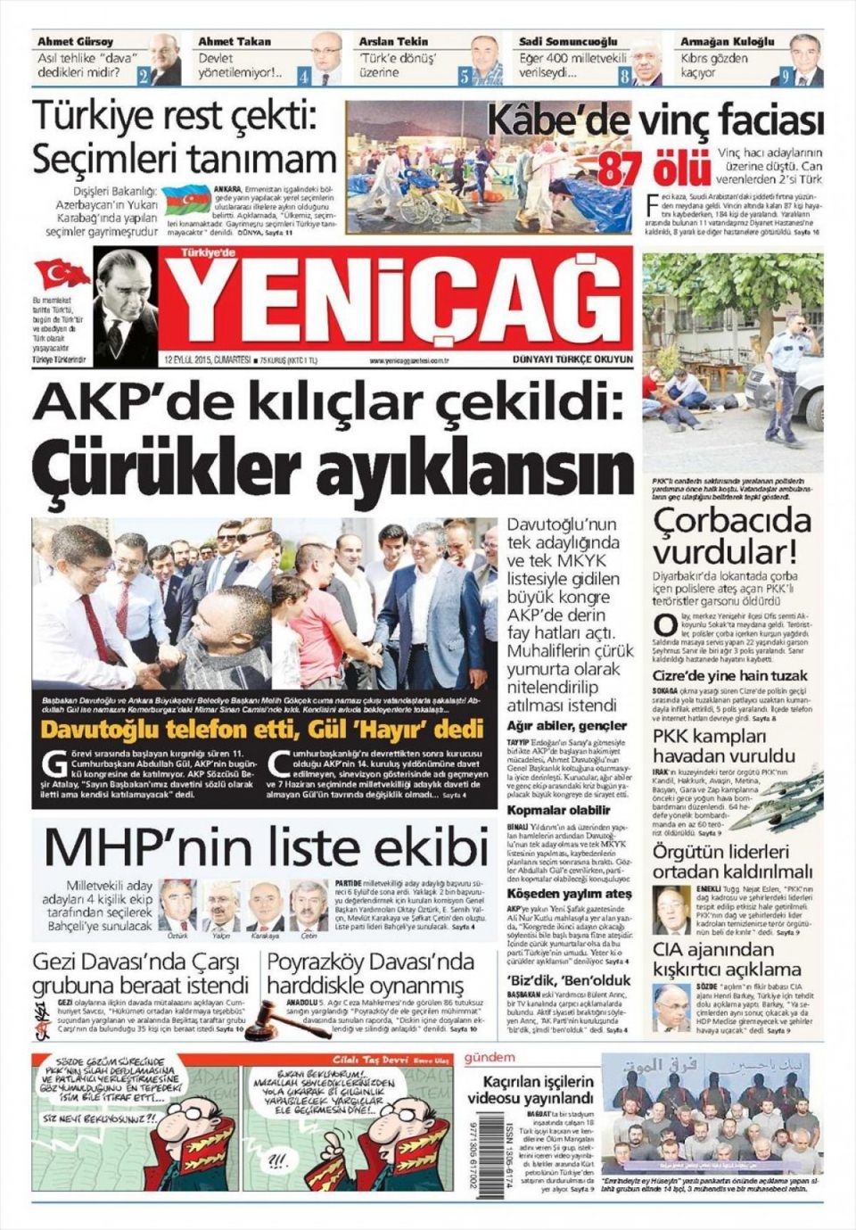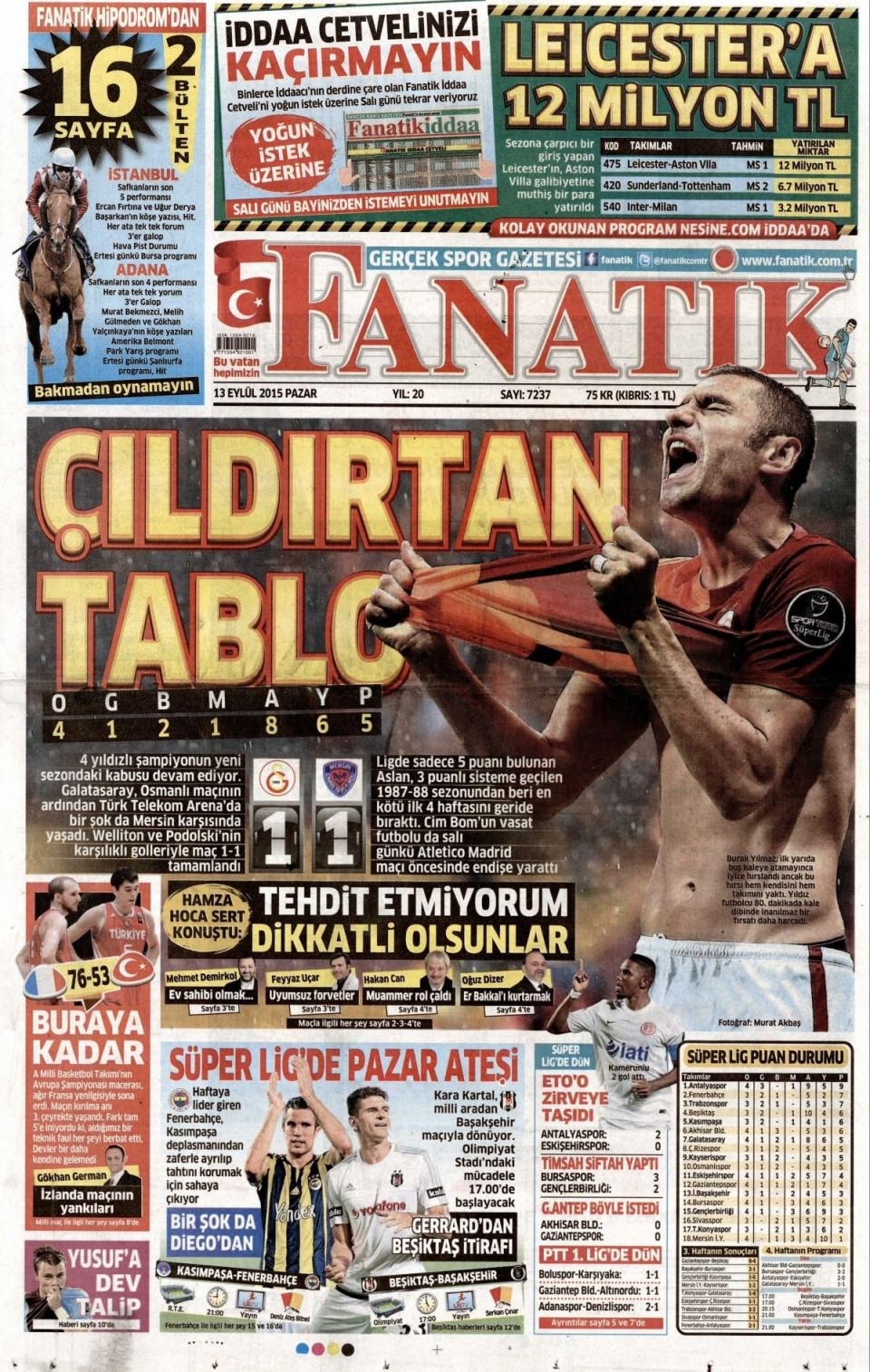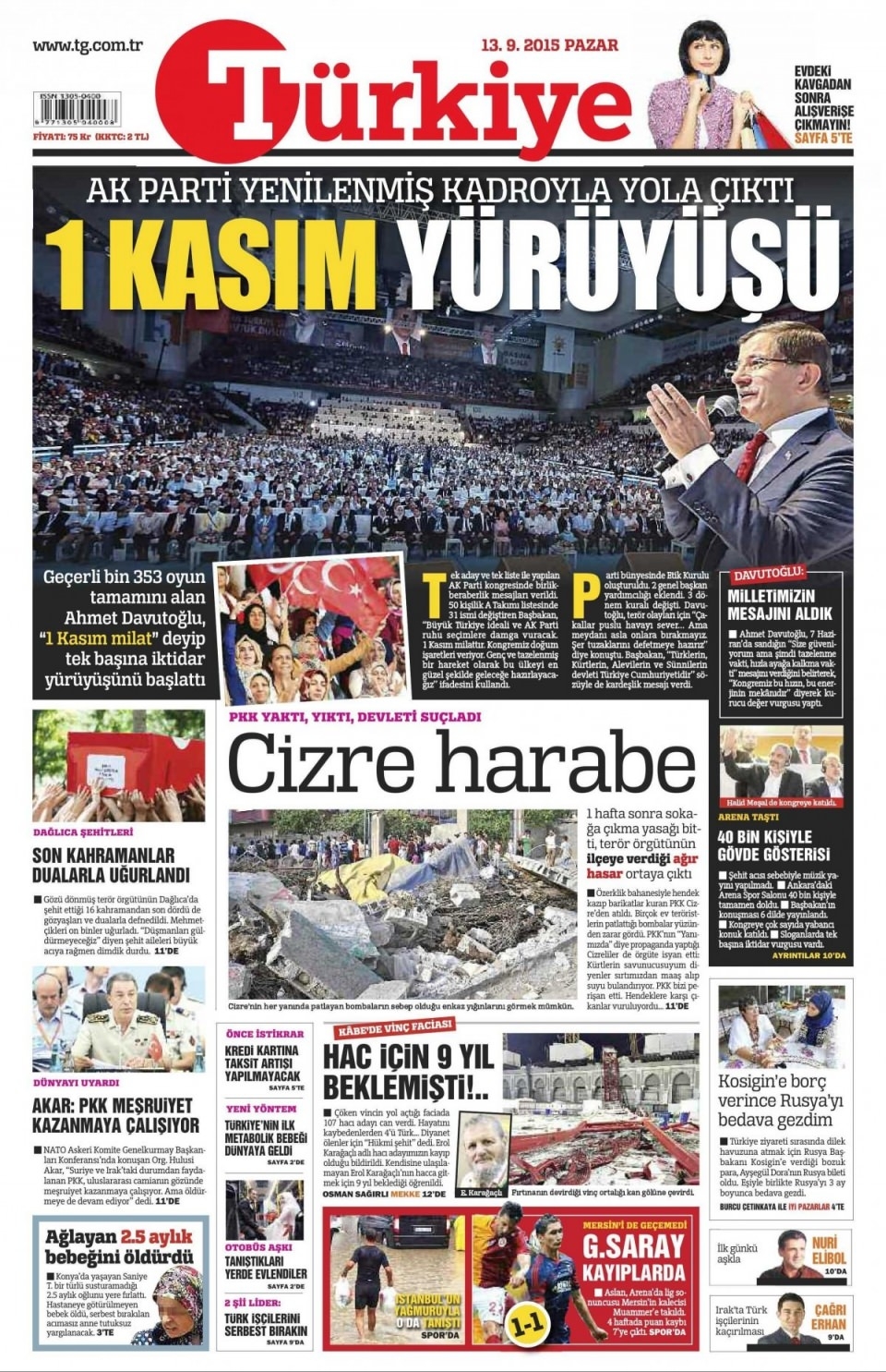 13 Eylül Pazar günü gazete manşetleri