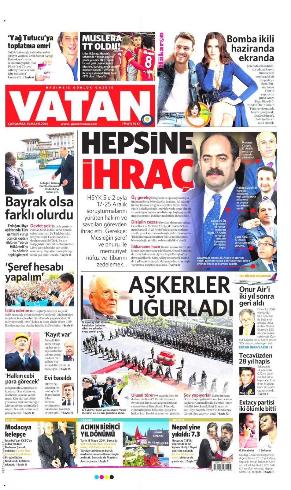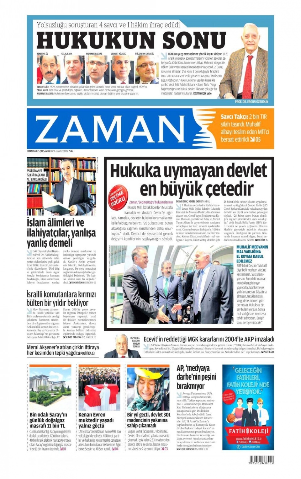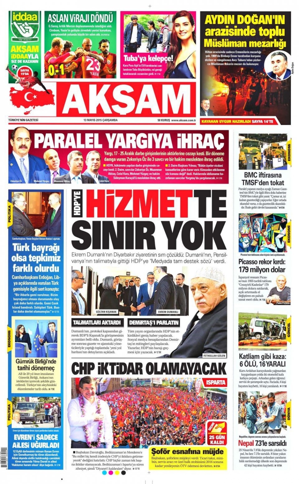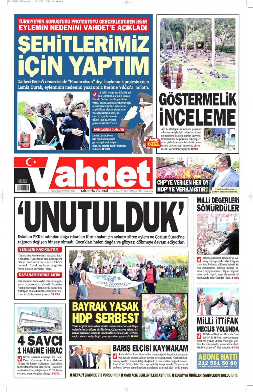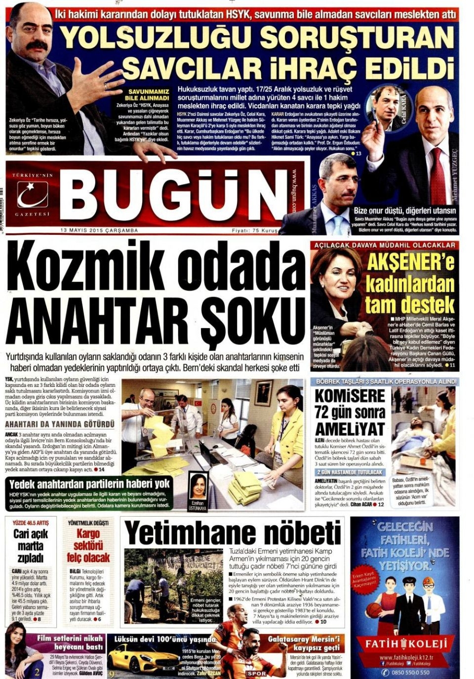 13 Mayıs 2015 gazete manşetleri