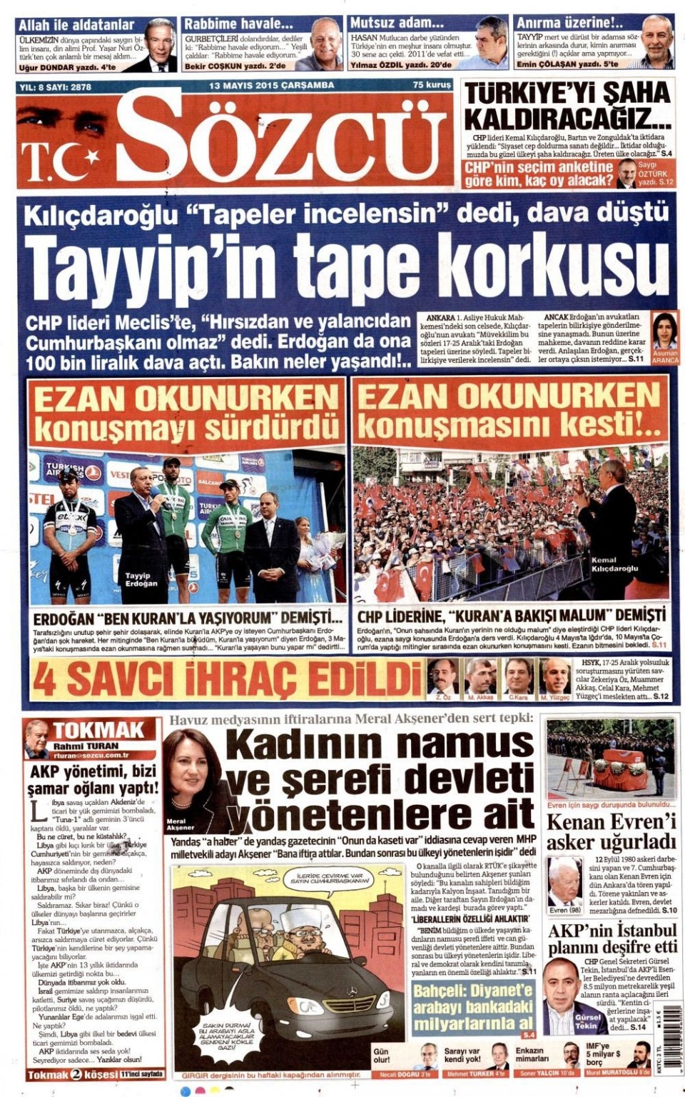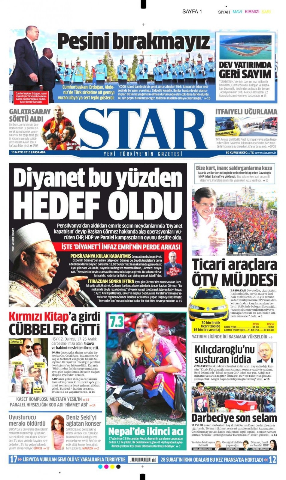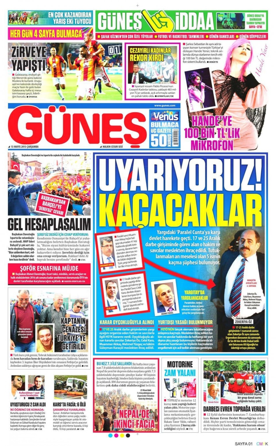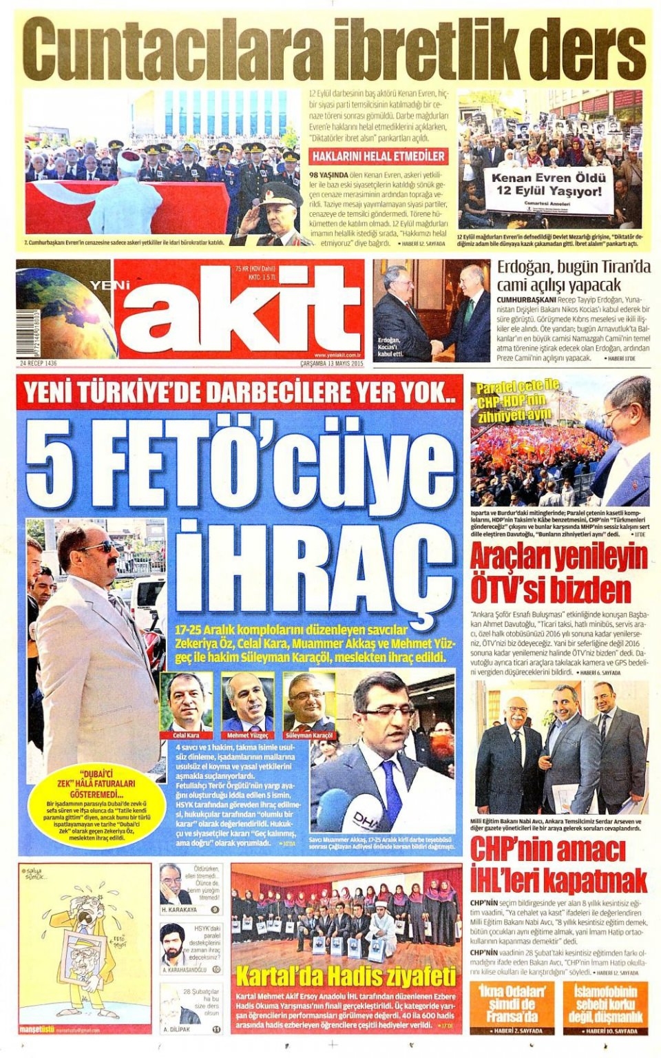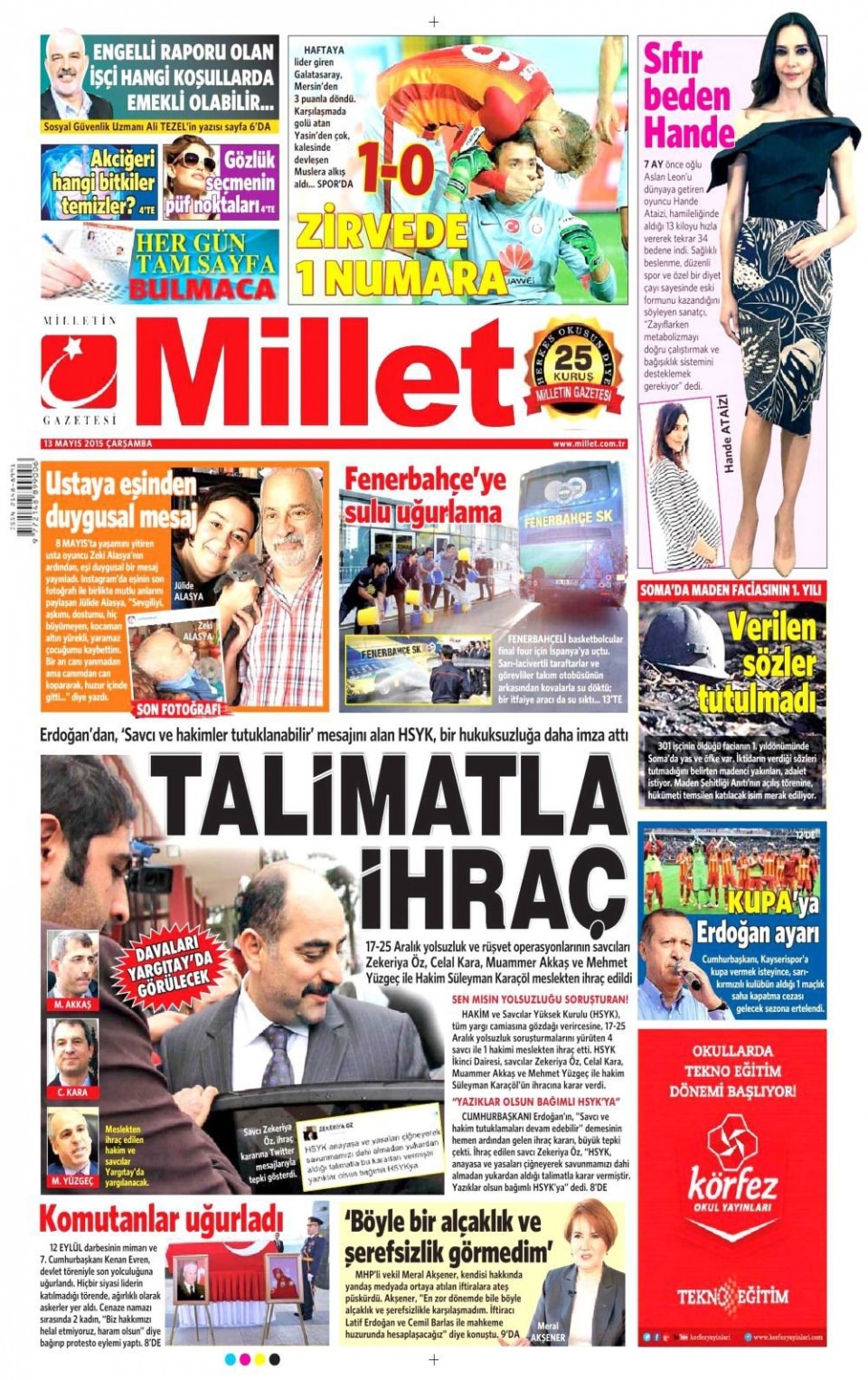 13 Mayıs 2015 gazete manşetleri