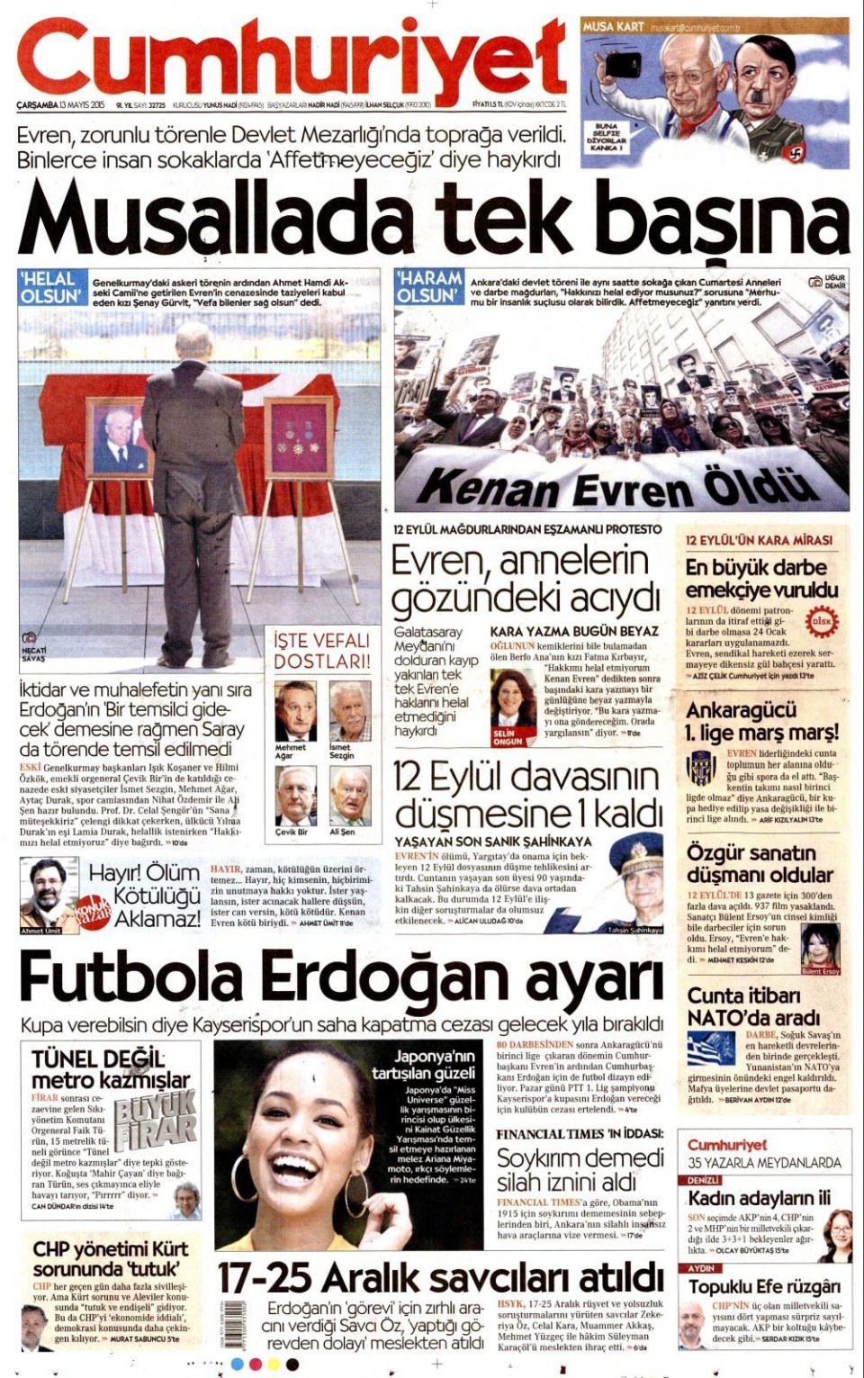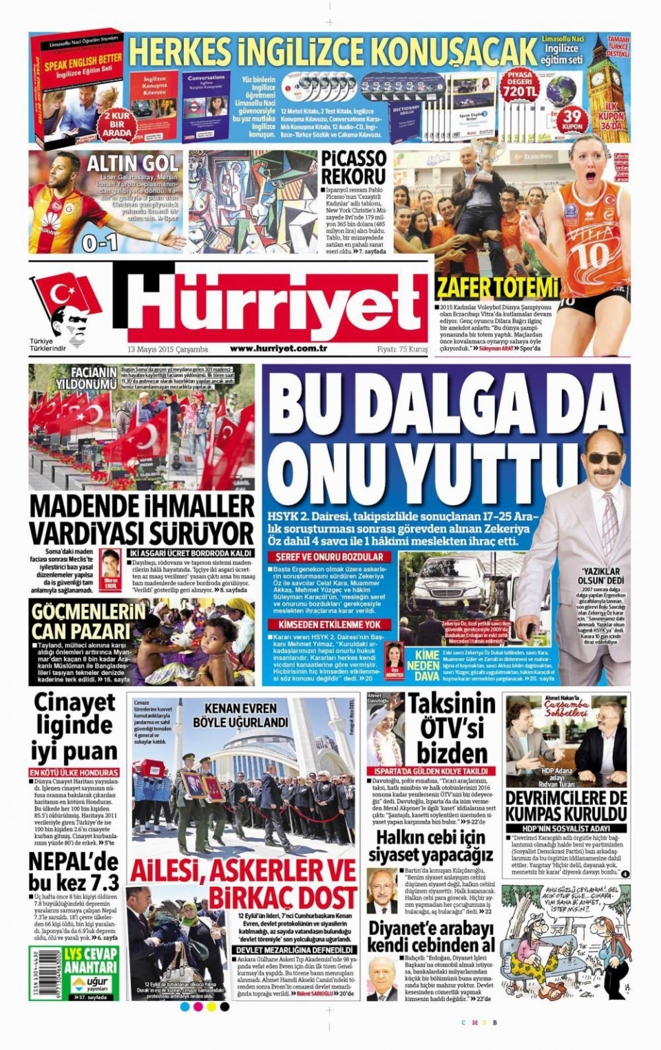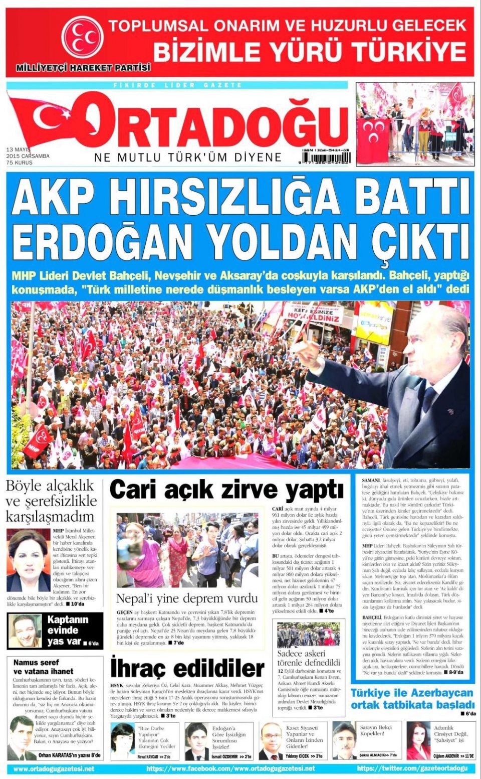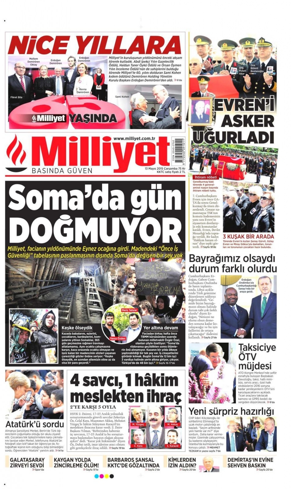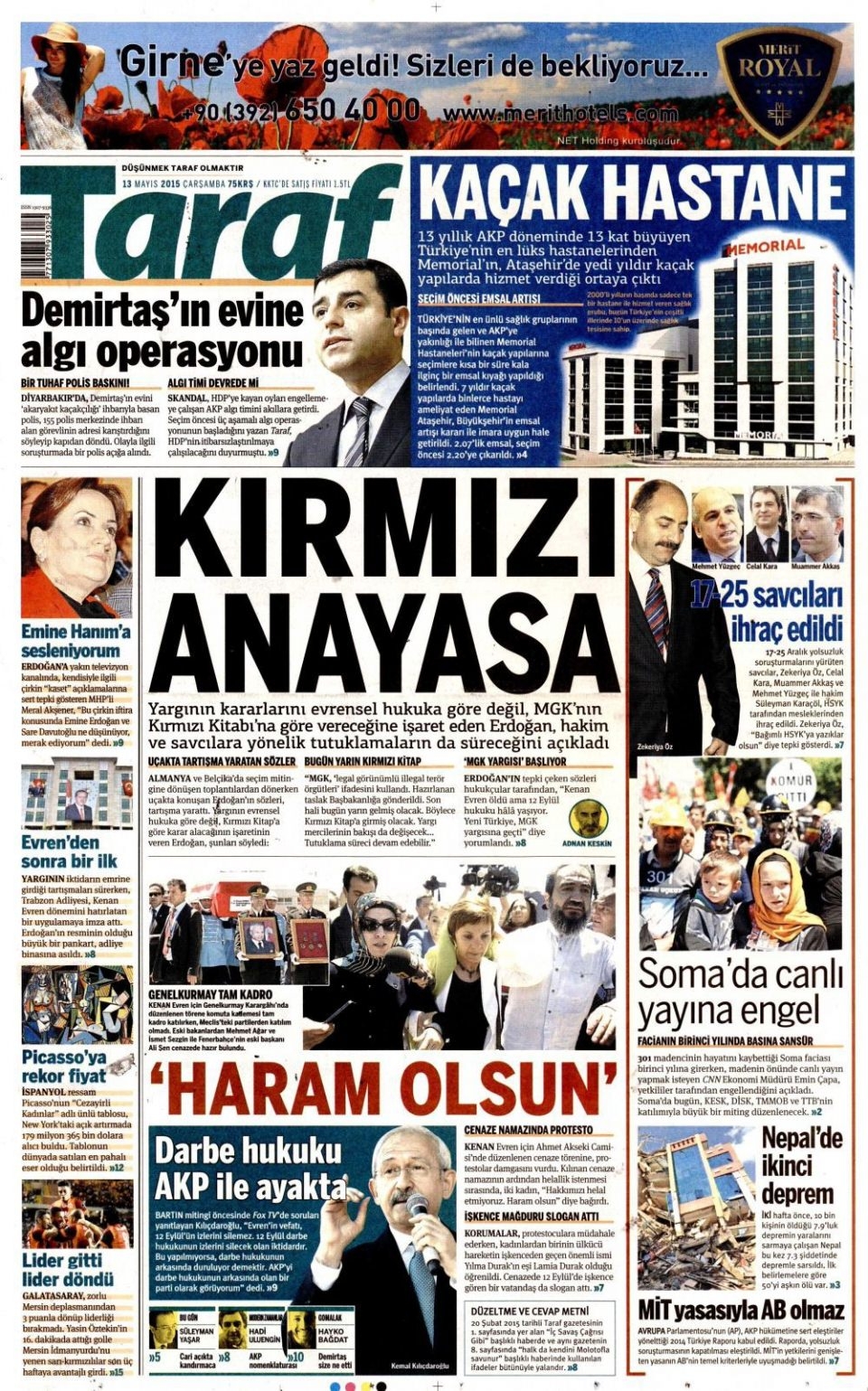 13 Mayıs 2015 gazete manşetleri