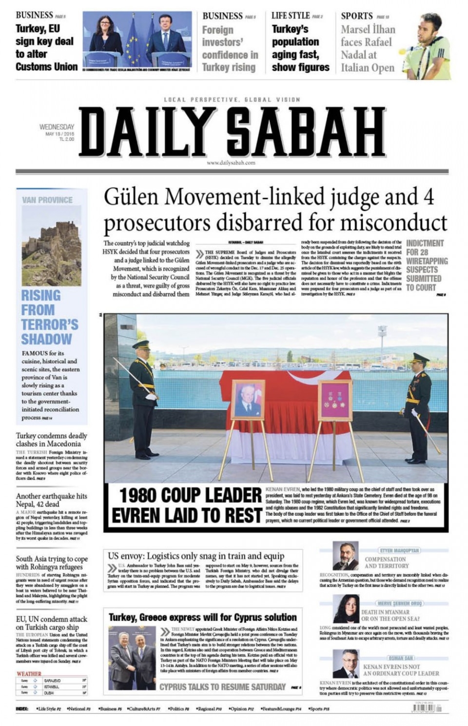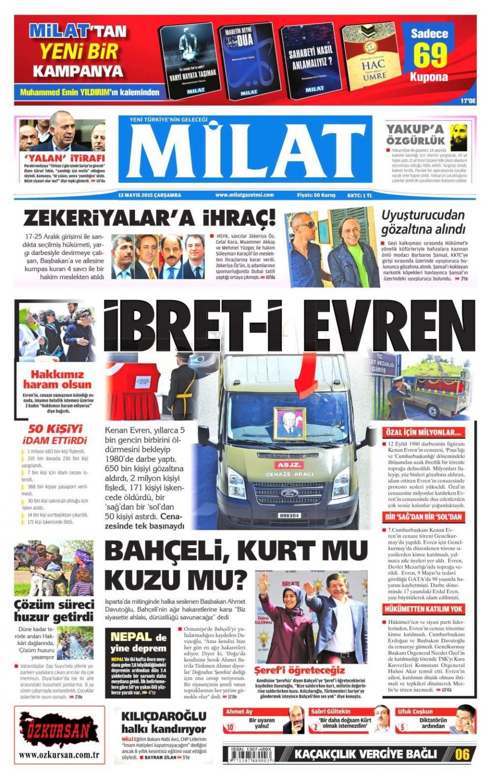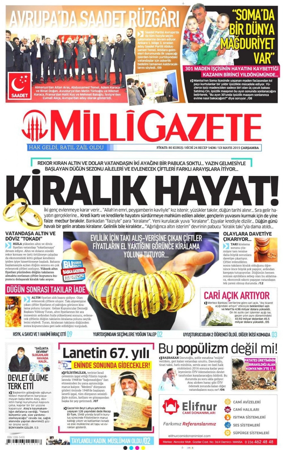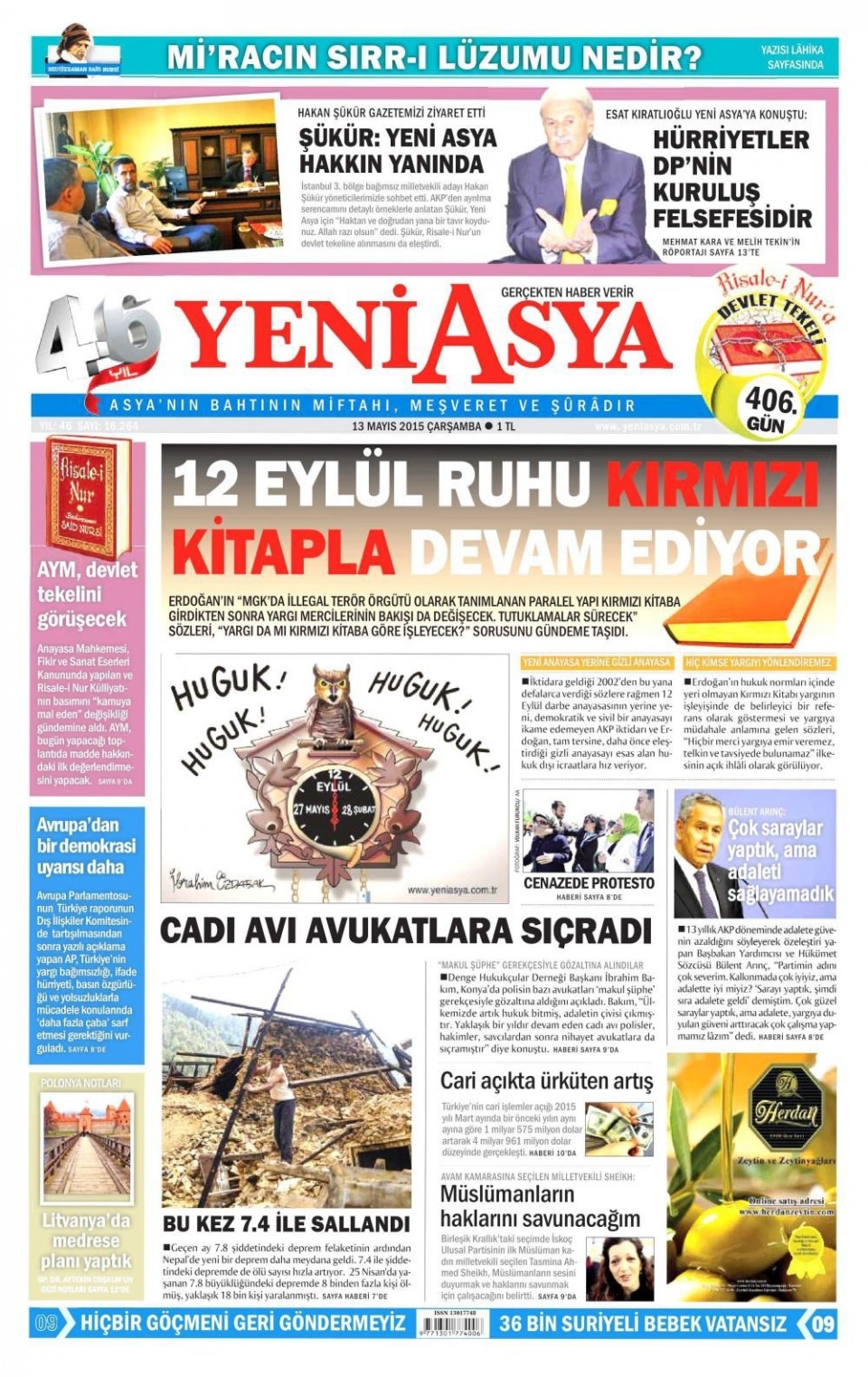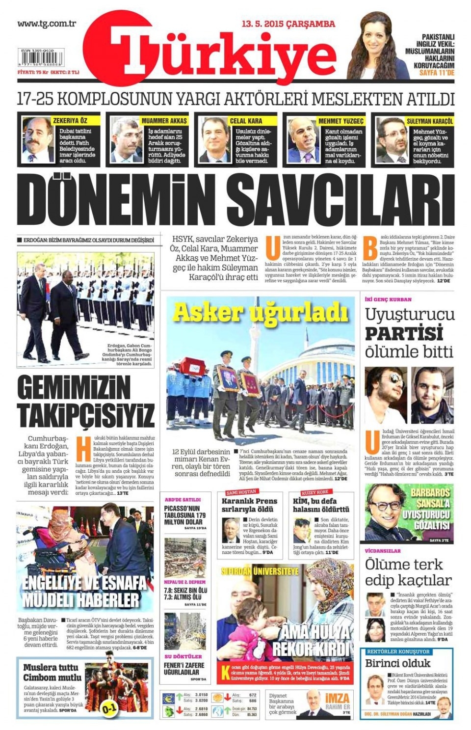 13 Mayıs 2015 gazete manşetleri