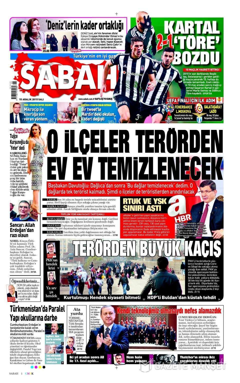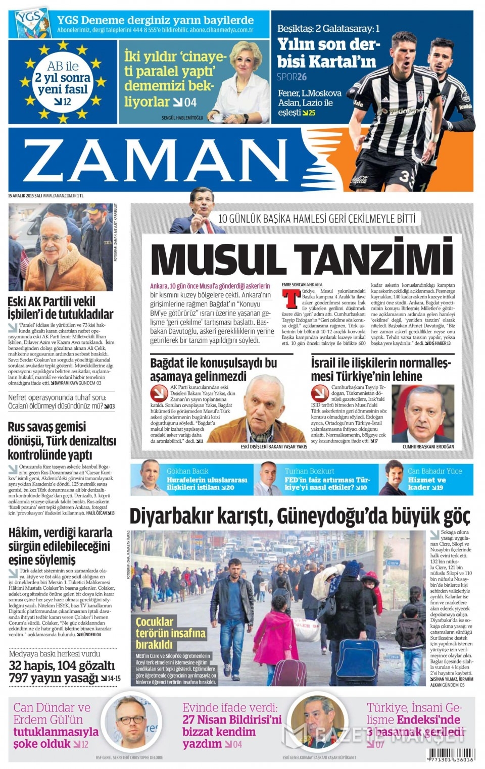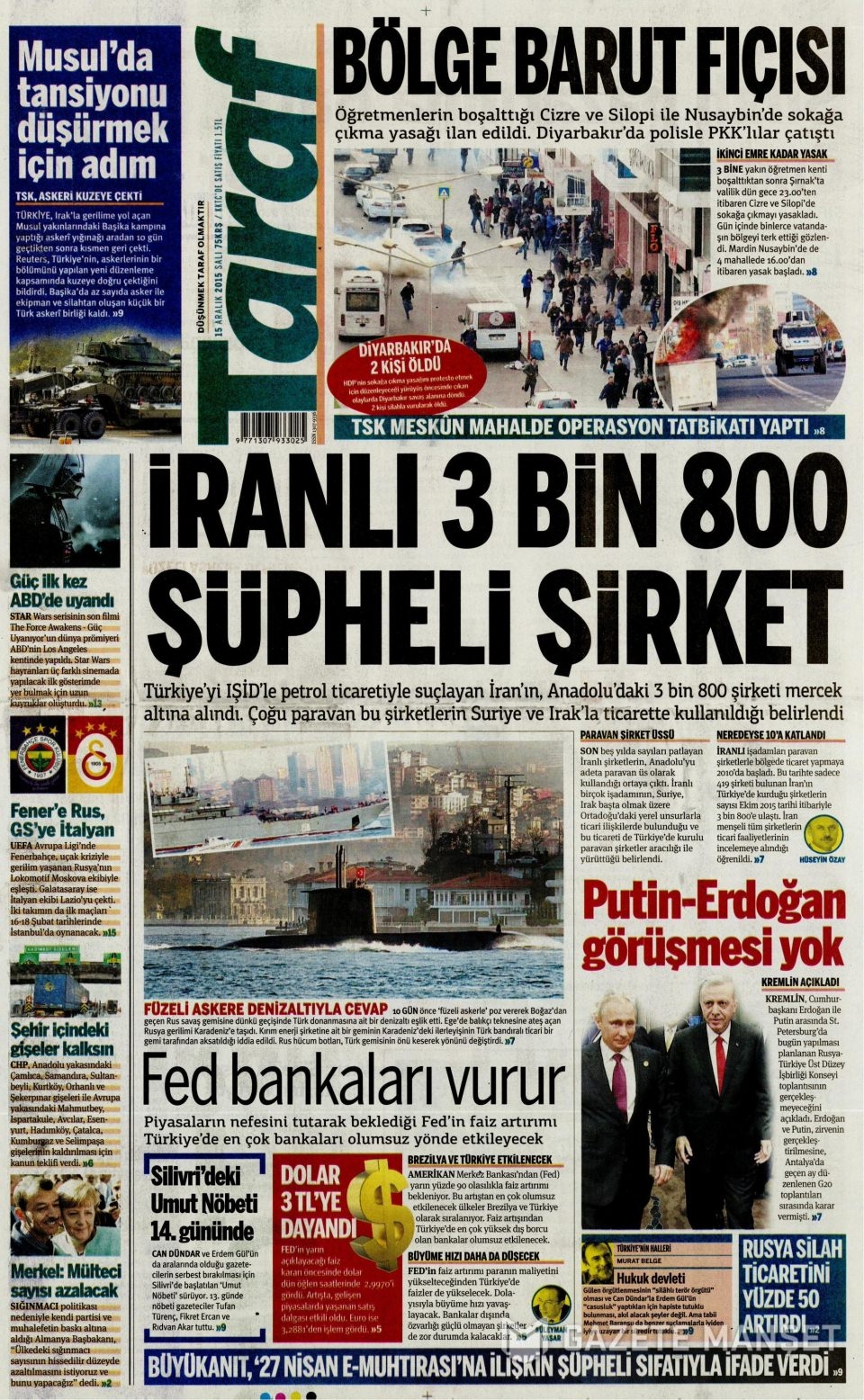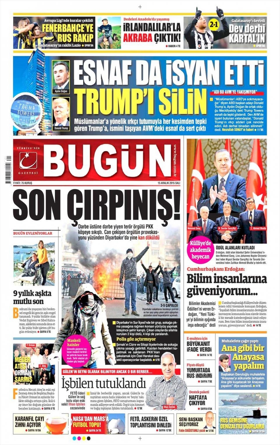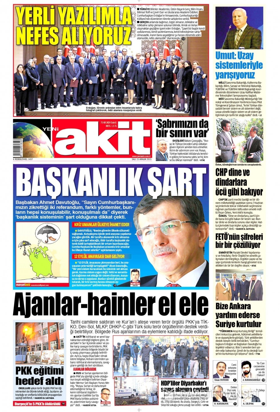 15 Aralık 2015 gazete manşetleri