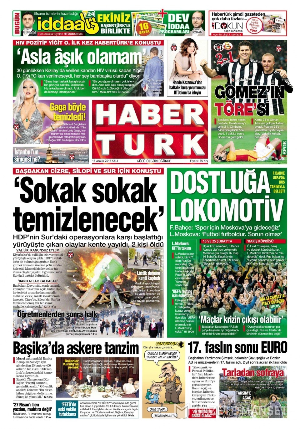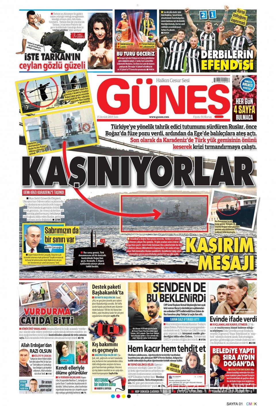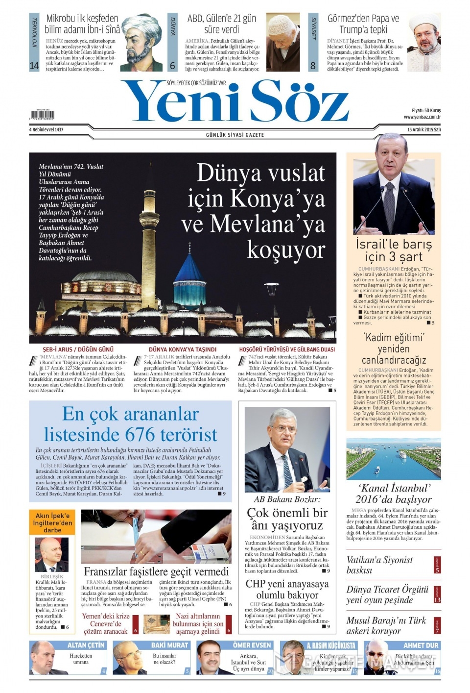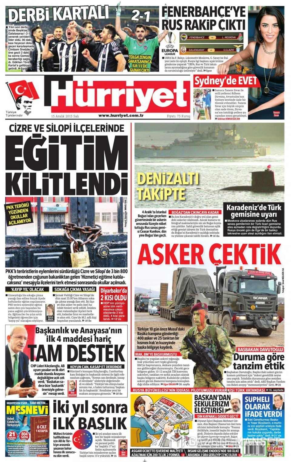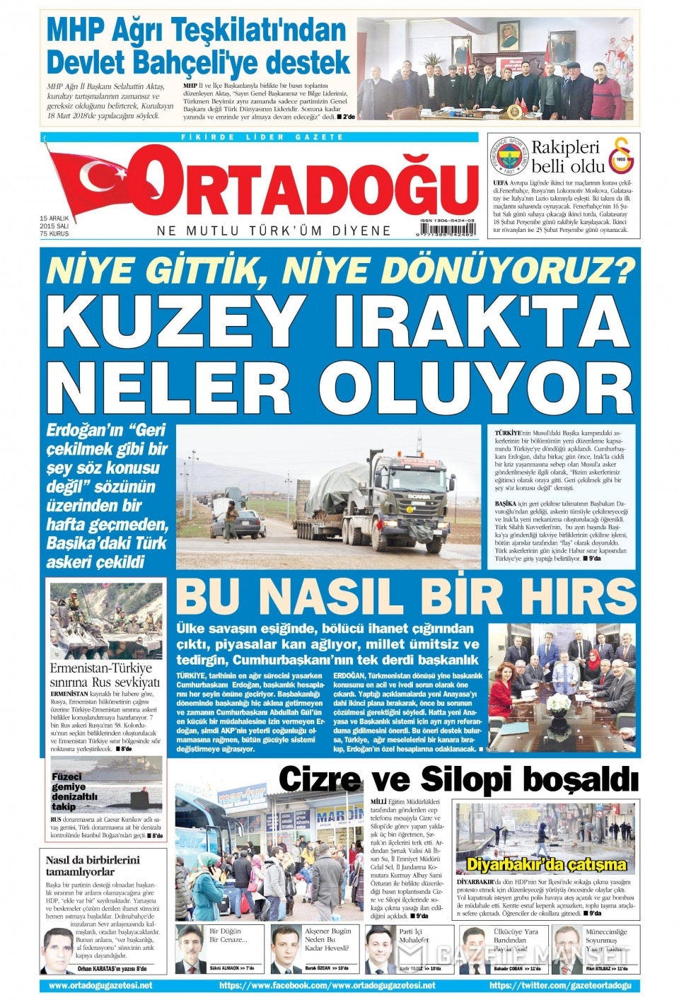 15 Aralık 2015 gazete manşetleri