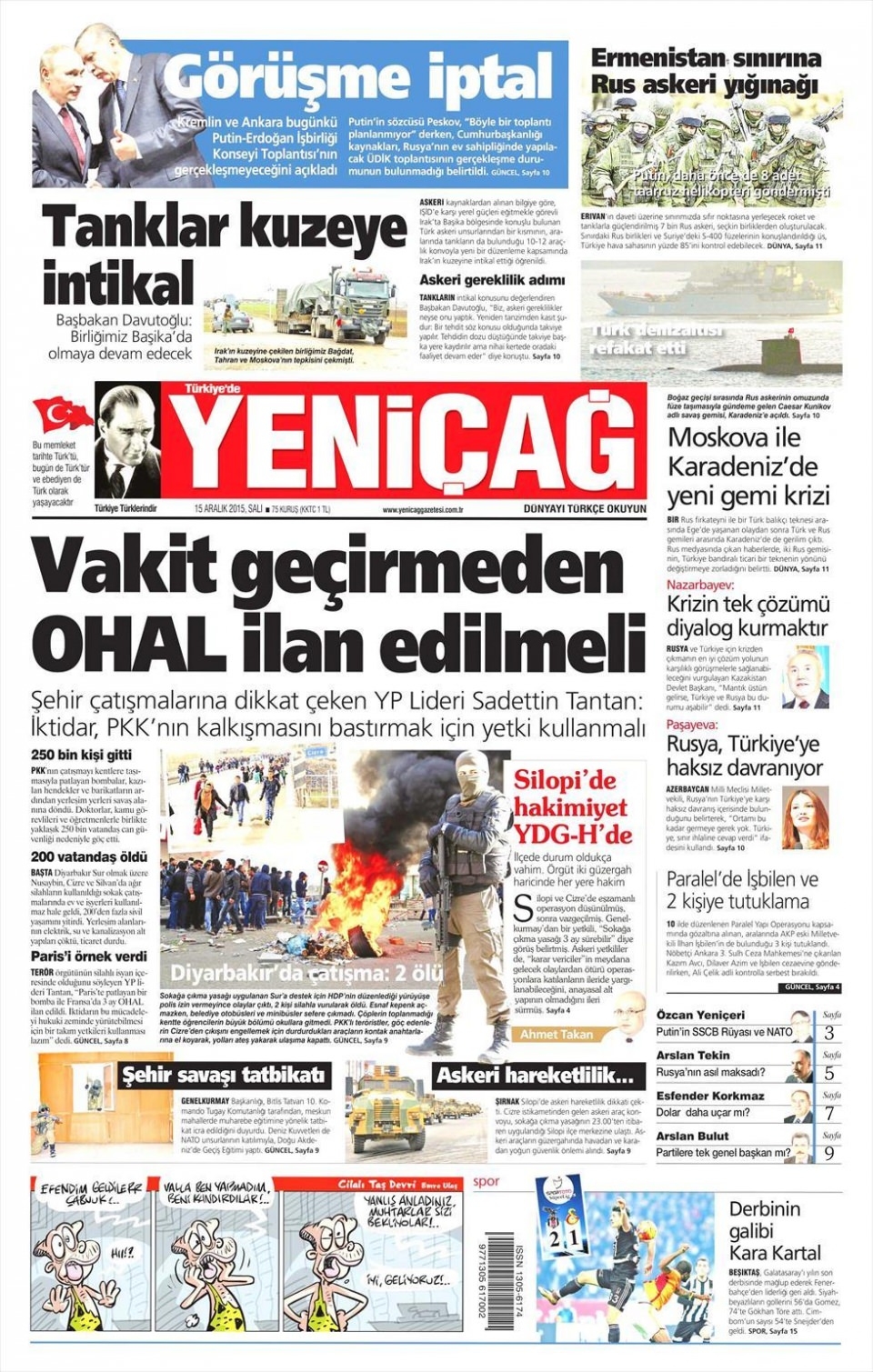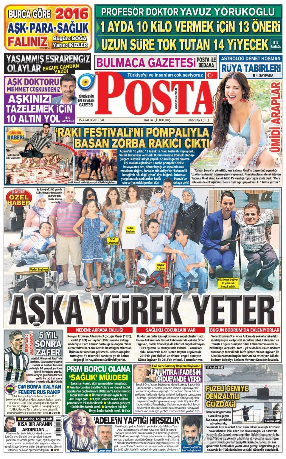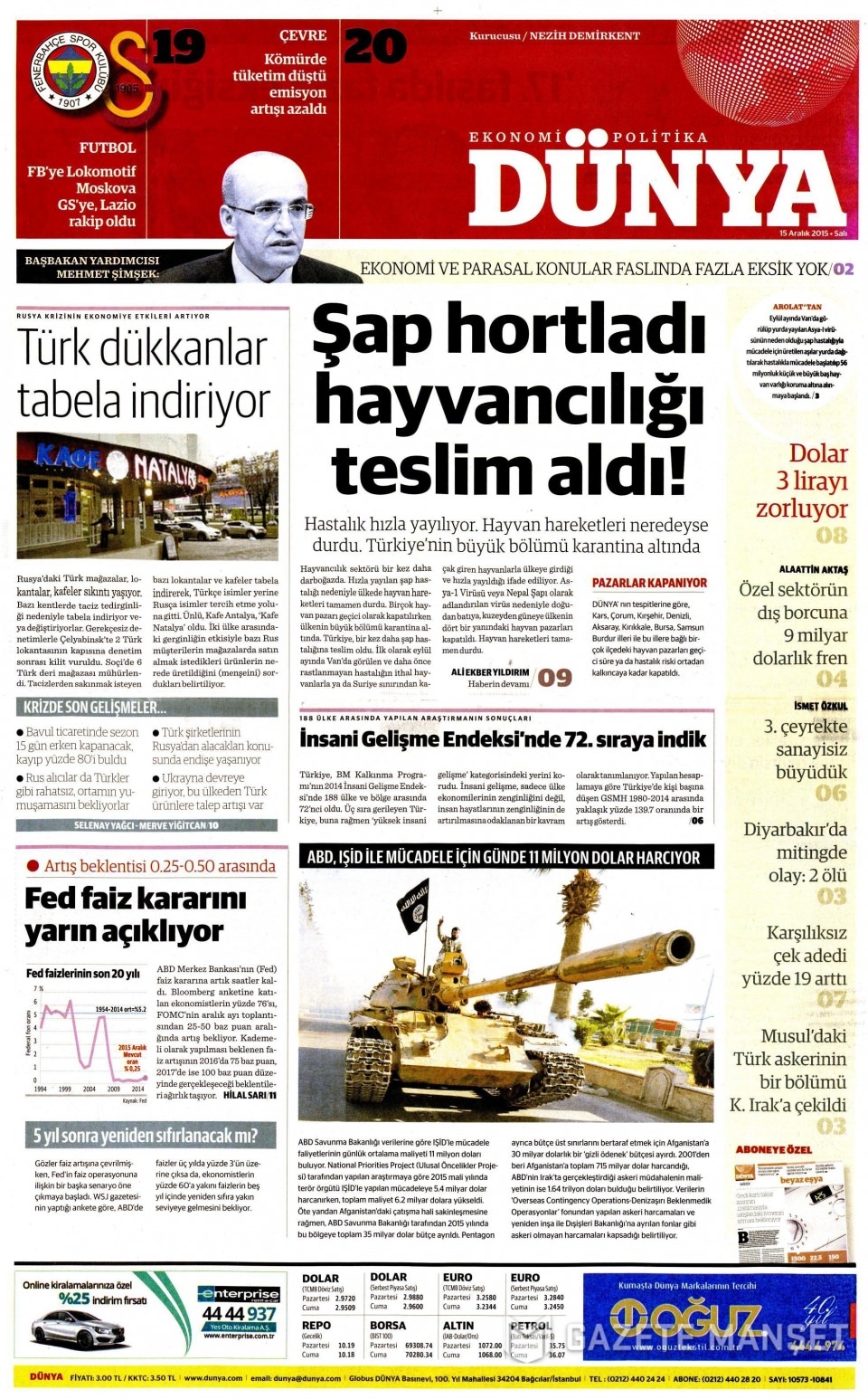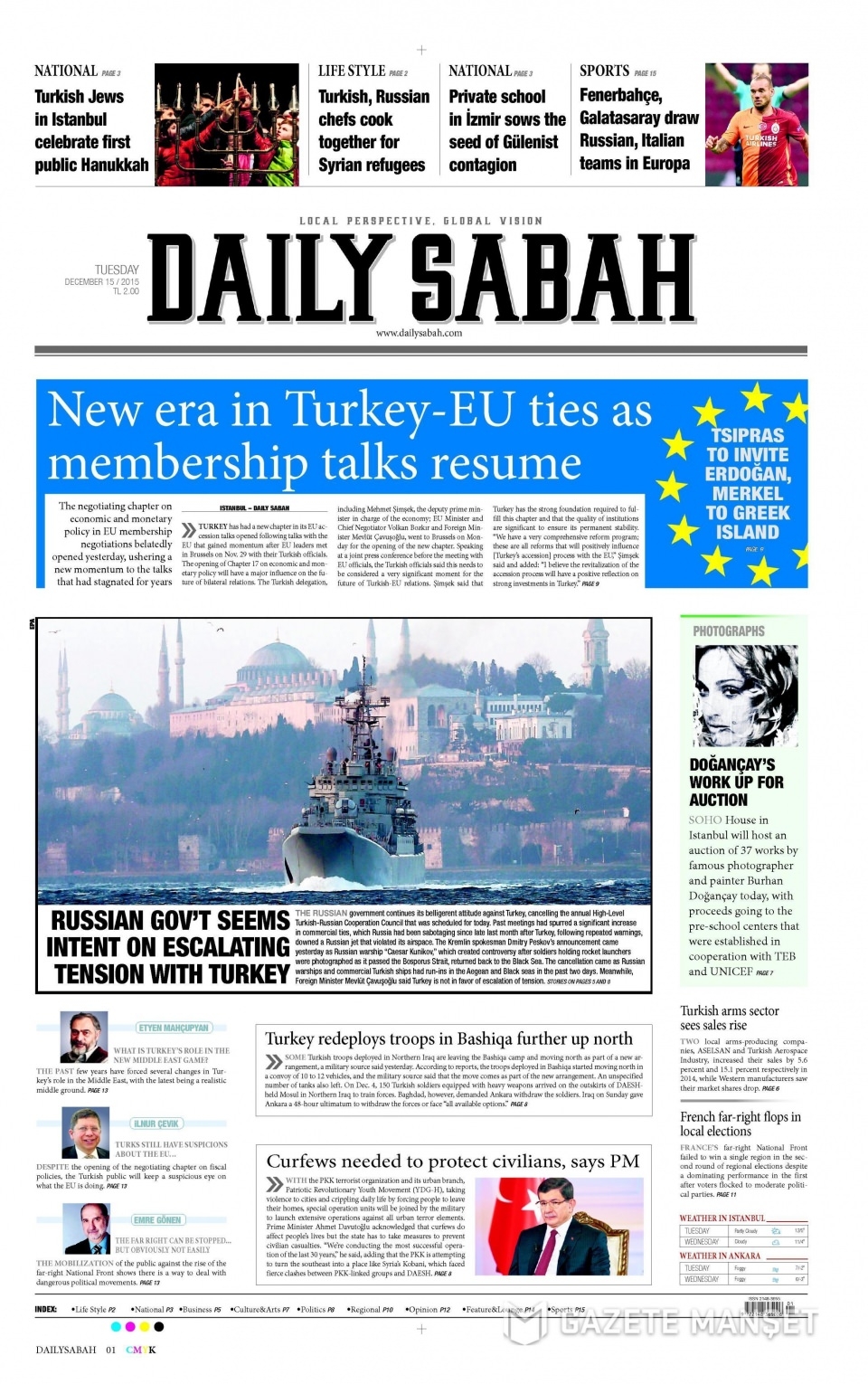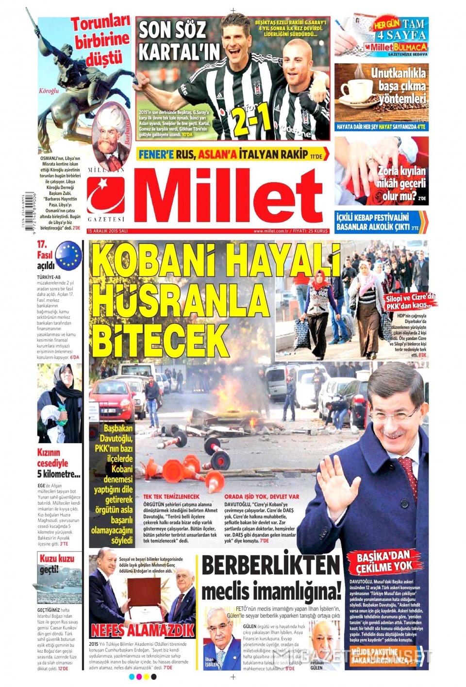 15 Aralık 2015 gazete manşetleri