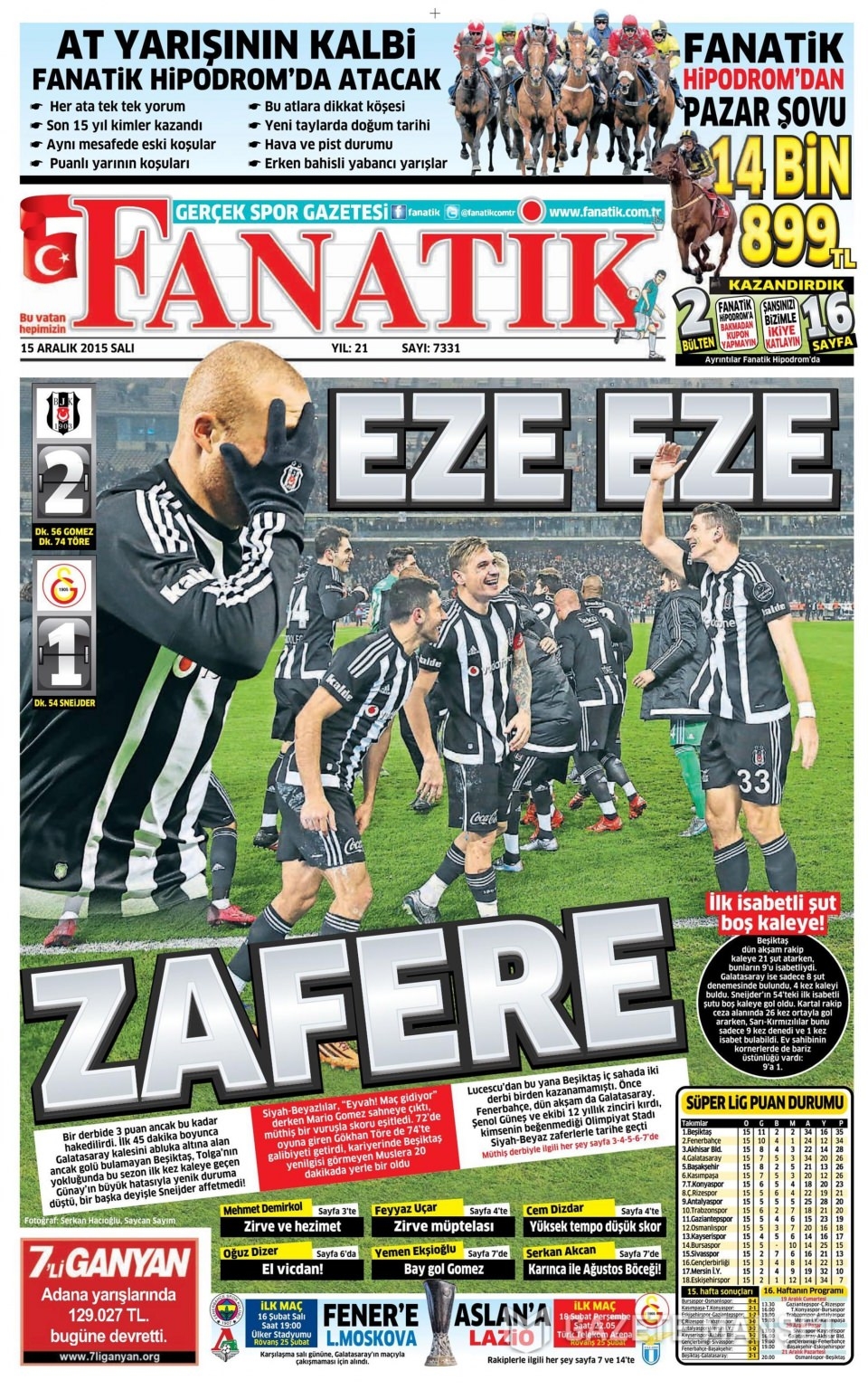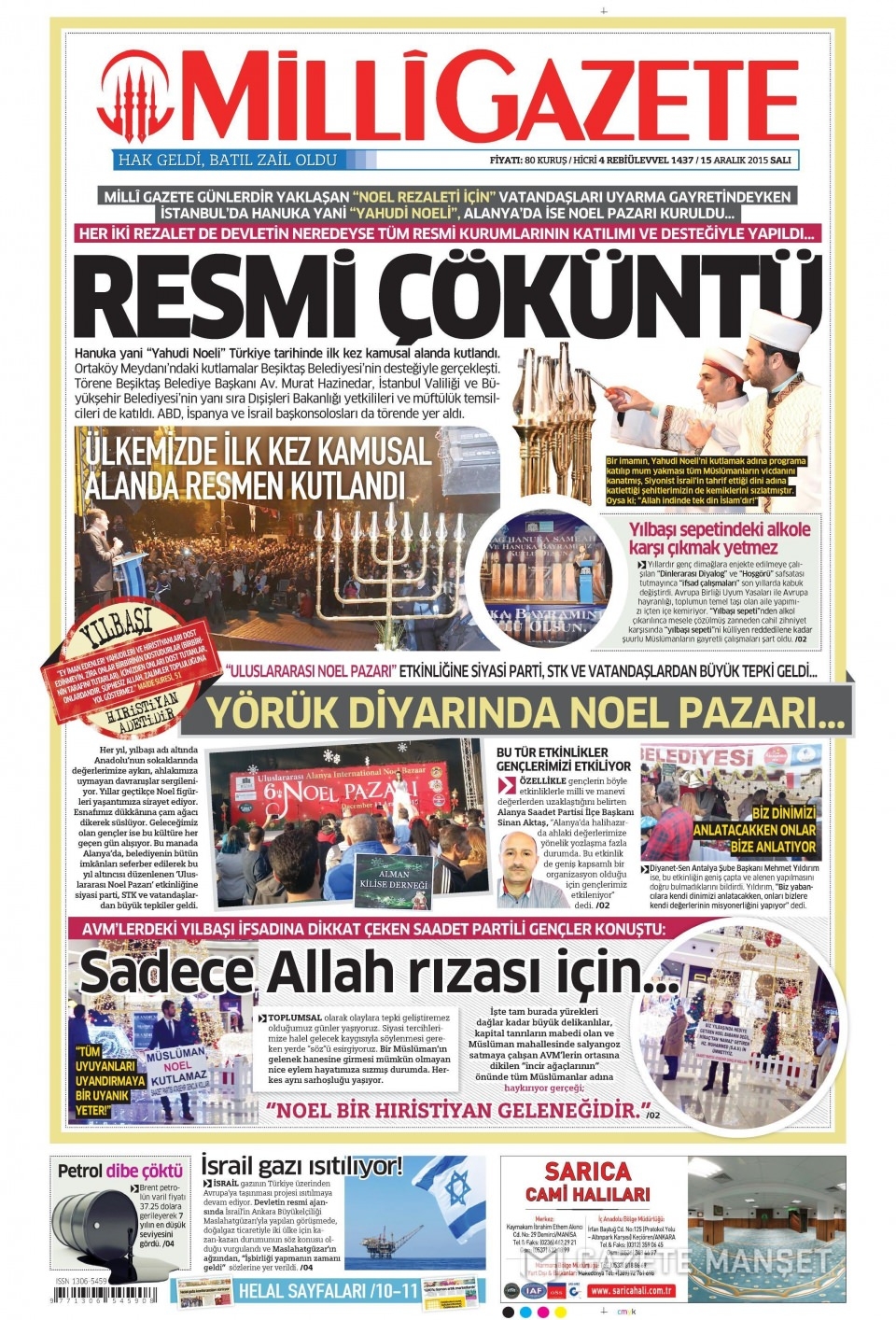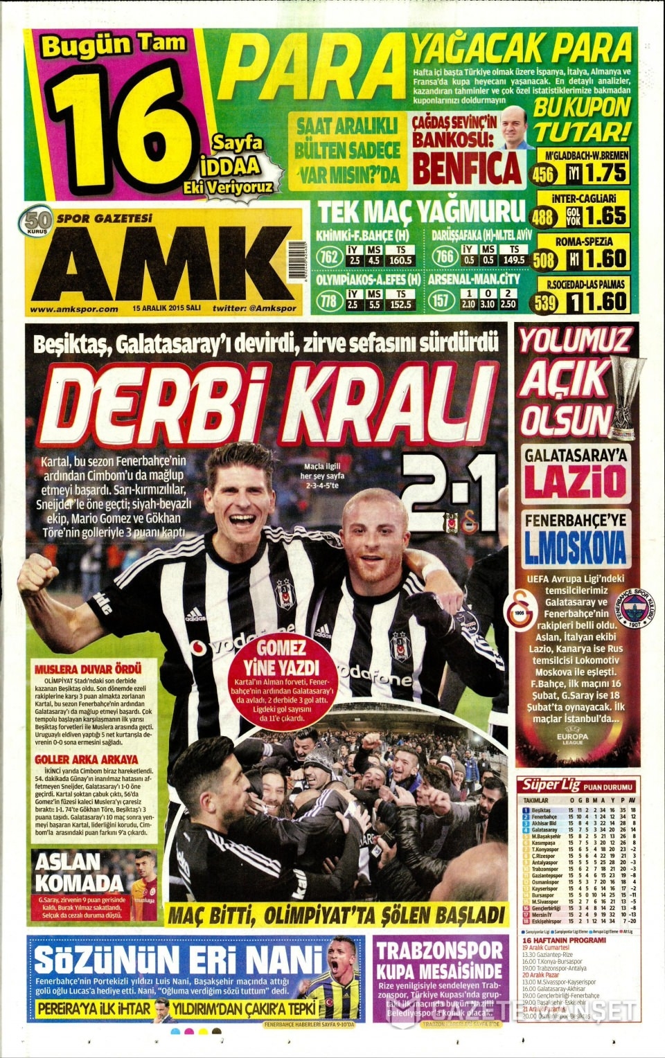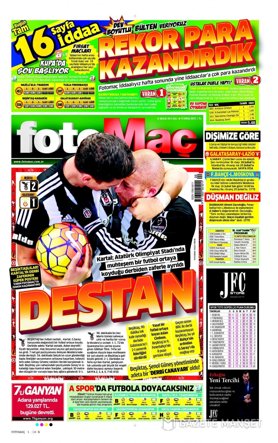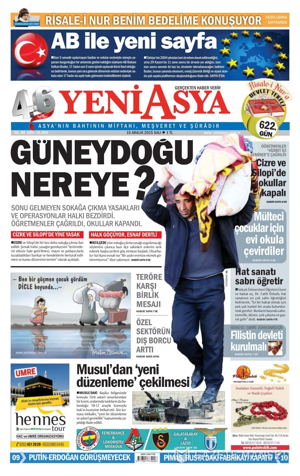 15 Aralık 2015 gazete manşetleri