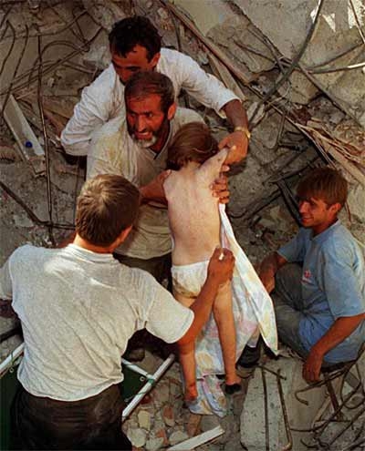 1999 yılının 17 Ağustos tarihinde sabaha karşı 03.02'de Marmara'yı vuran deprem sonrası şu çarpıcı kareler objektiflere yansıdı..