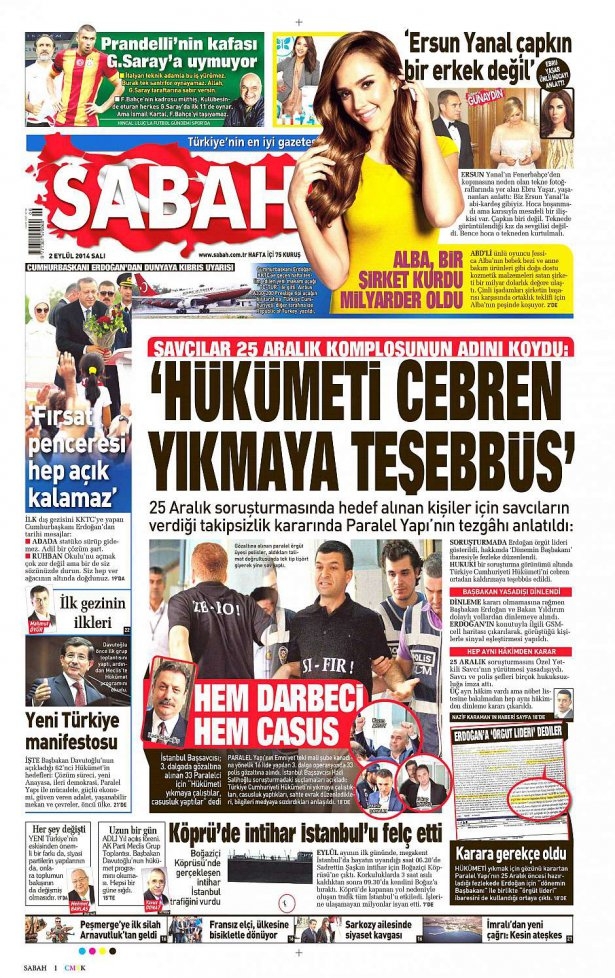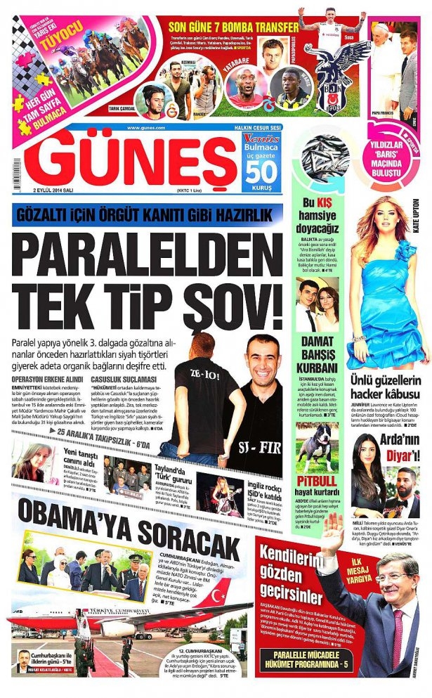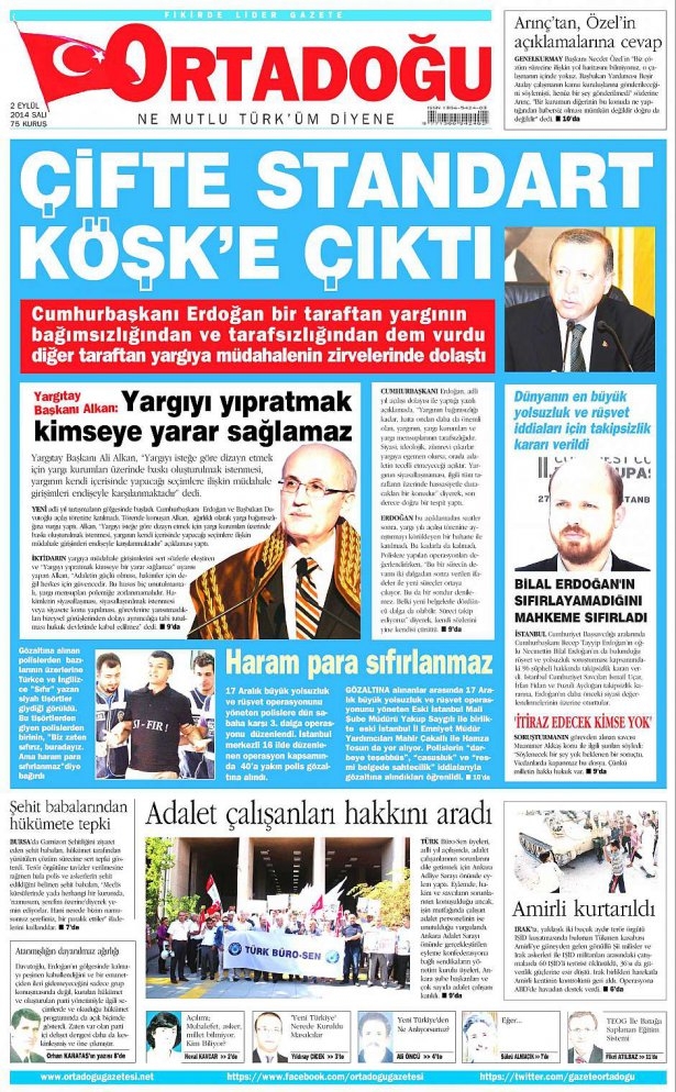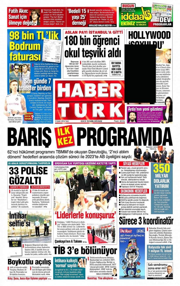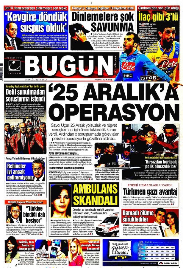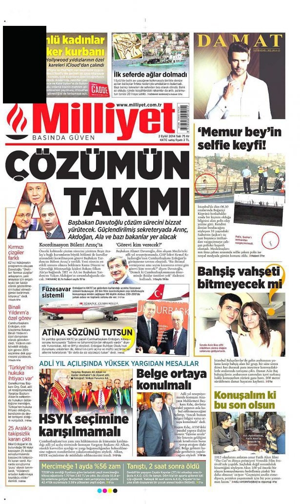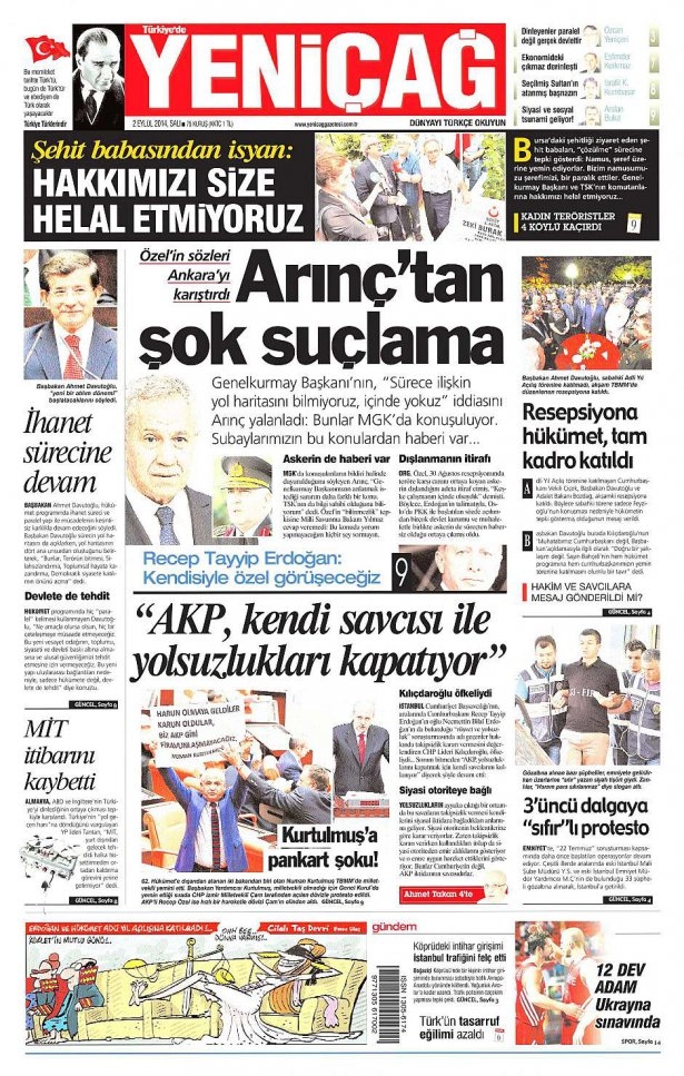 2 Eylül 2014 gazete manşetleri