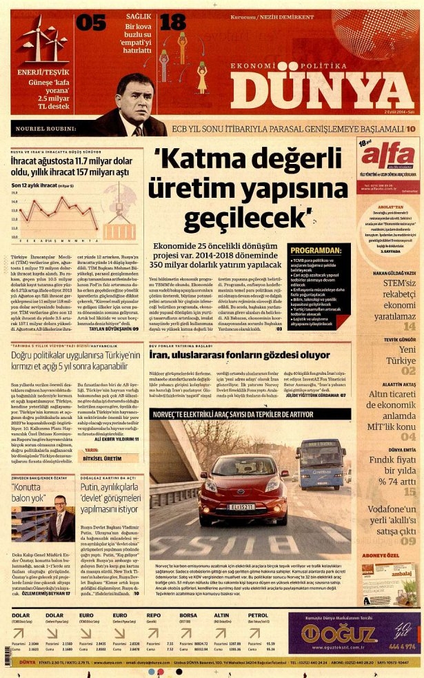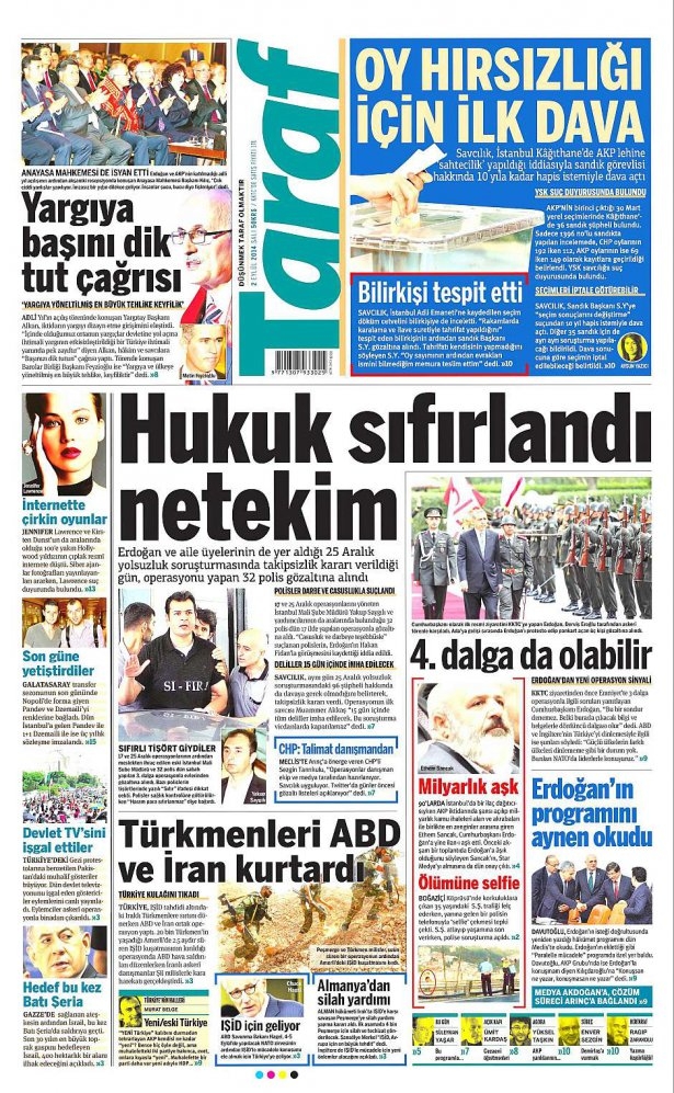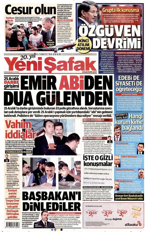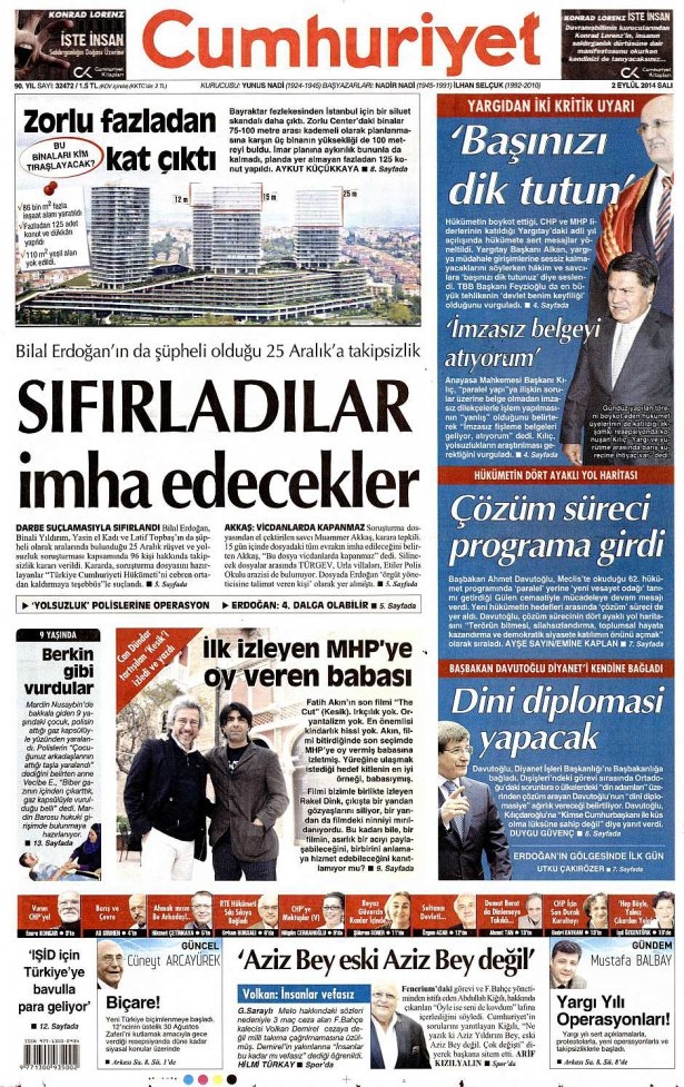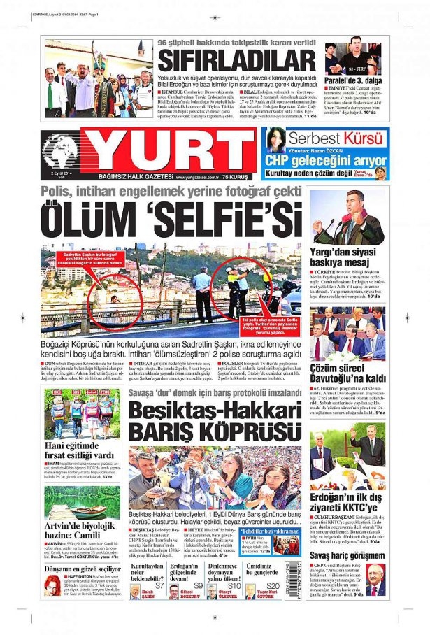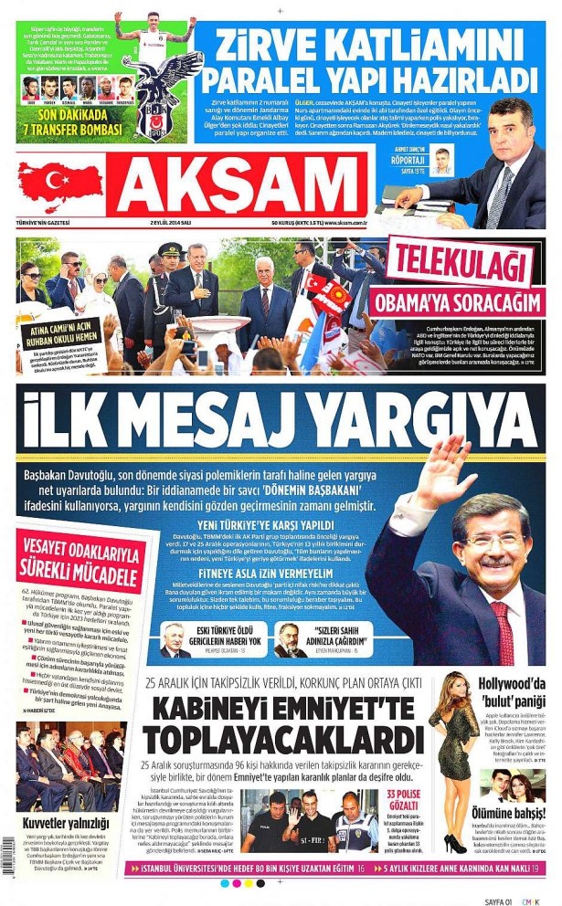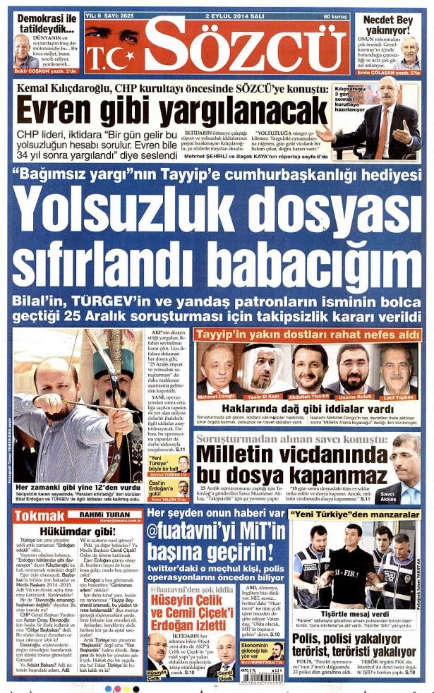 2 Eylül 2014 gazete manşetleri
