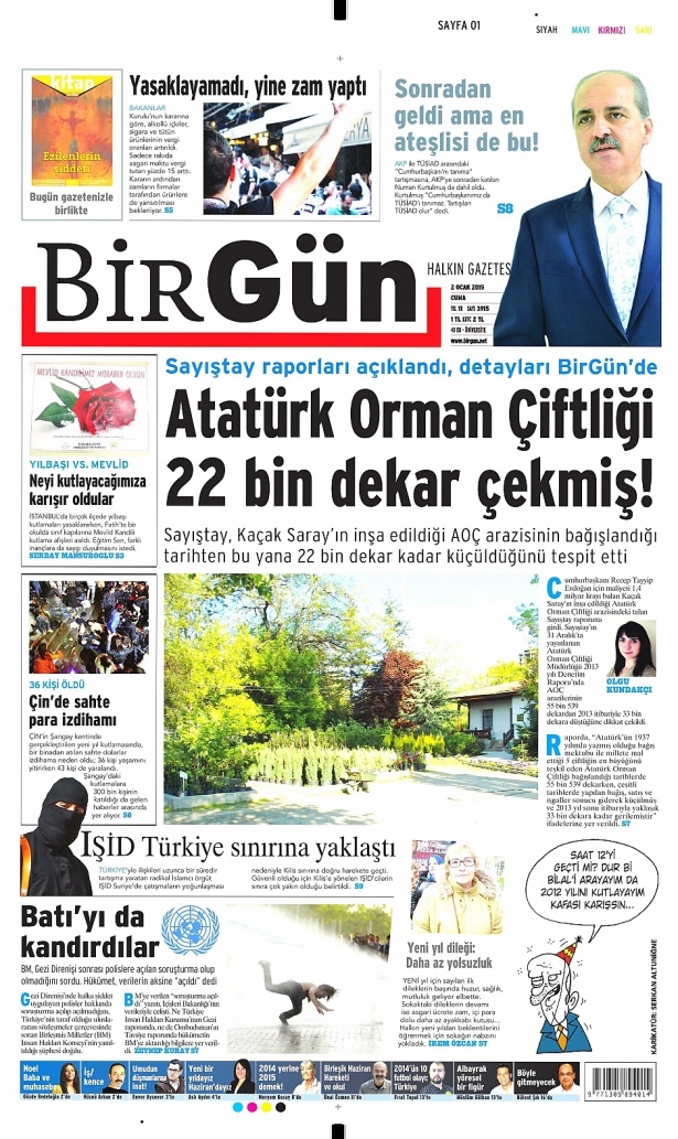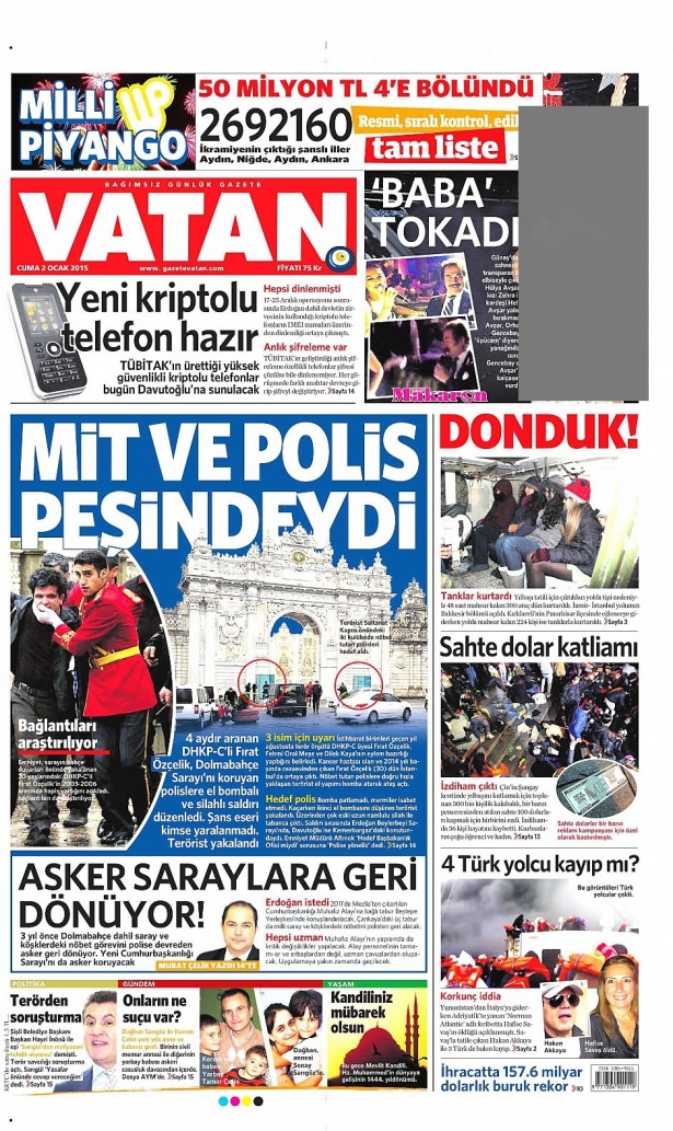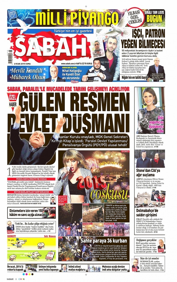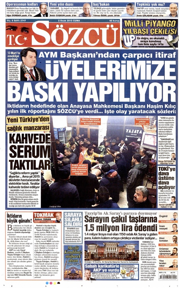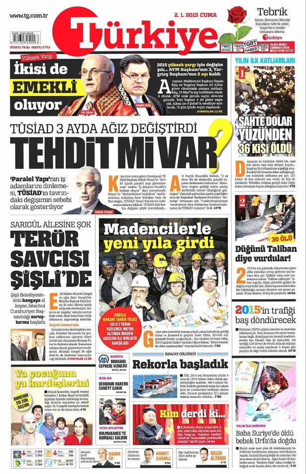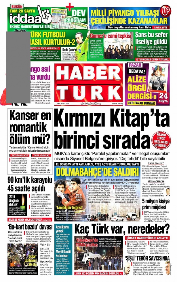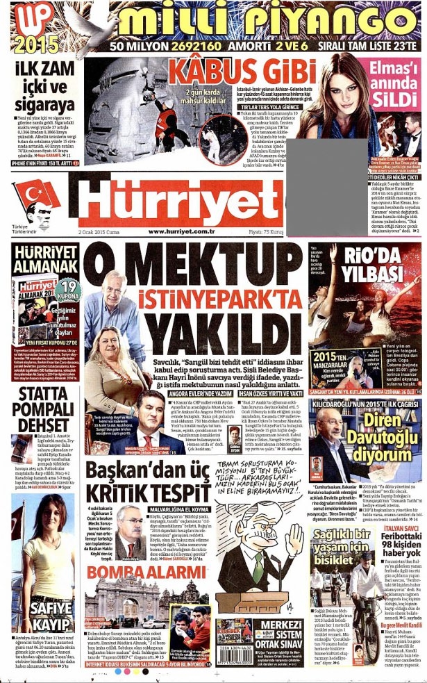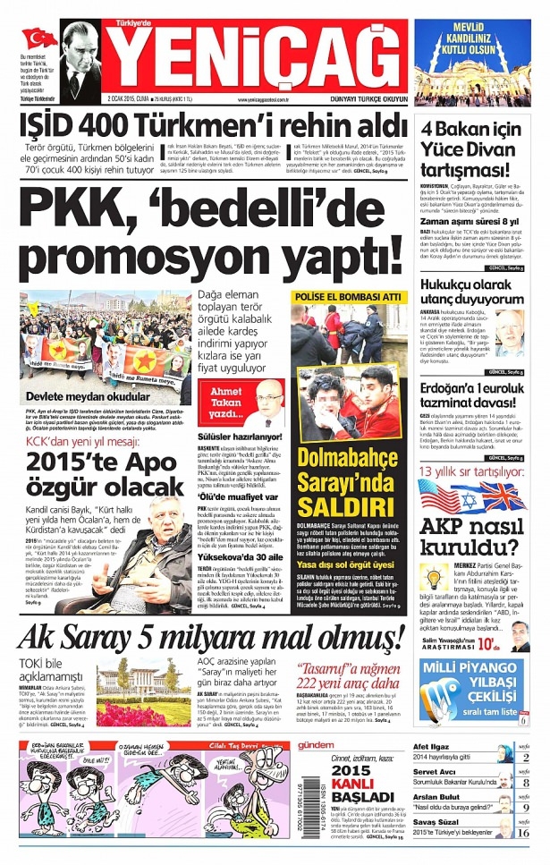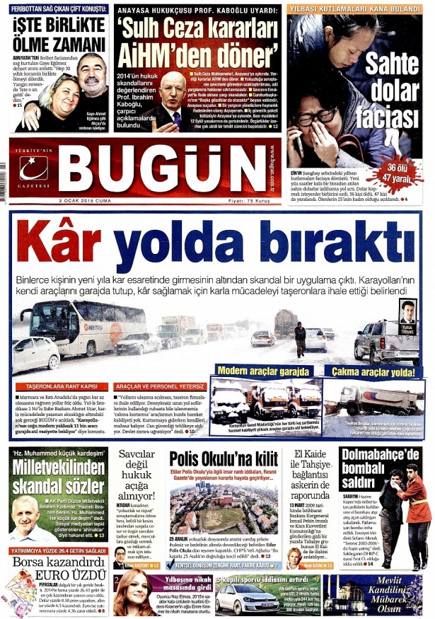 2 Ocak 2015 gazete manşetleri