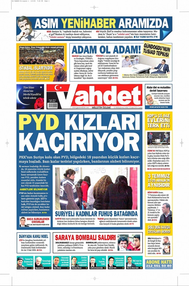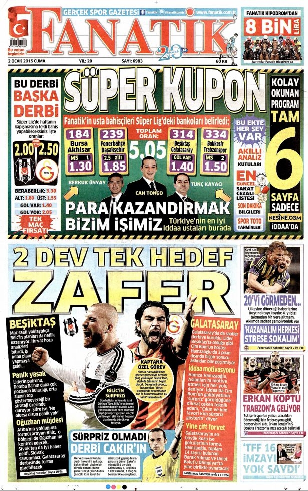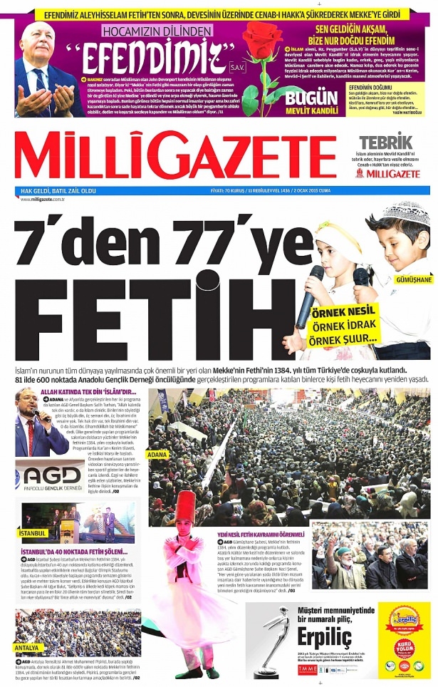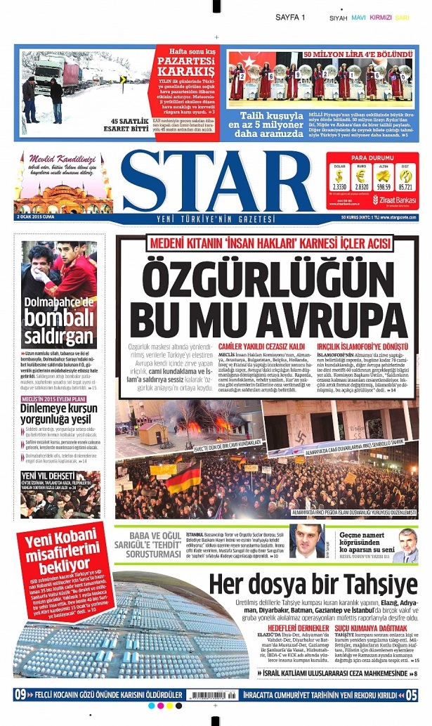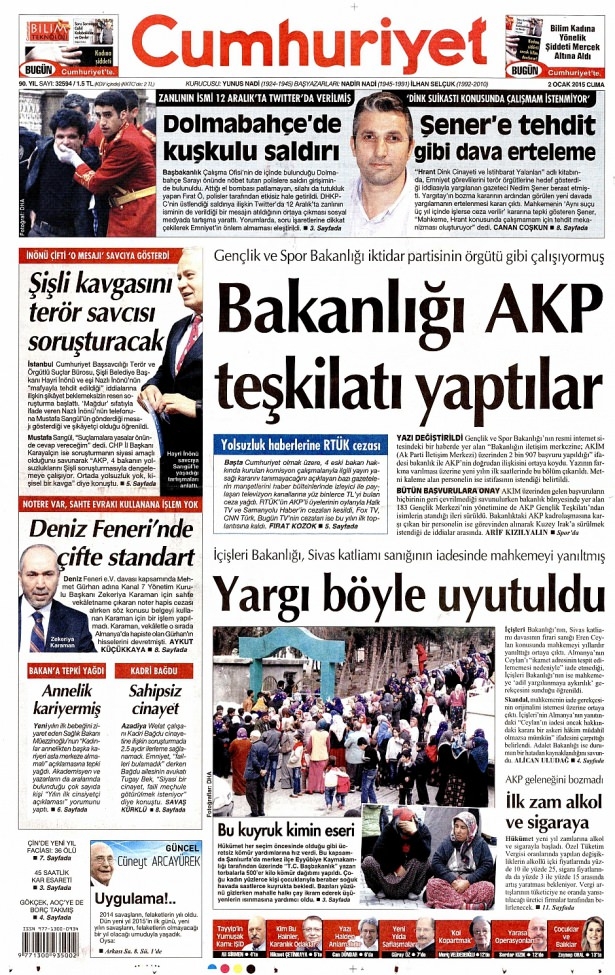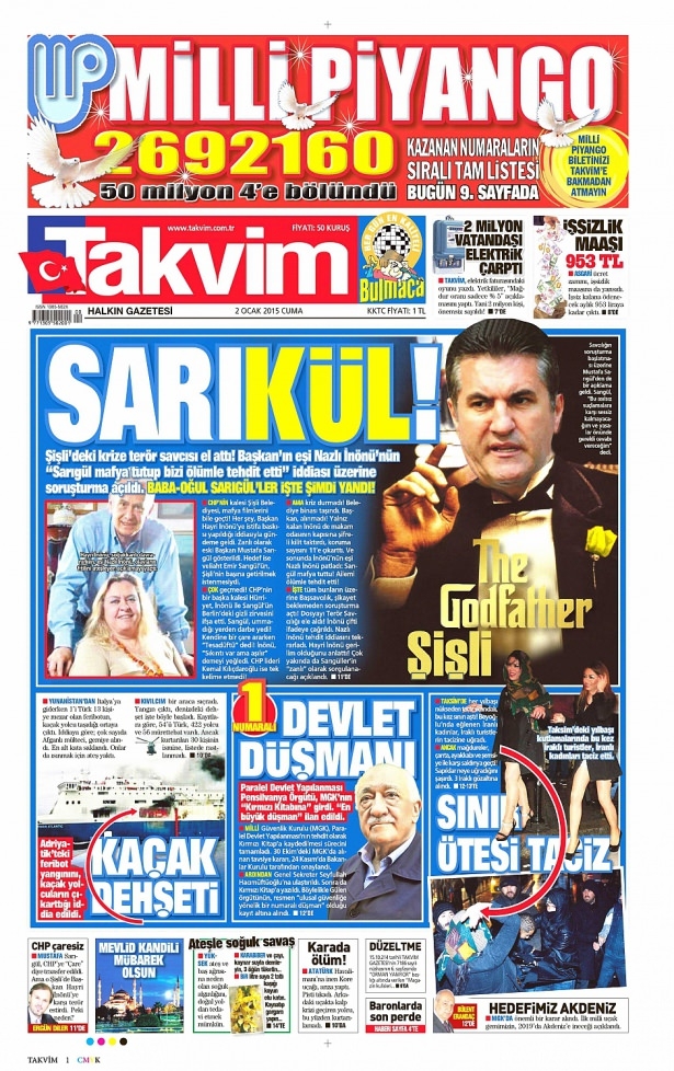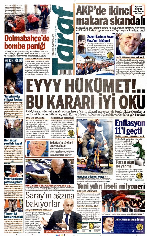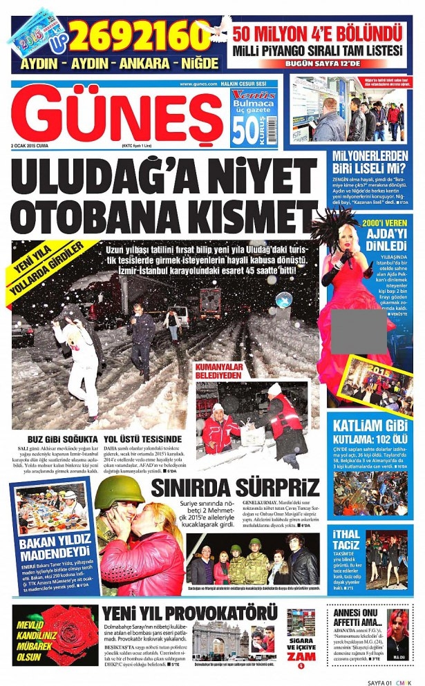 2 Ocak 2015 gazete manşetleri