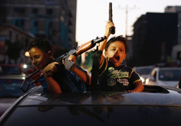 Filistinli çocuklar İsrail'le ateşkesi 'kutluyor'. (Suhaib Salem)