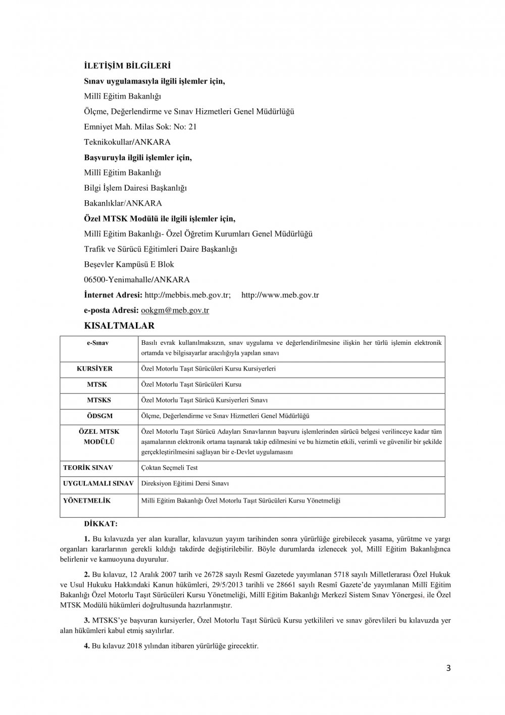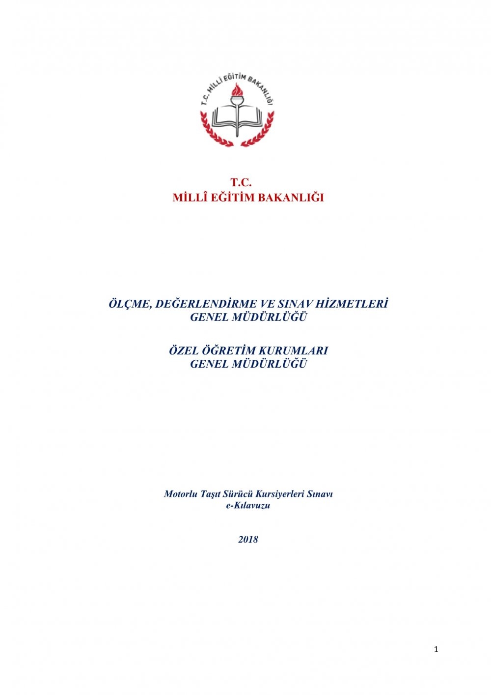 Milli Eğitim Bakanlığı Motorlu Taşıt Sürücü Kursiyerleri Sınavı e-Kılavuzu Yayımlandı.