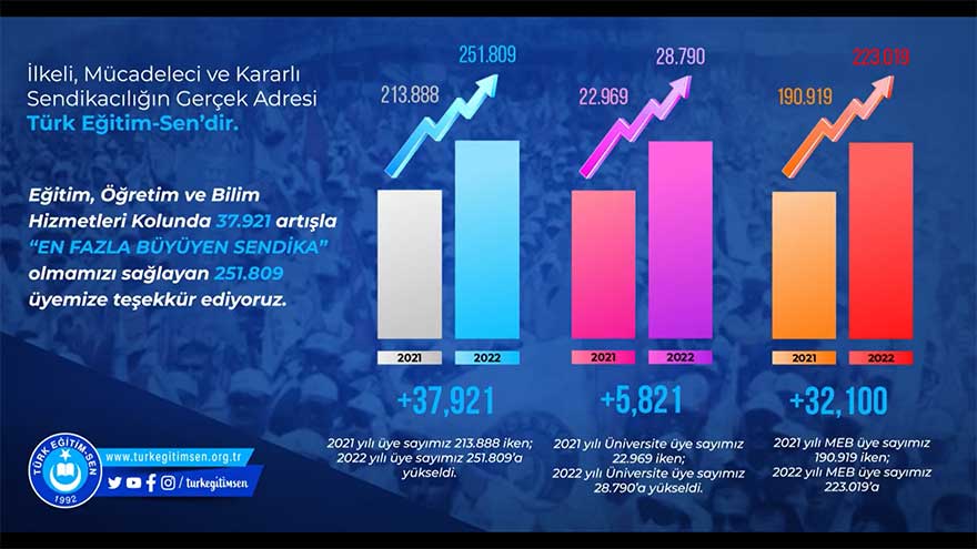 2022'de Üye Artışında Türk Eğitim-Sen Farkı! 37.921 üye artışı ile...