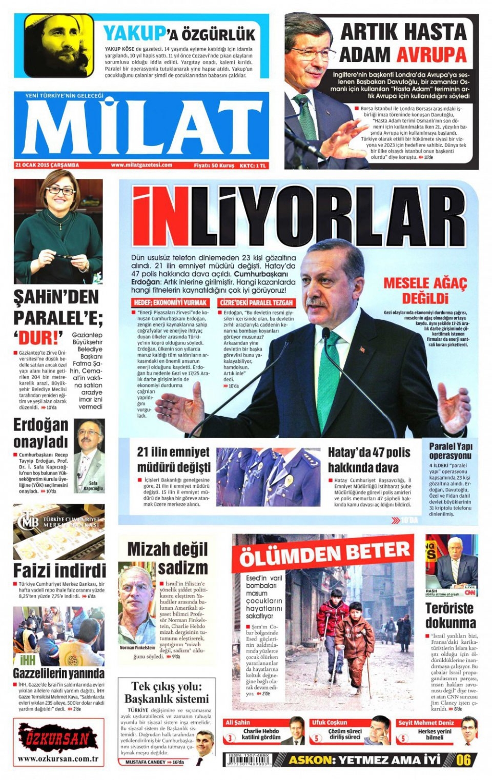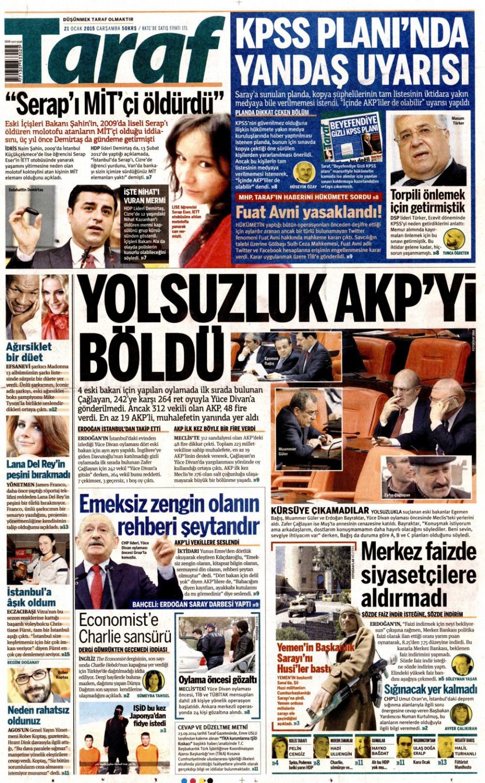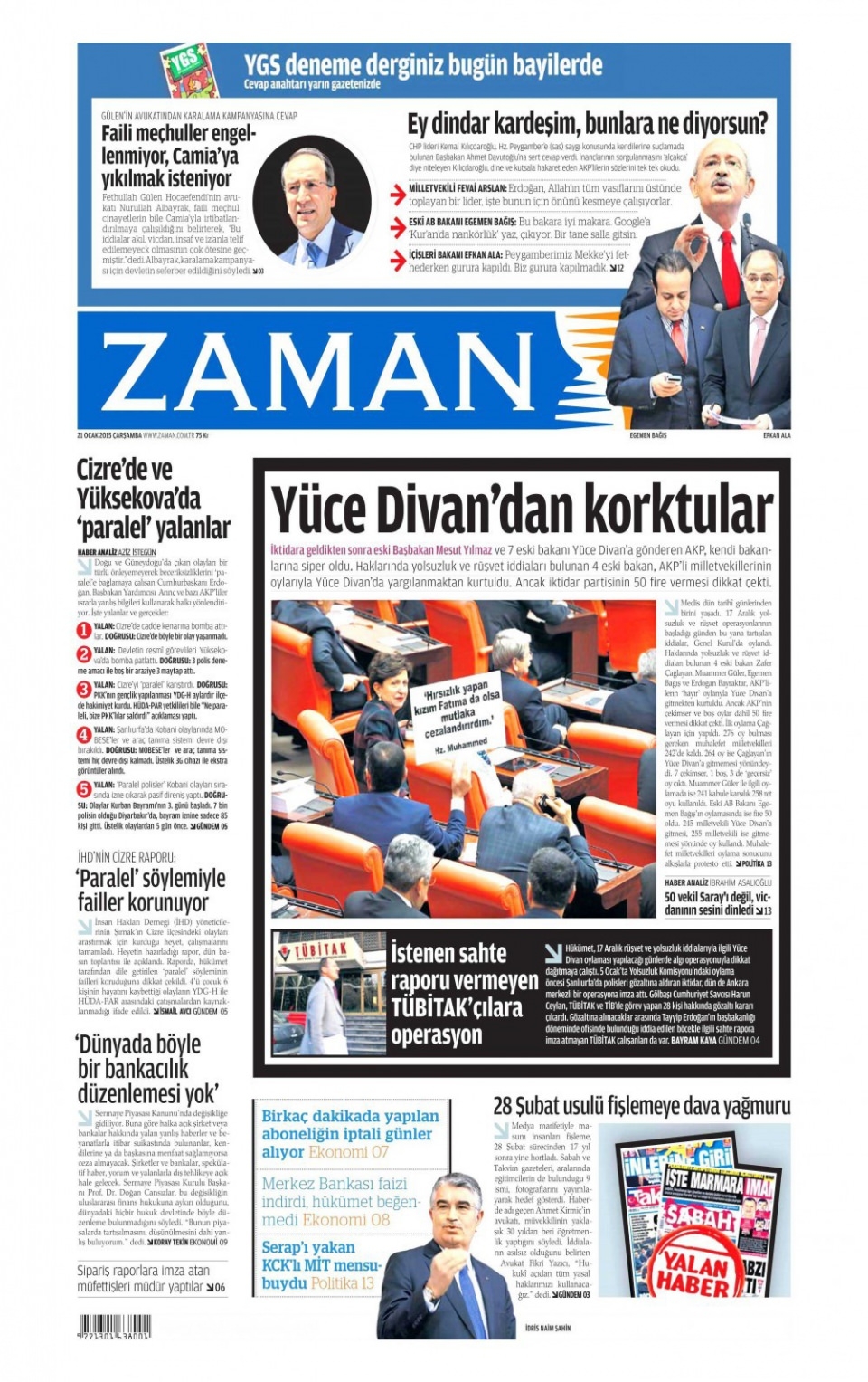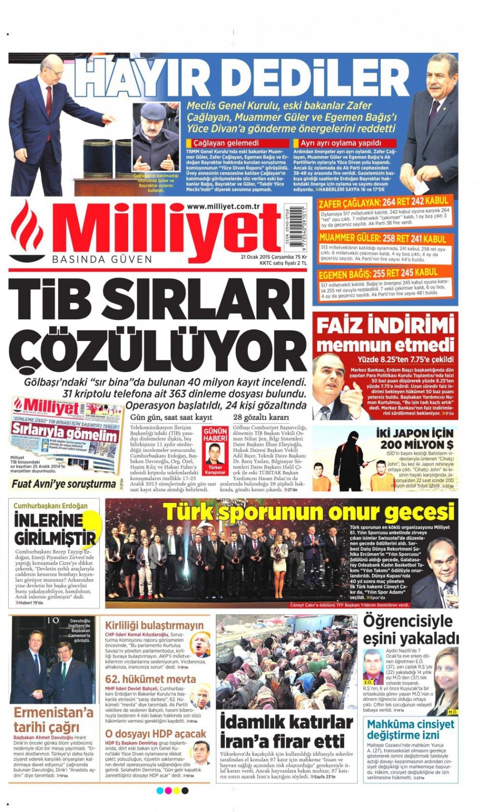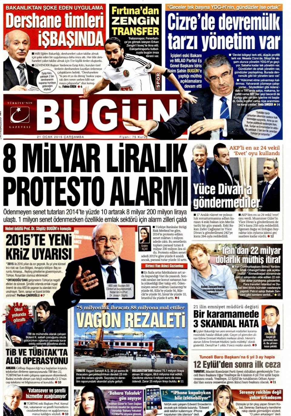 21 Ocak 2015 gazete manşetleri