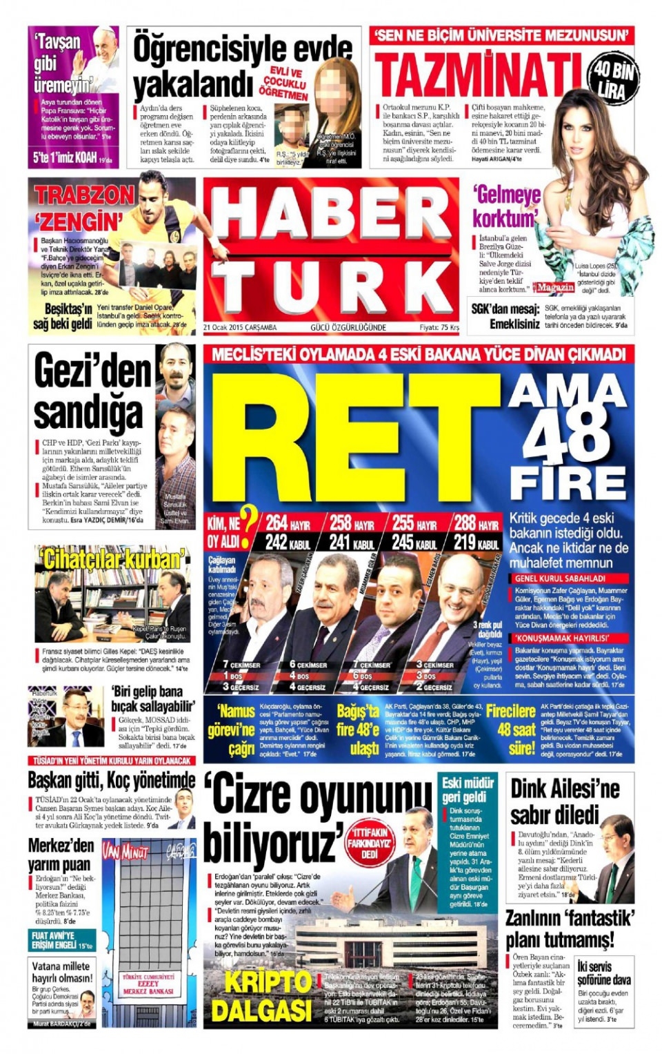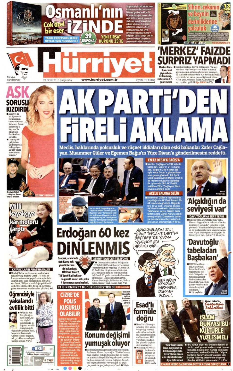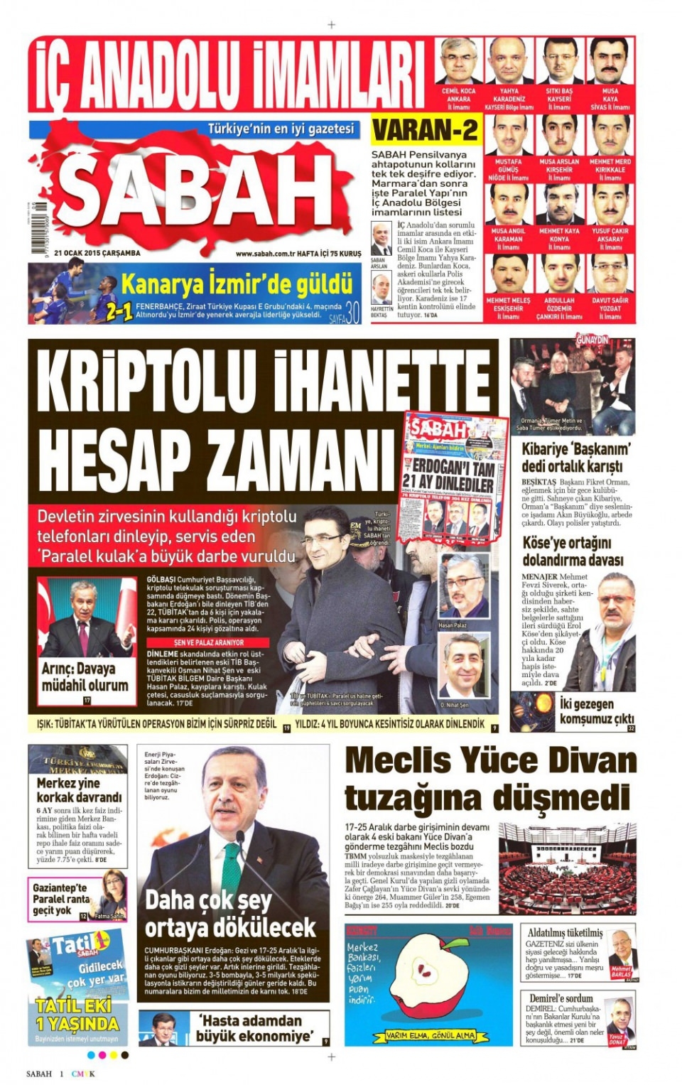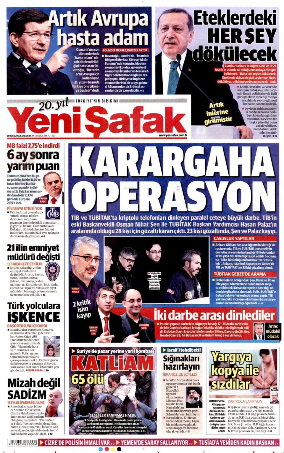 21 Ocak 2015 gazete manşetleri