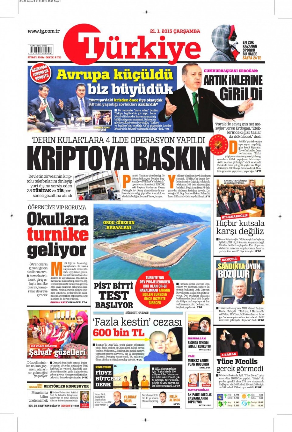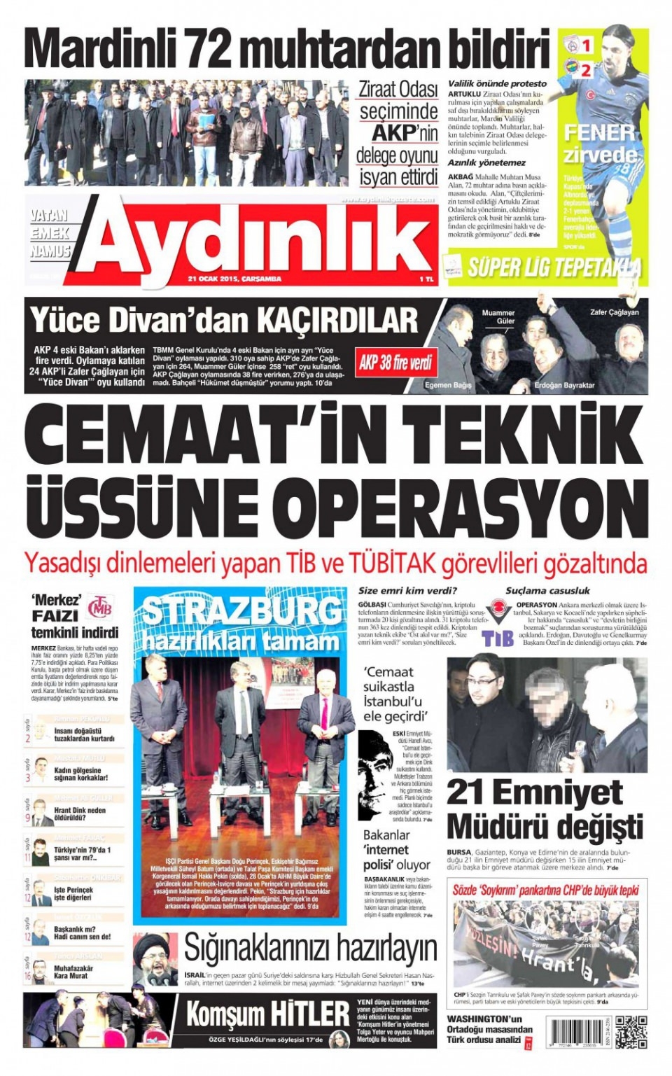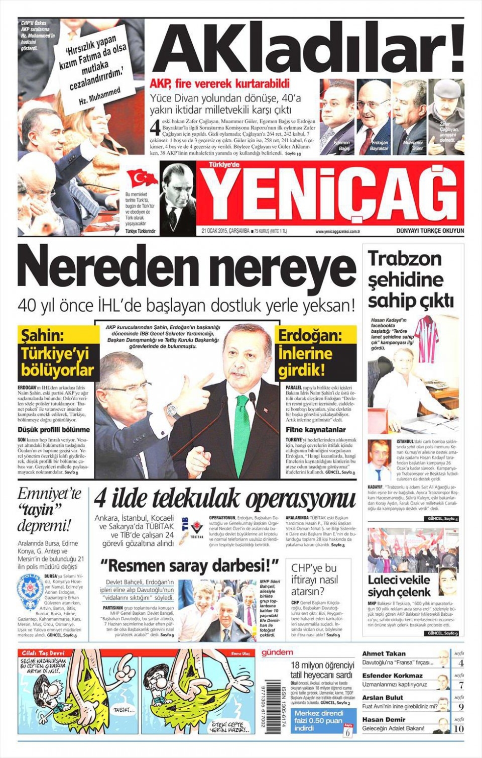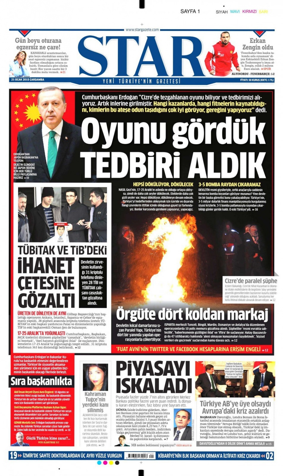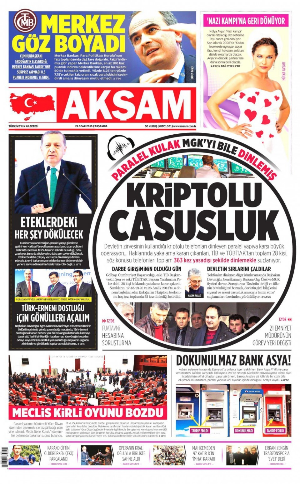 21 Ocak 2015 gazete manşetleri