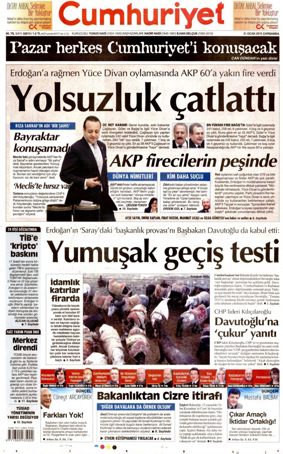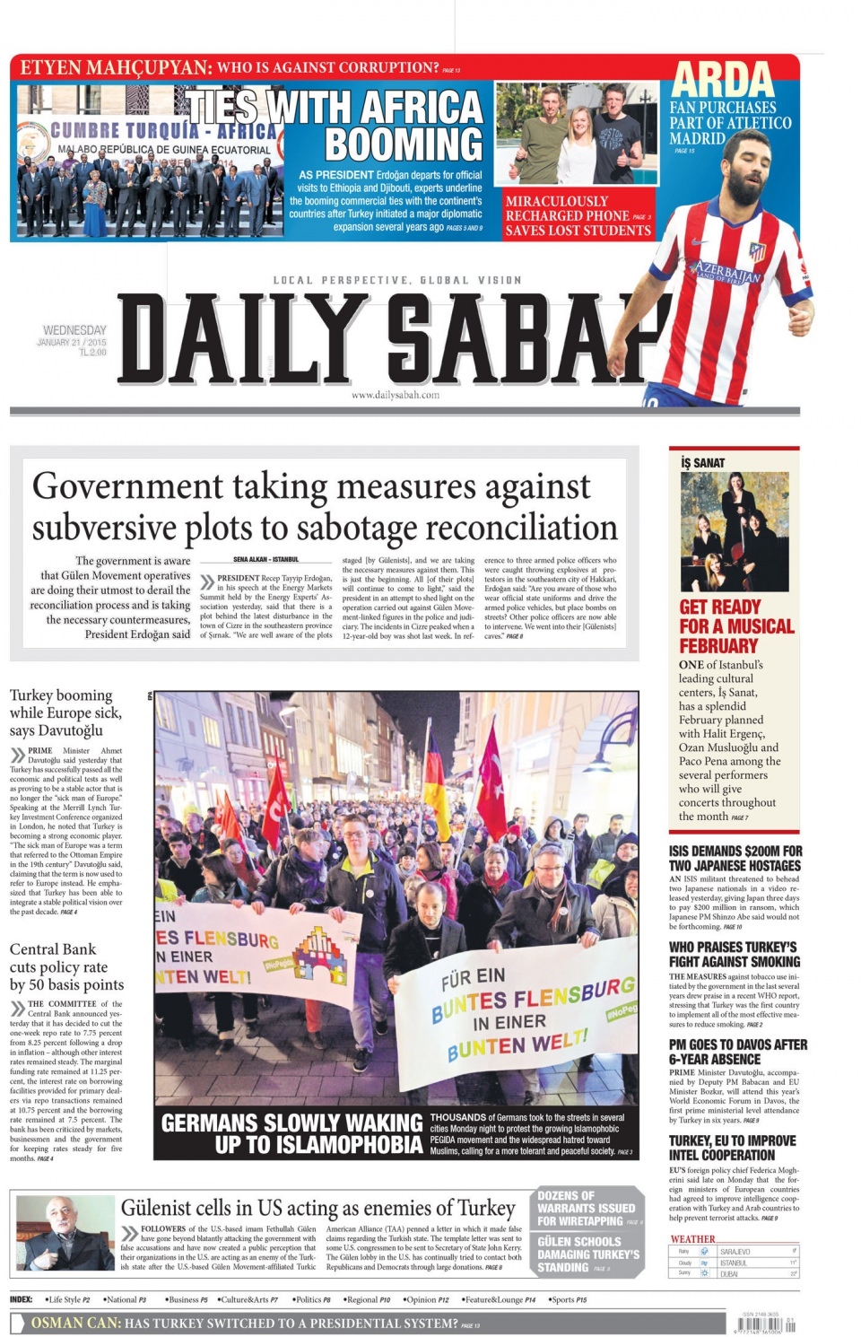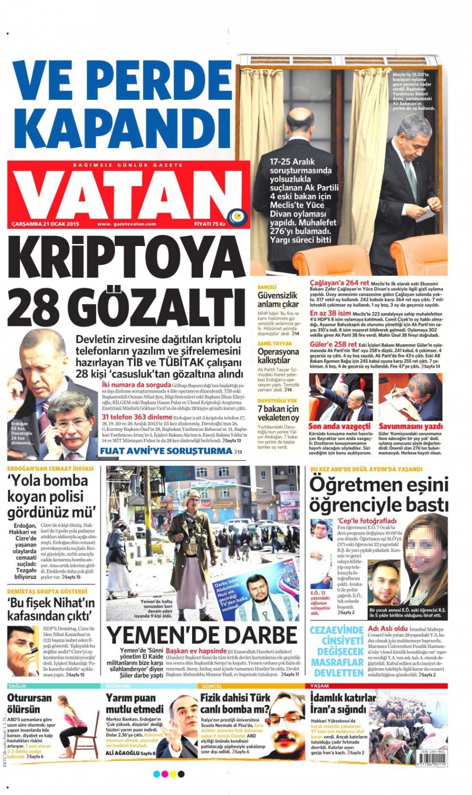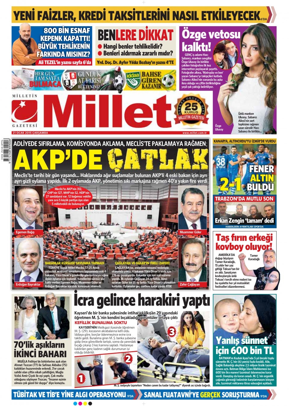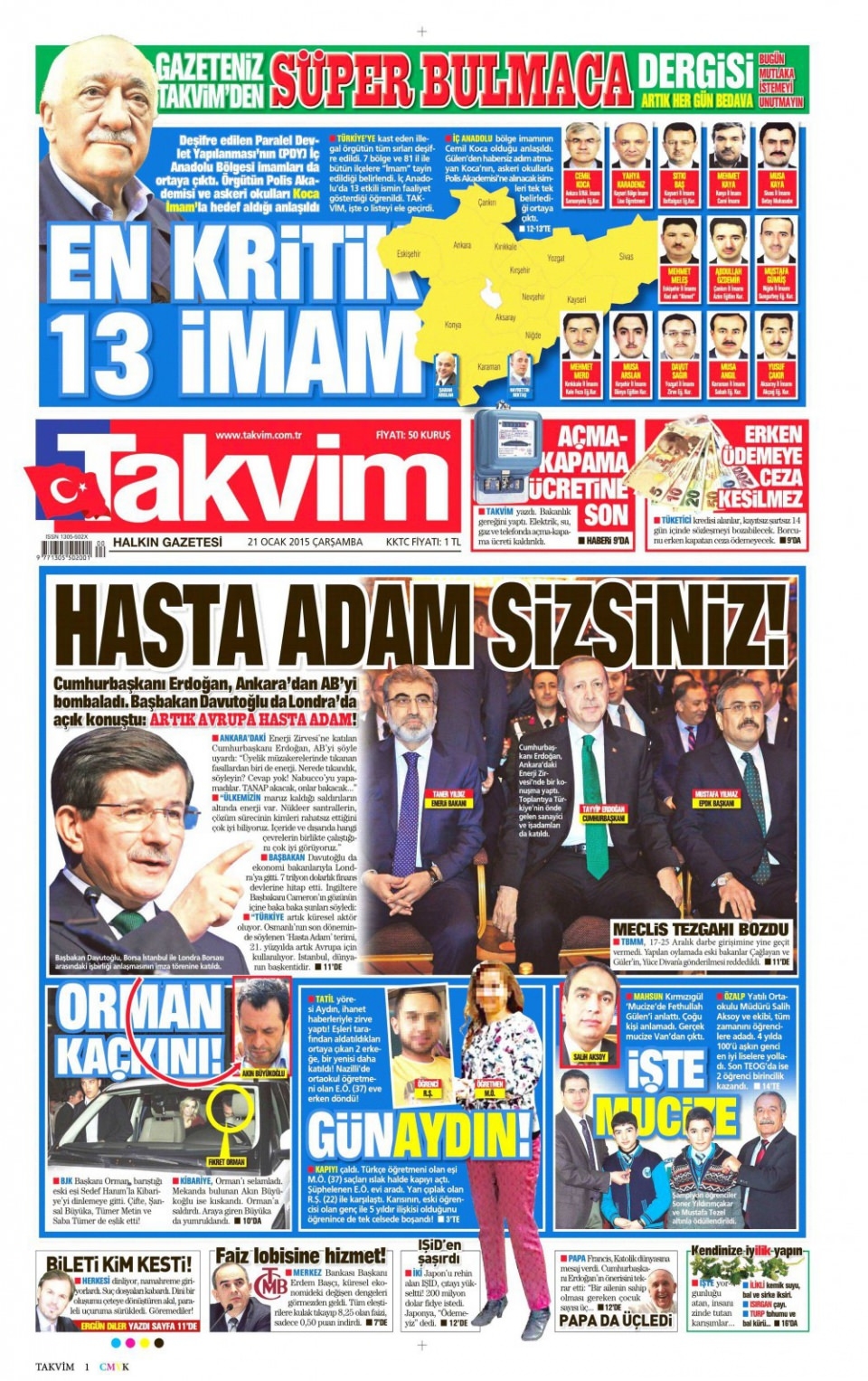 21 Ocak 2015 gazete manşetleri