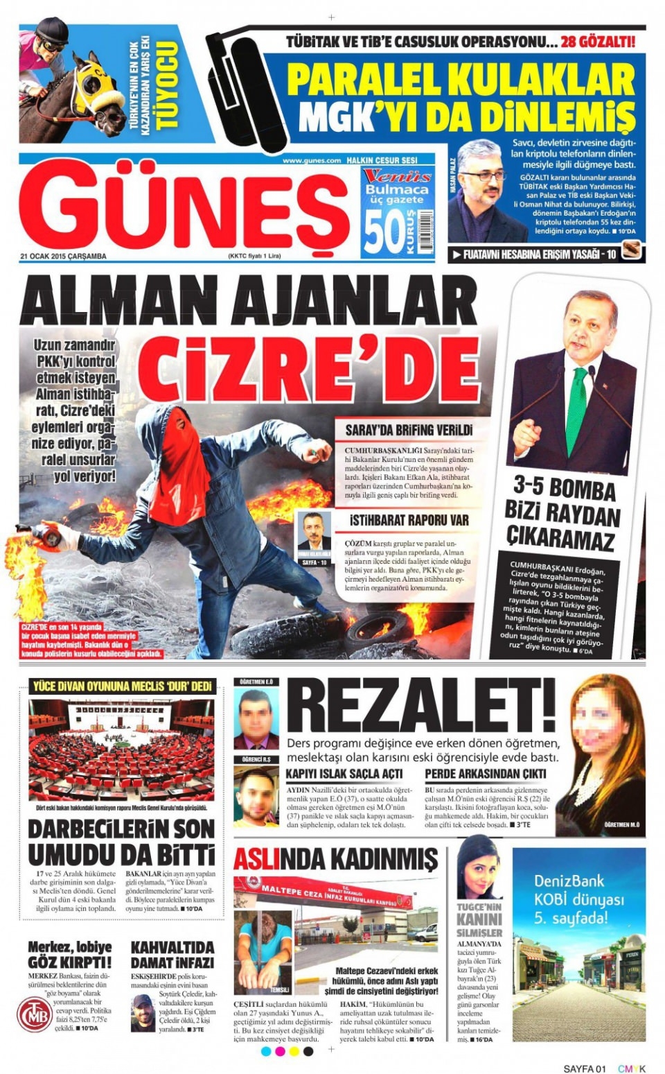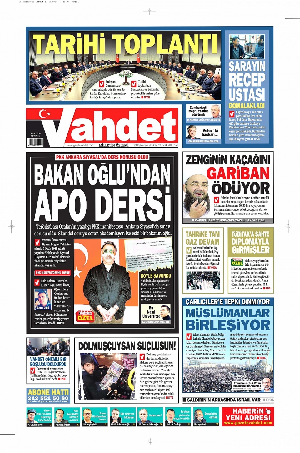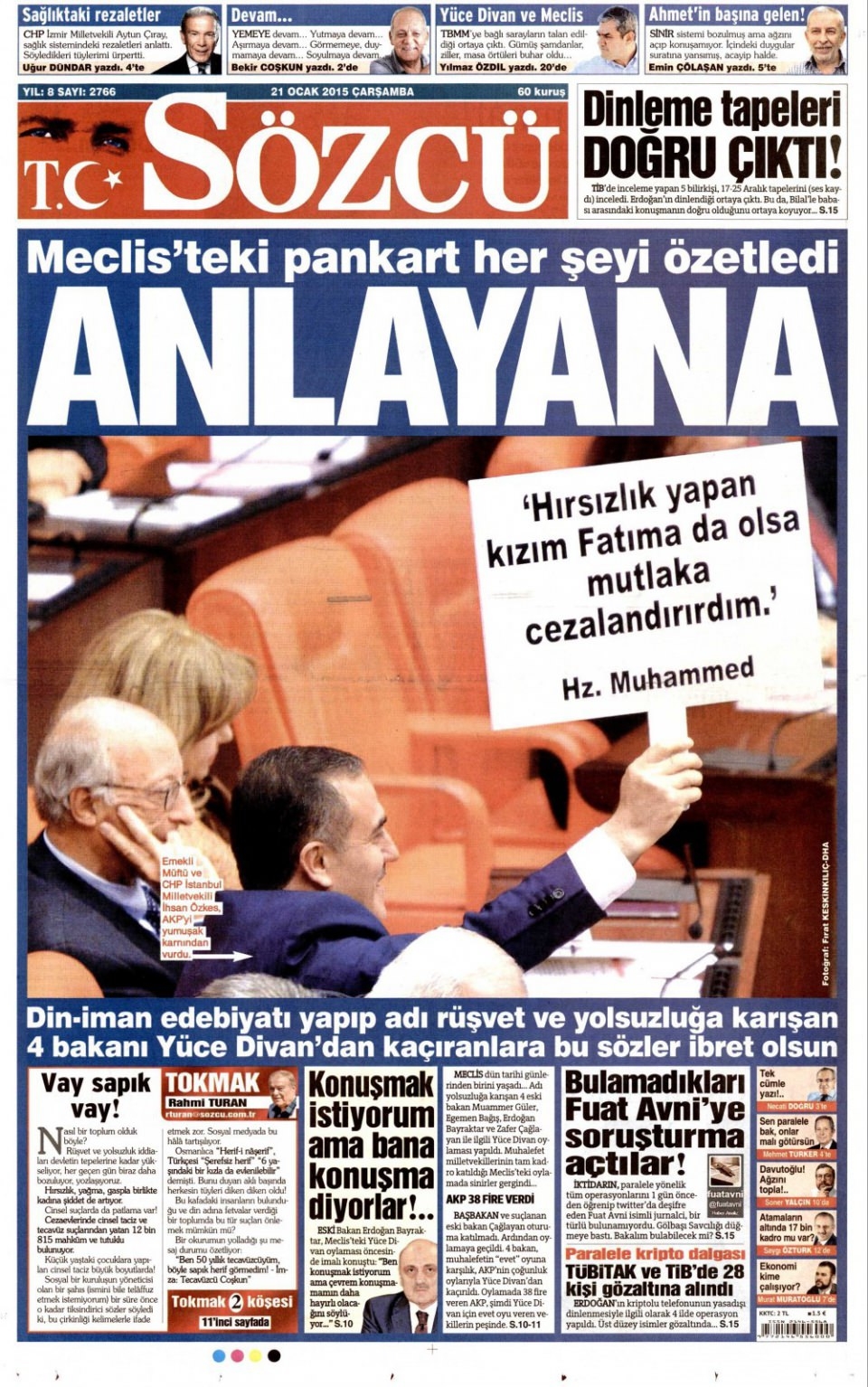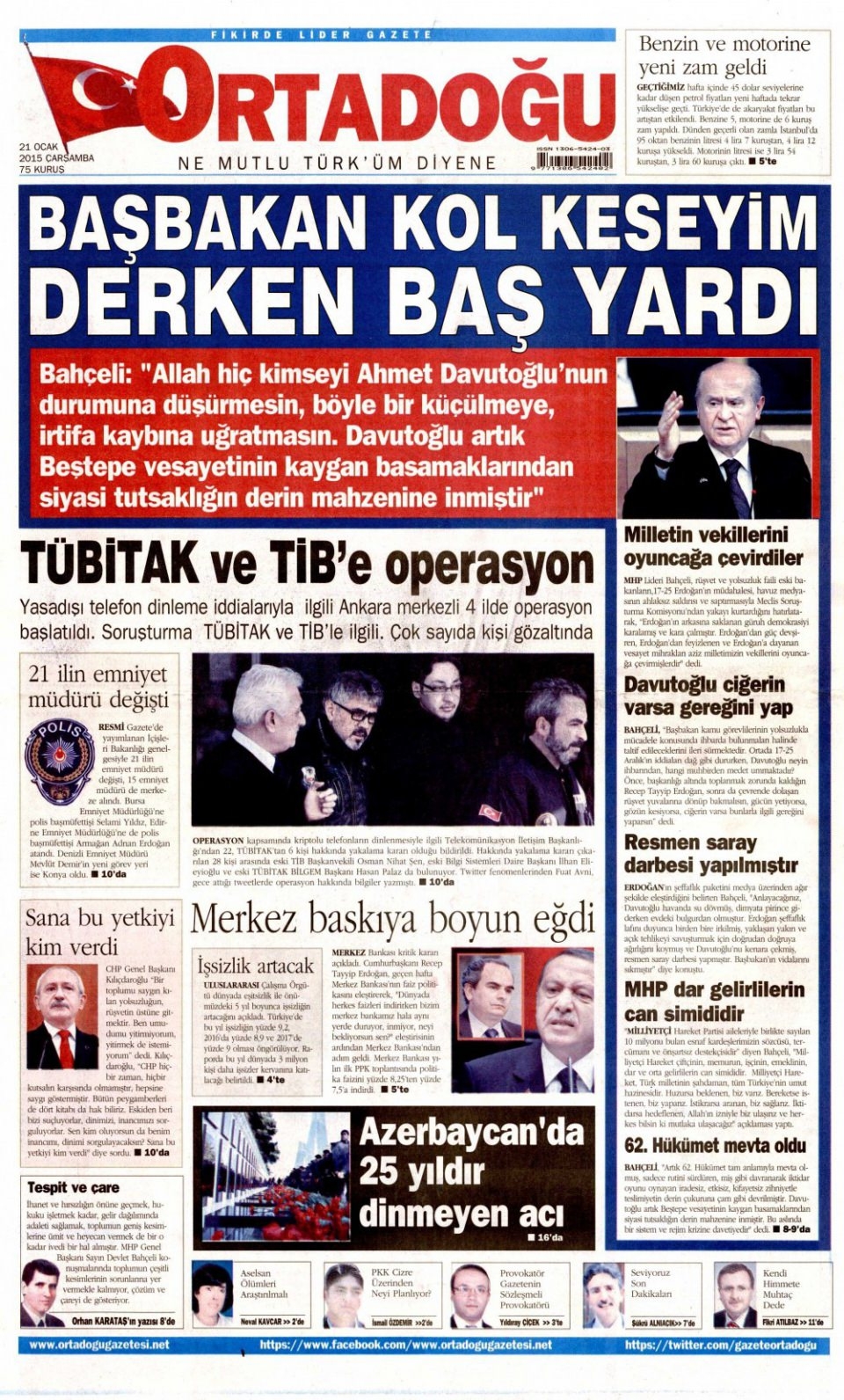 21 Ocak 2015 gazete manşetleri