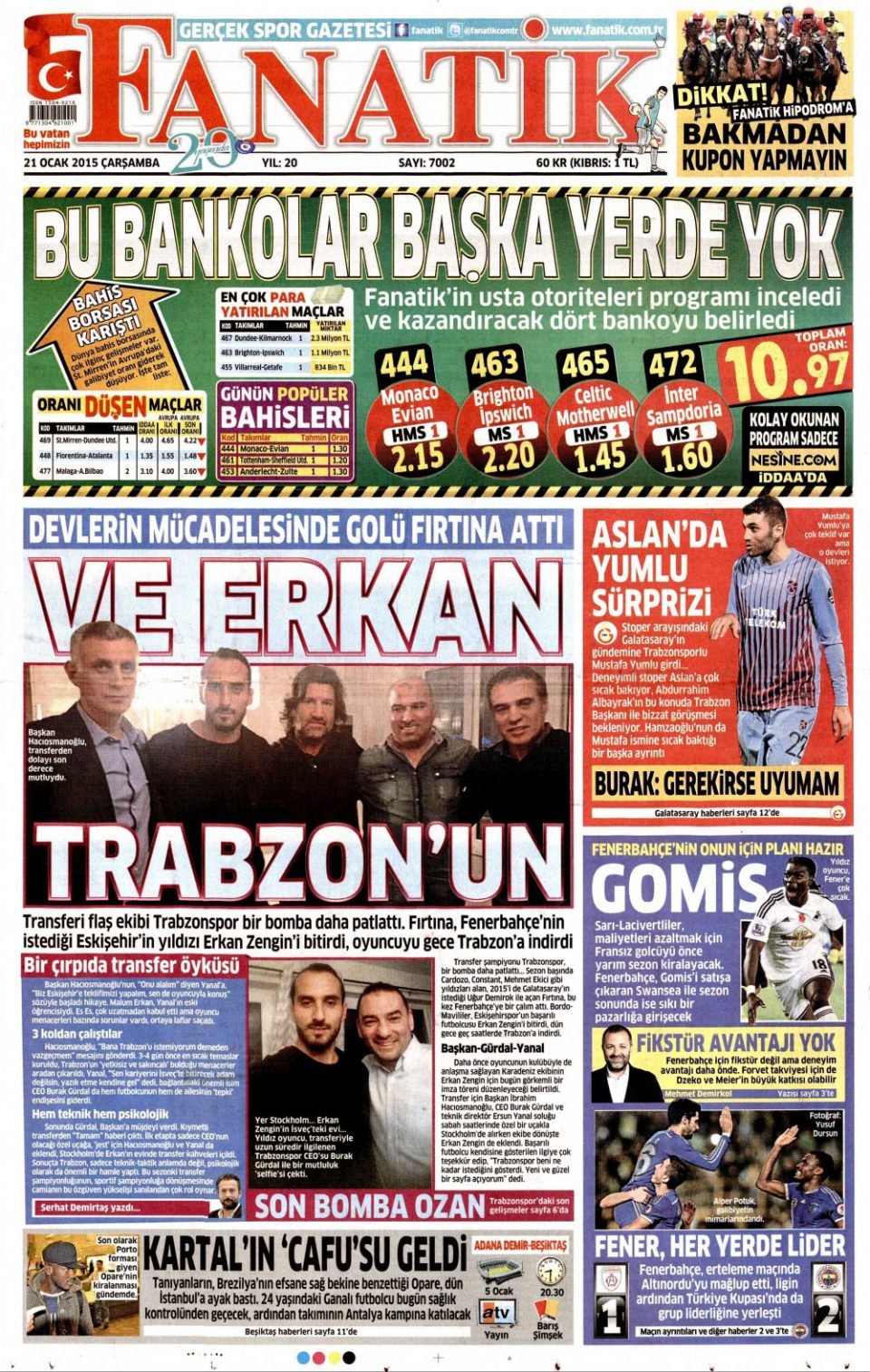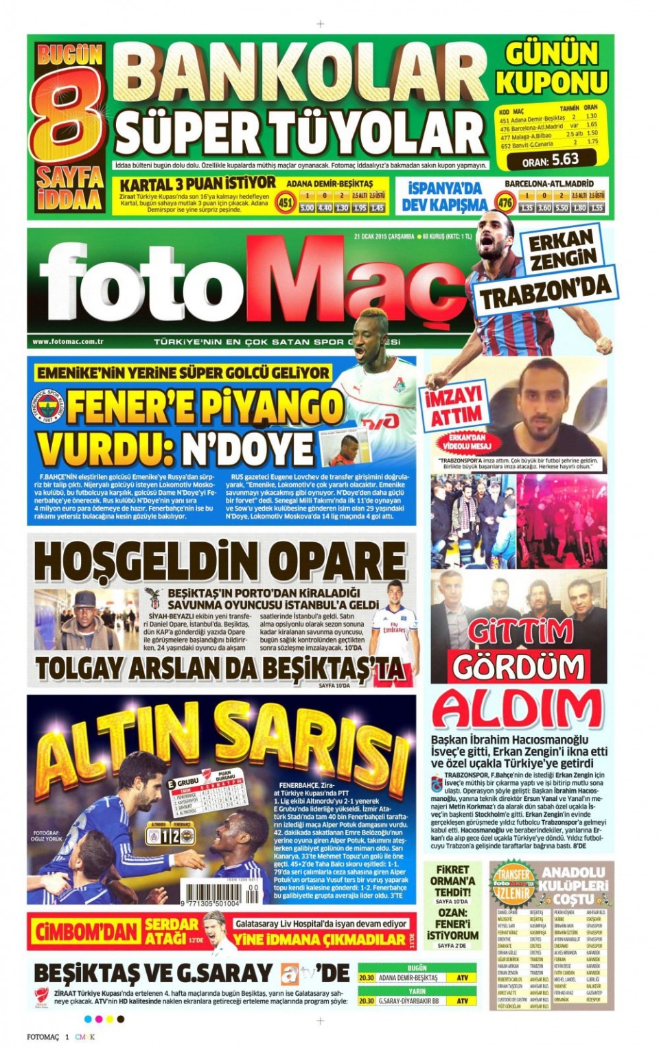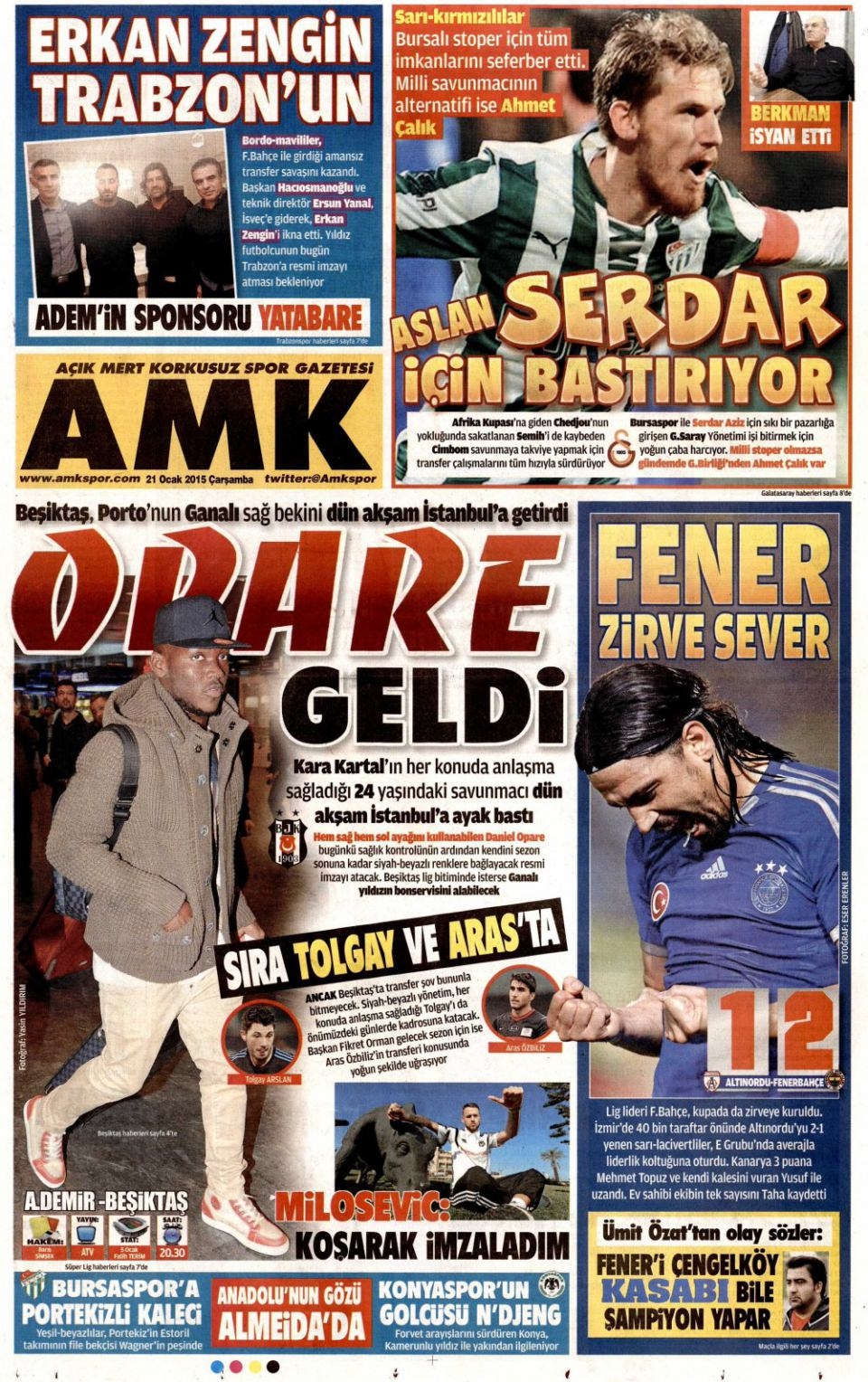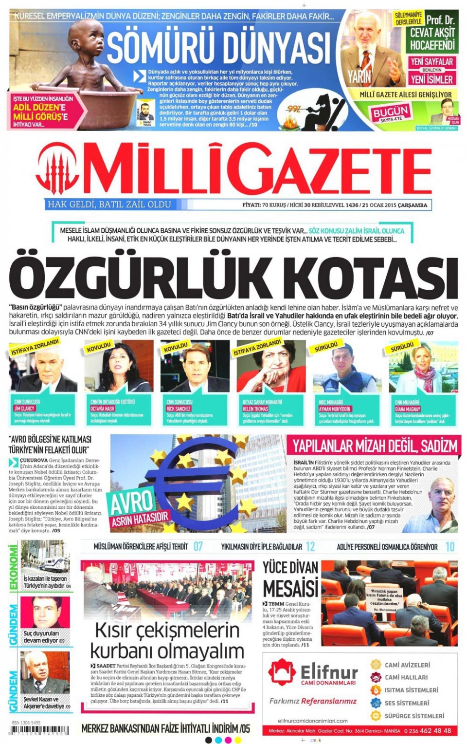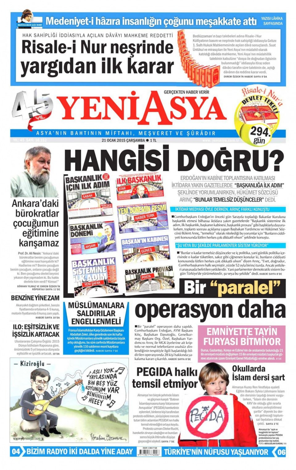 21 Ocak 2015 gazete manşetleri