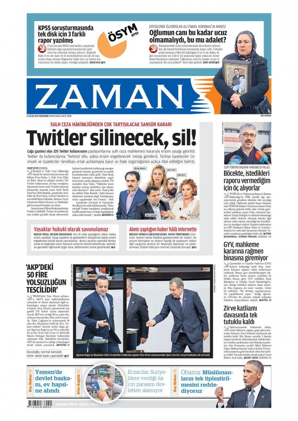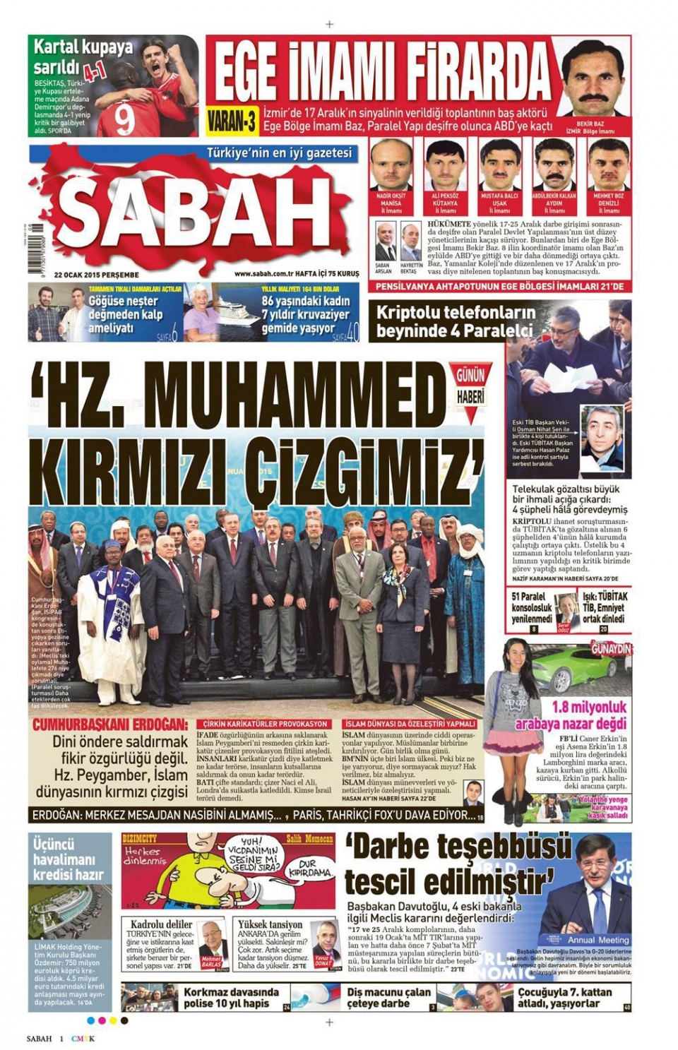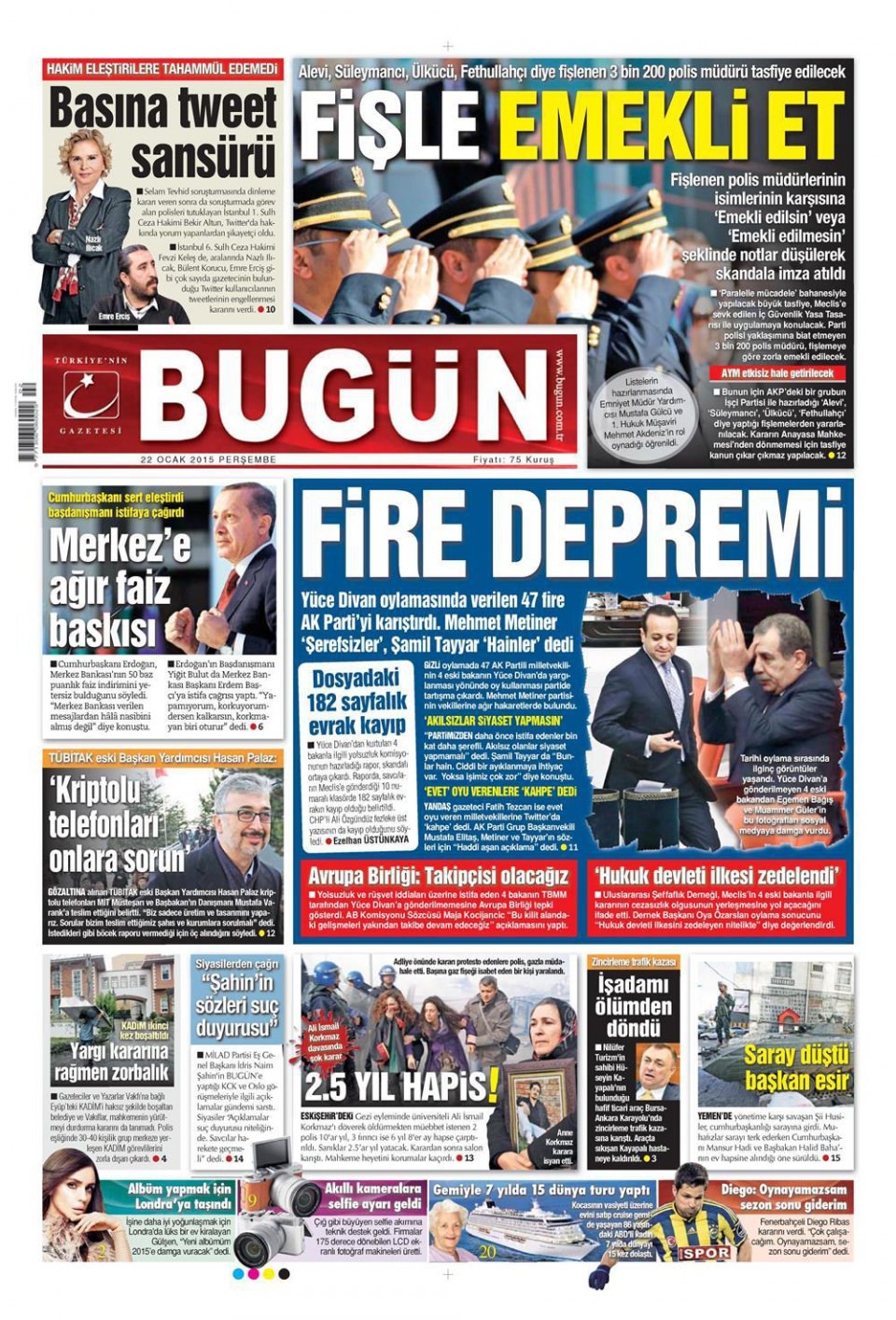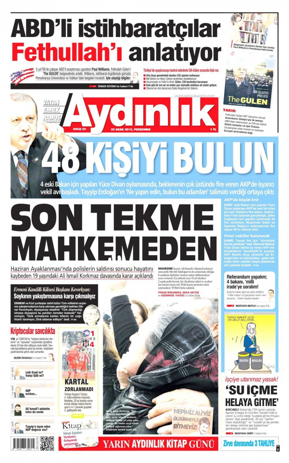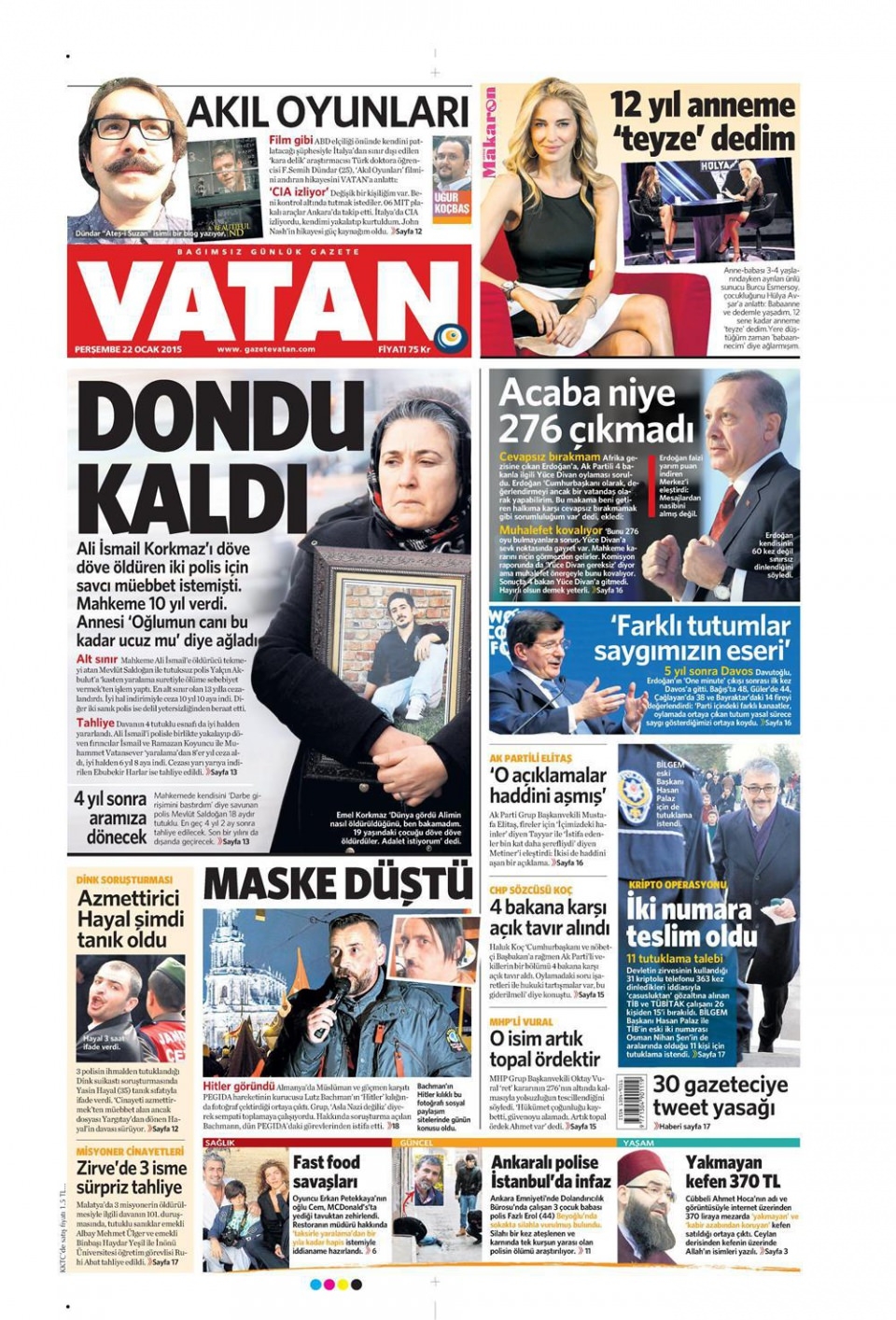 22 Ocak 2015 gazete manşetleri