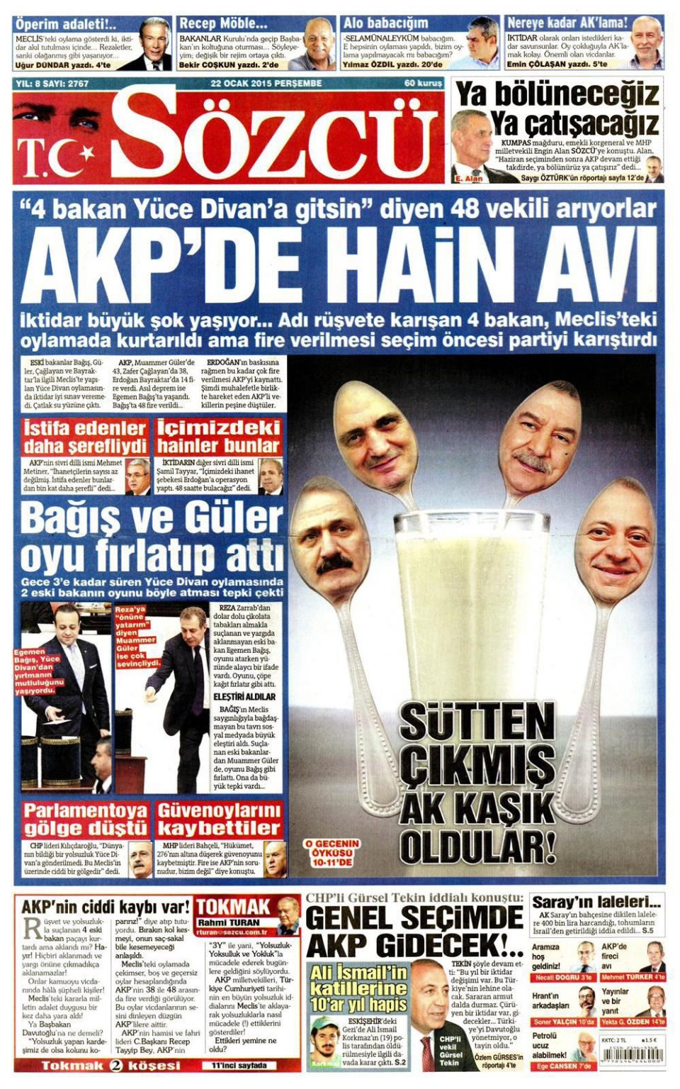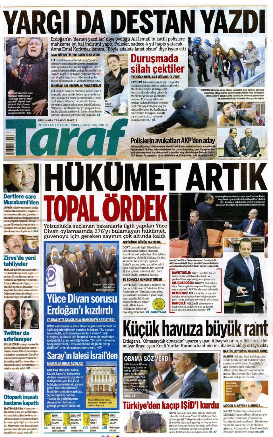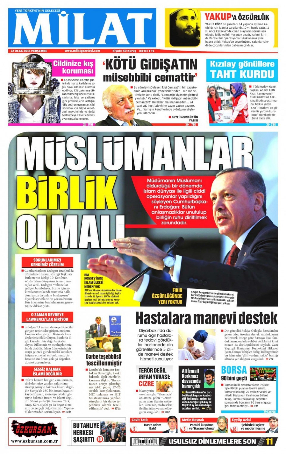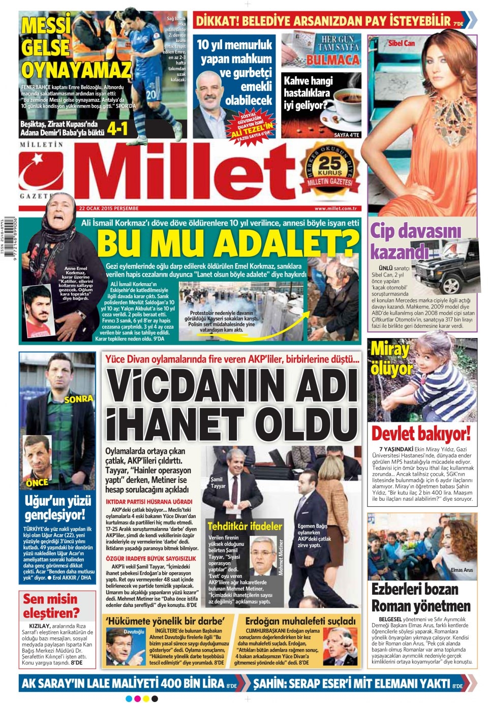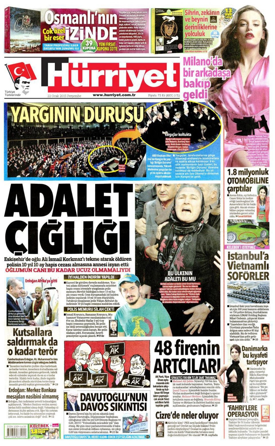 22 Ocak 2015 gazete manşetleri
