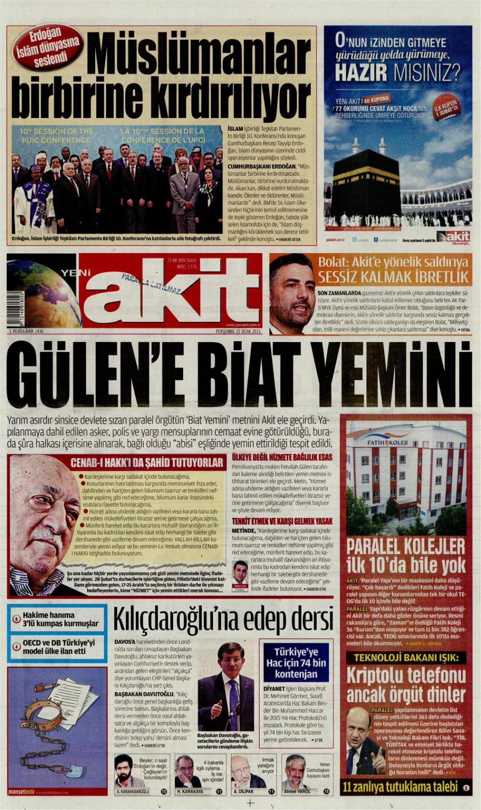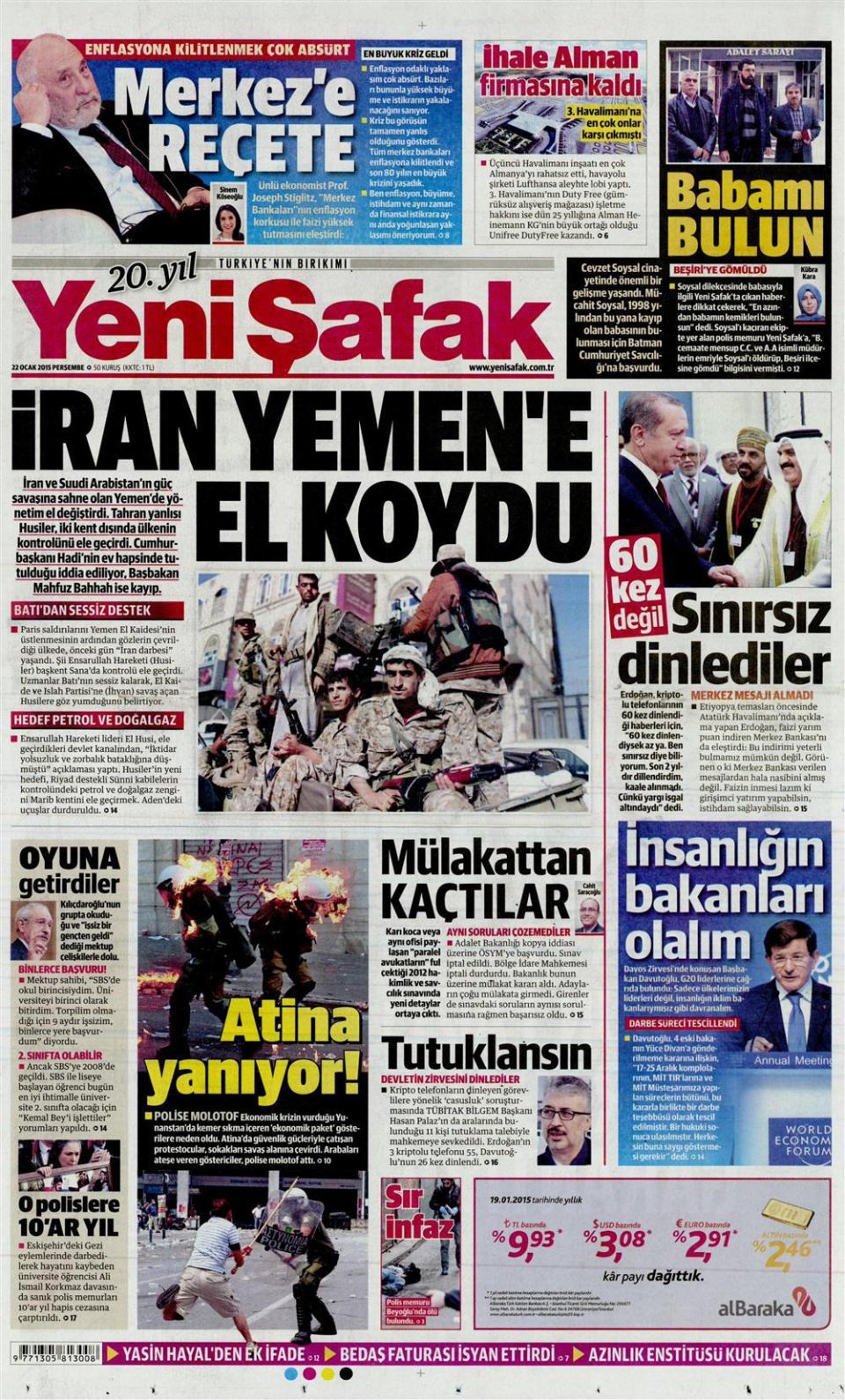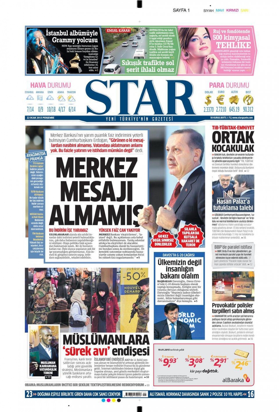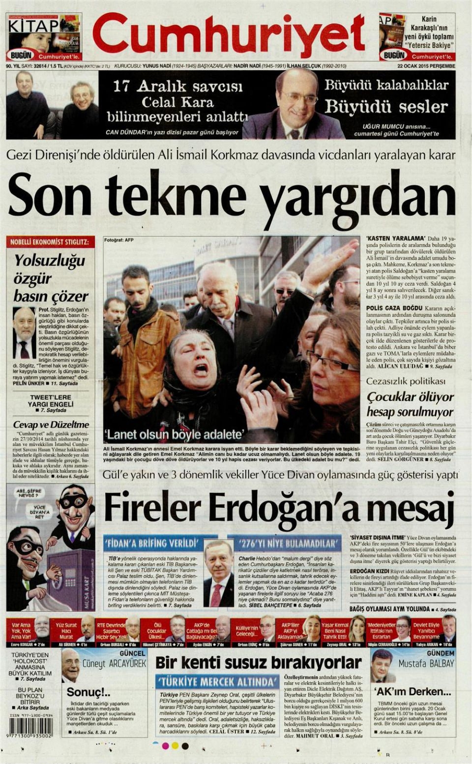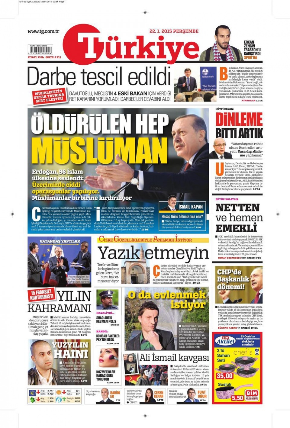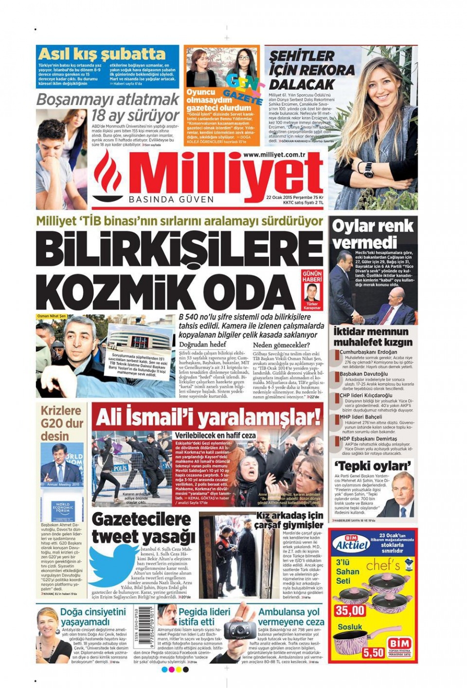 22 Ocak 2015 gazete manşetleri
