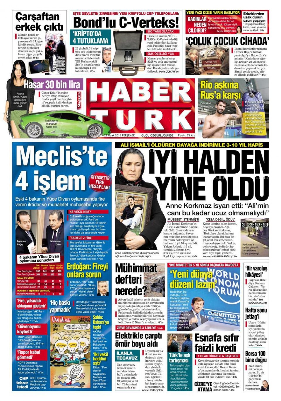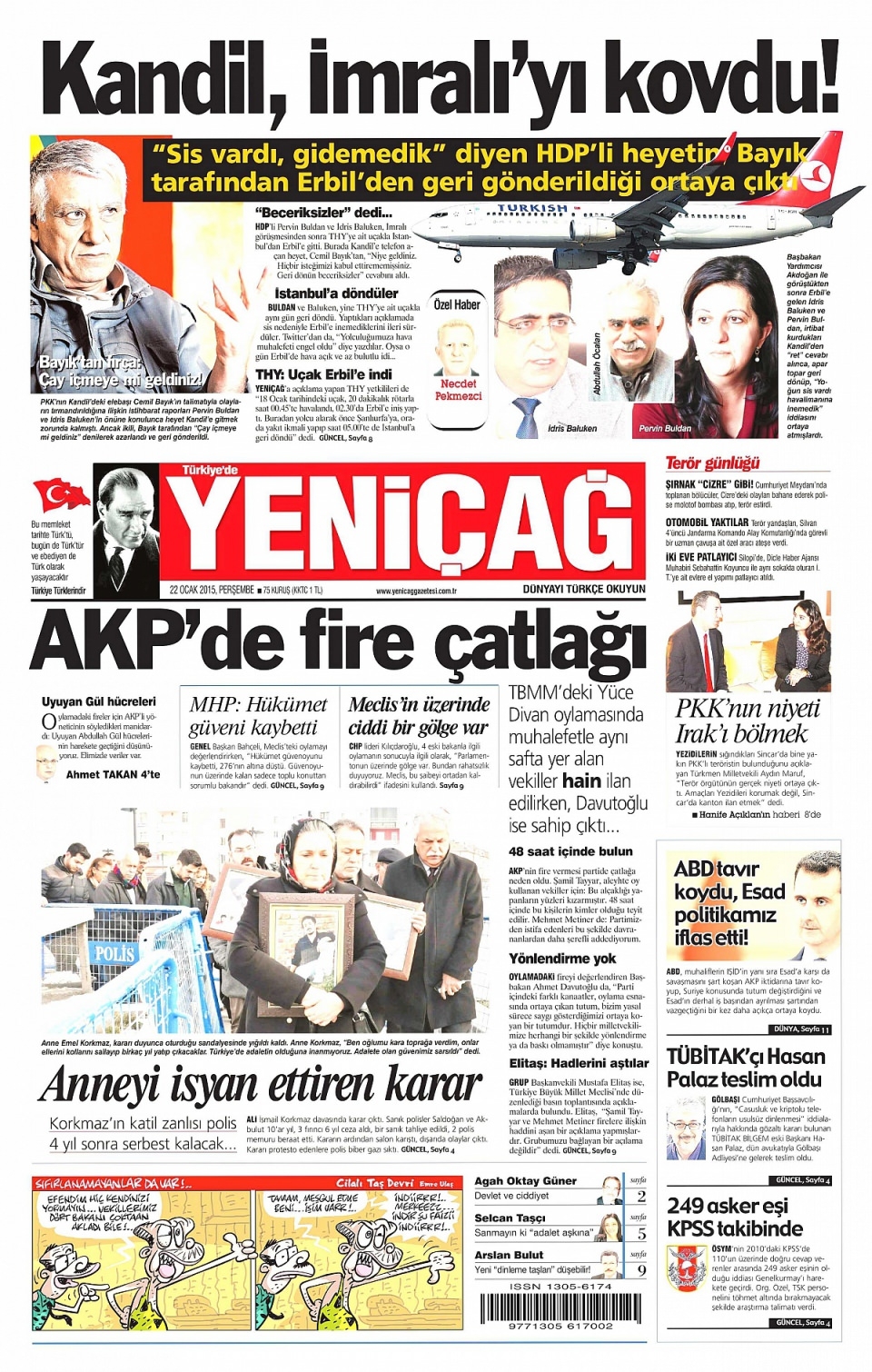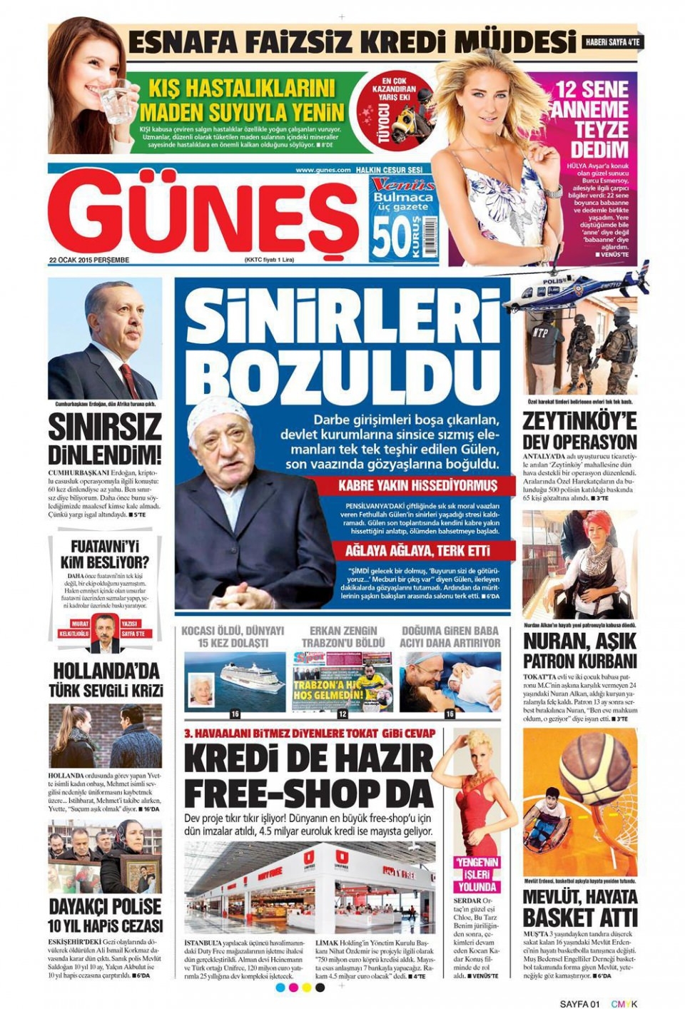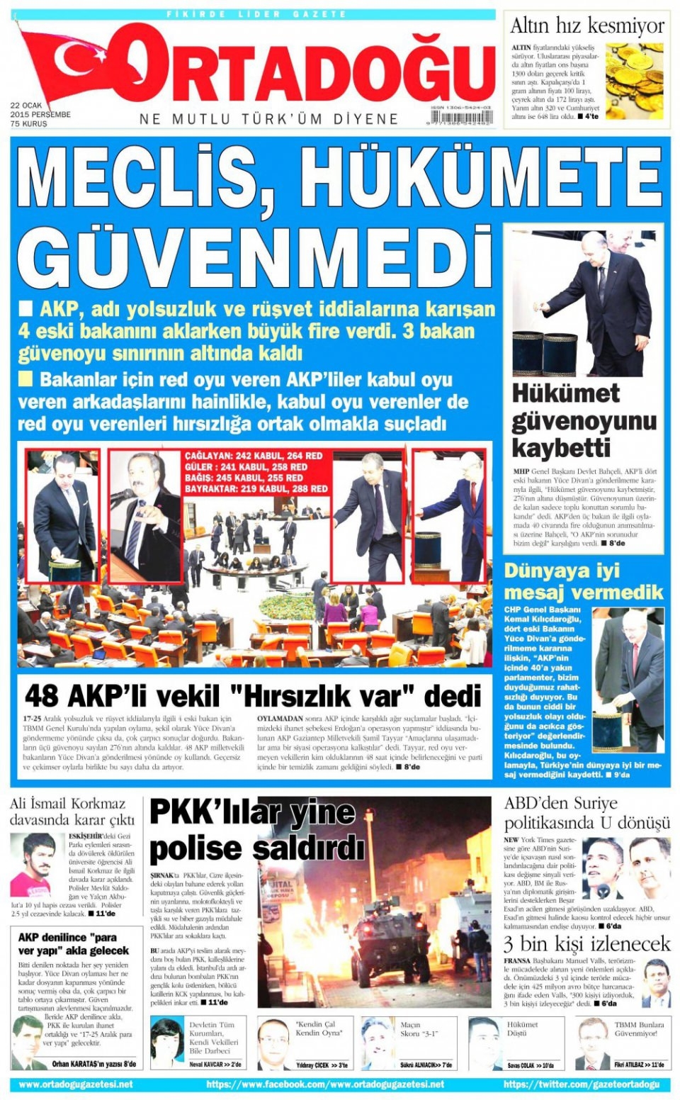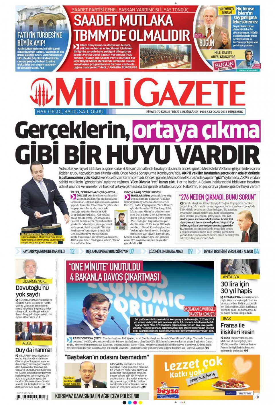 22 Ocak 2015 gazete manşetleri
