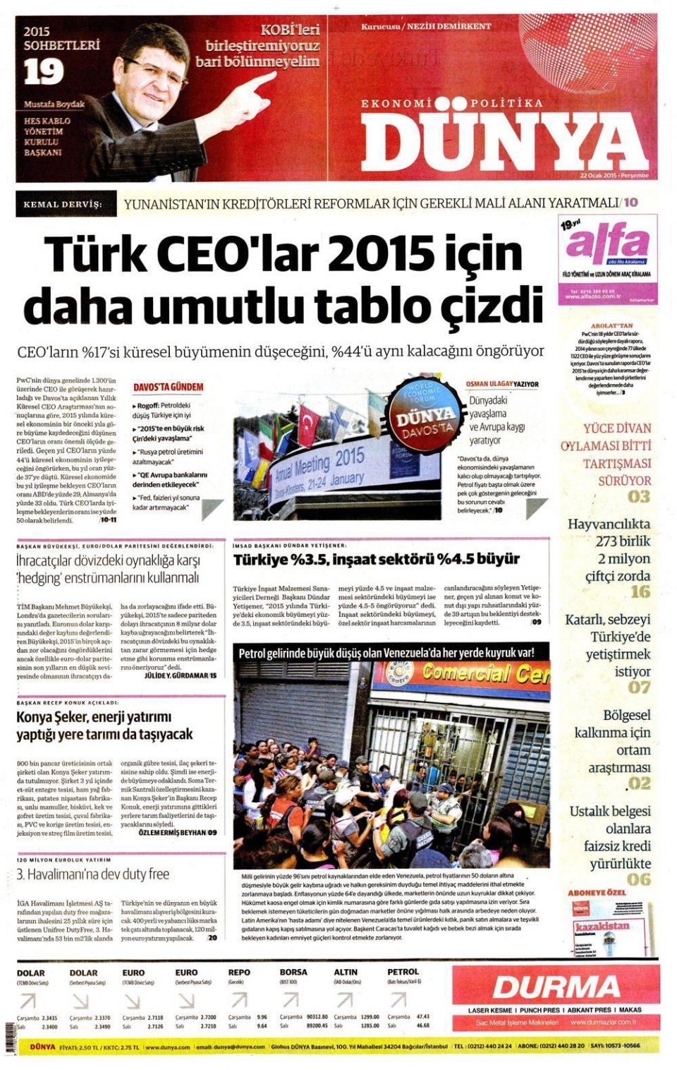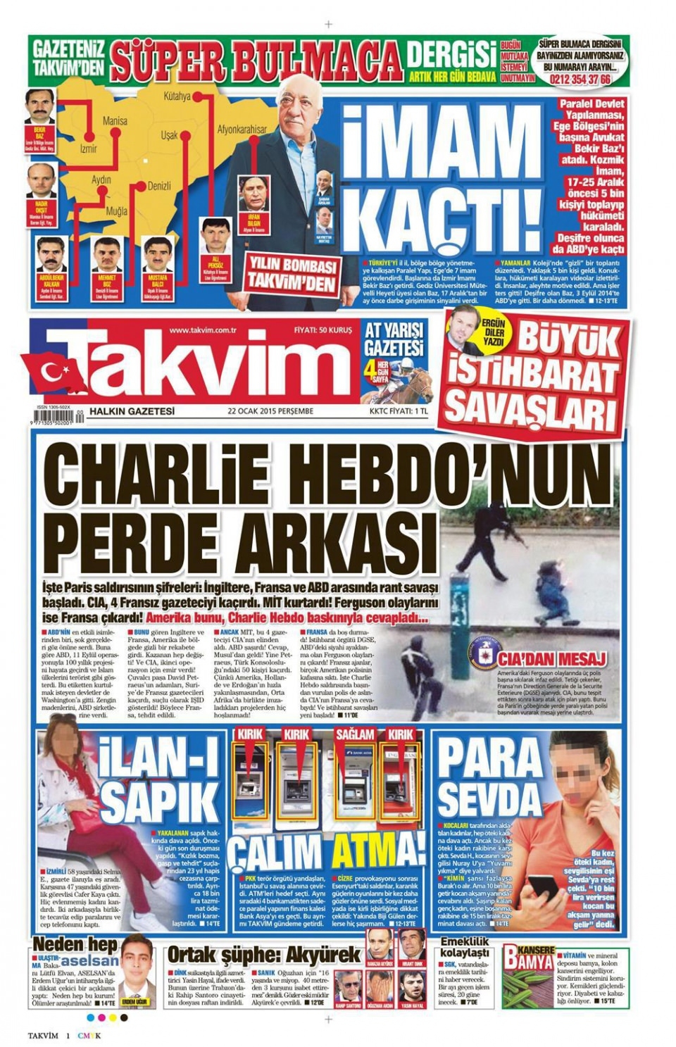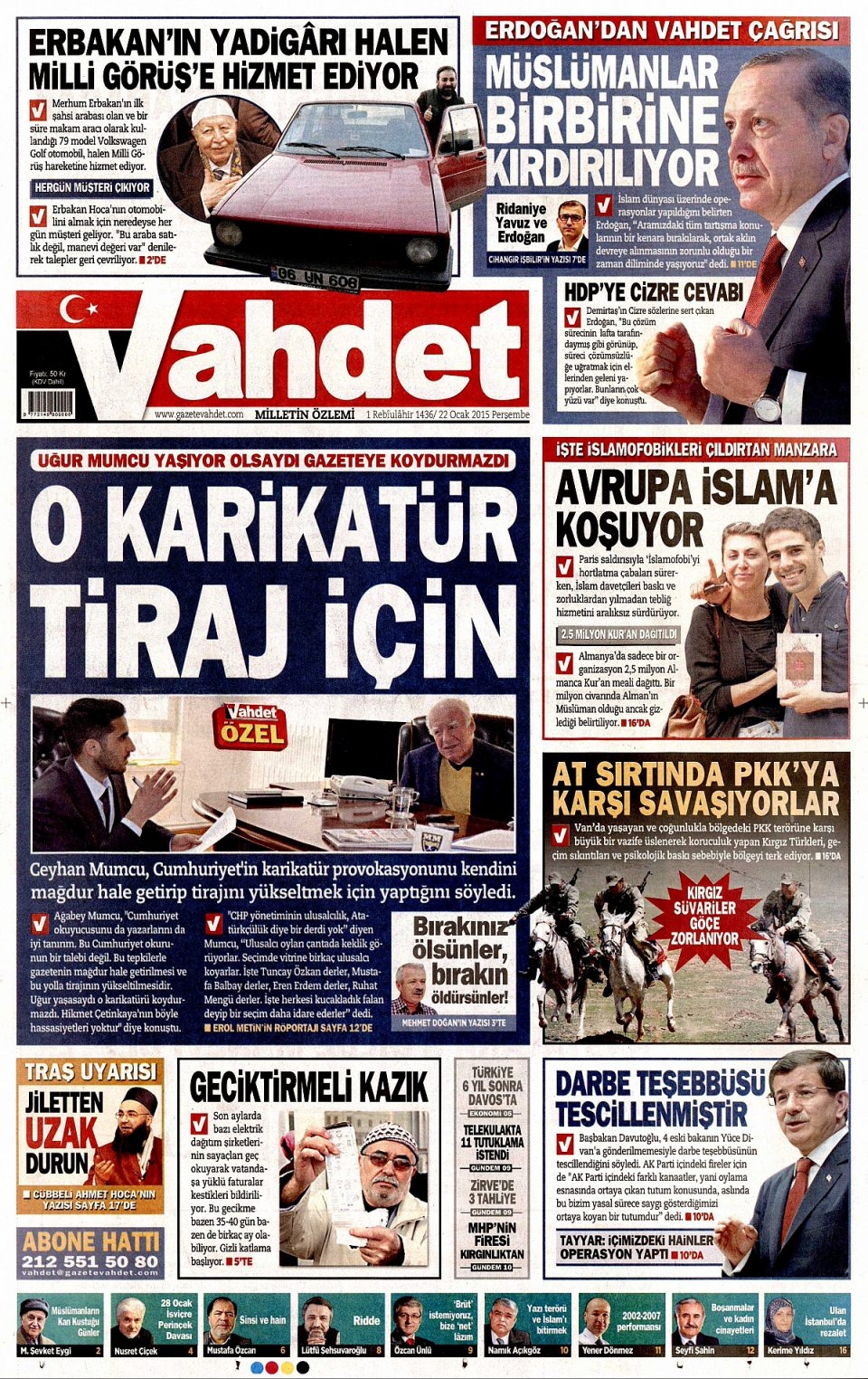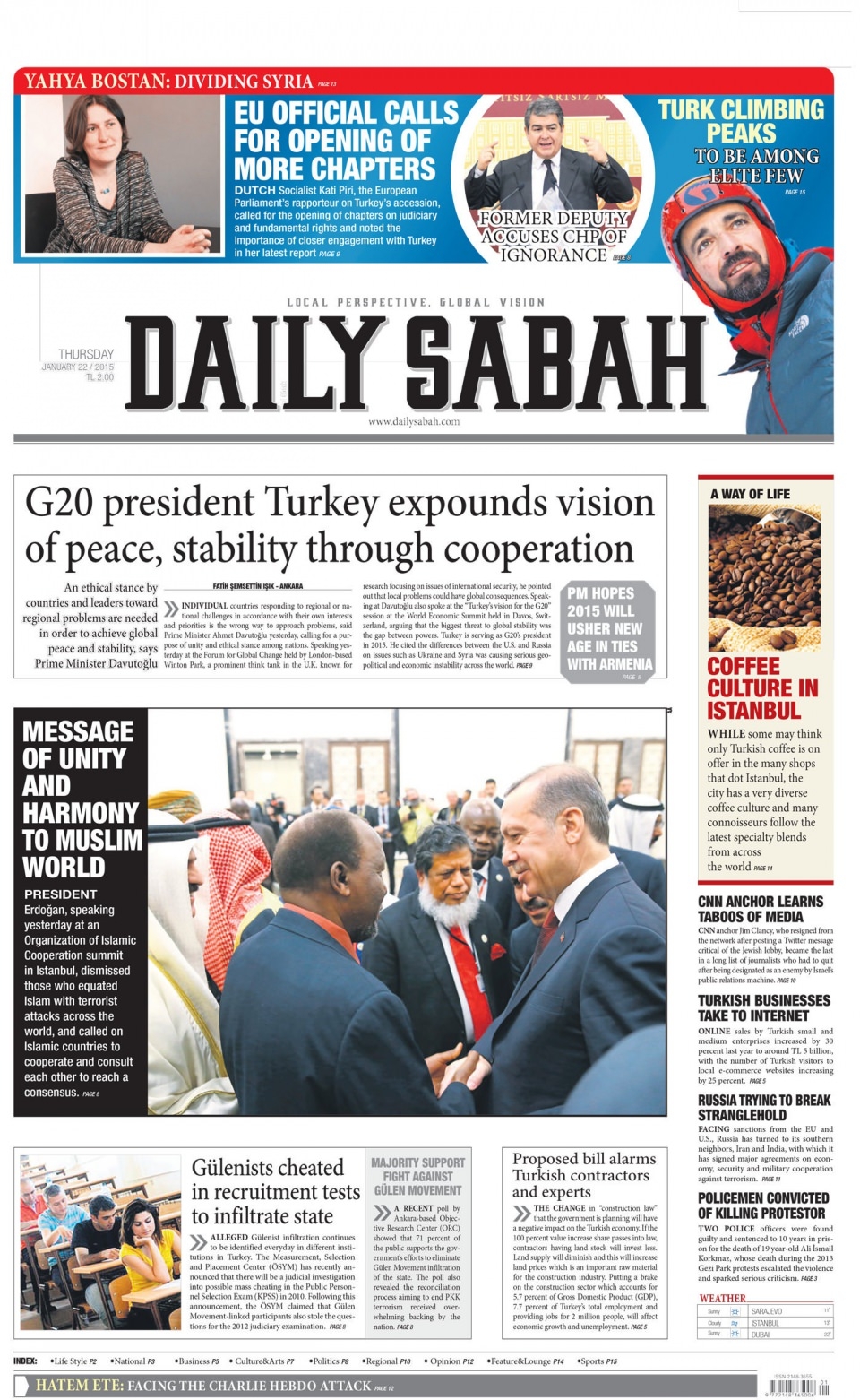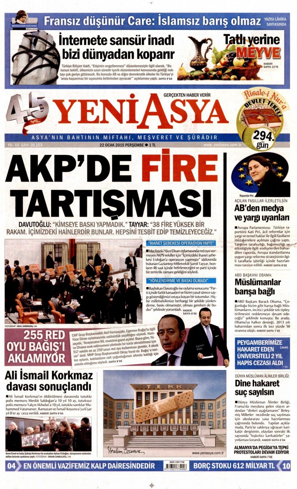 22 Ocak 2015 gazete manşetleri