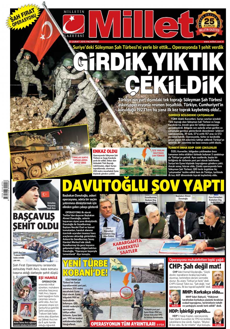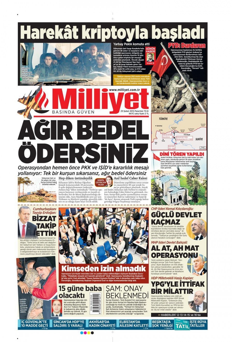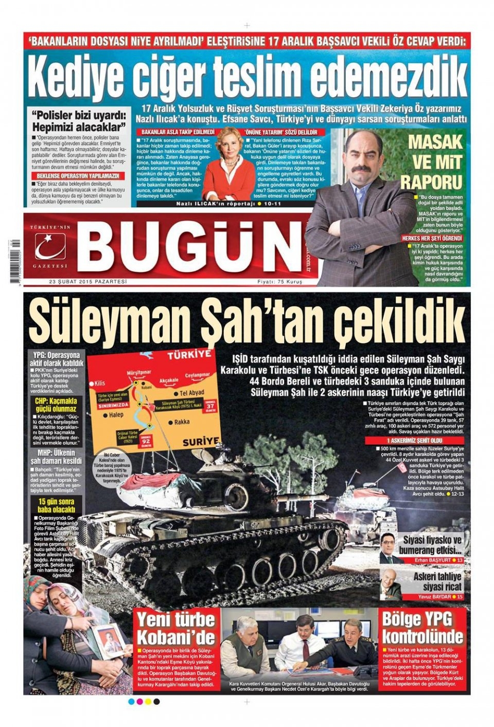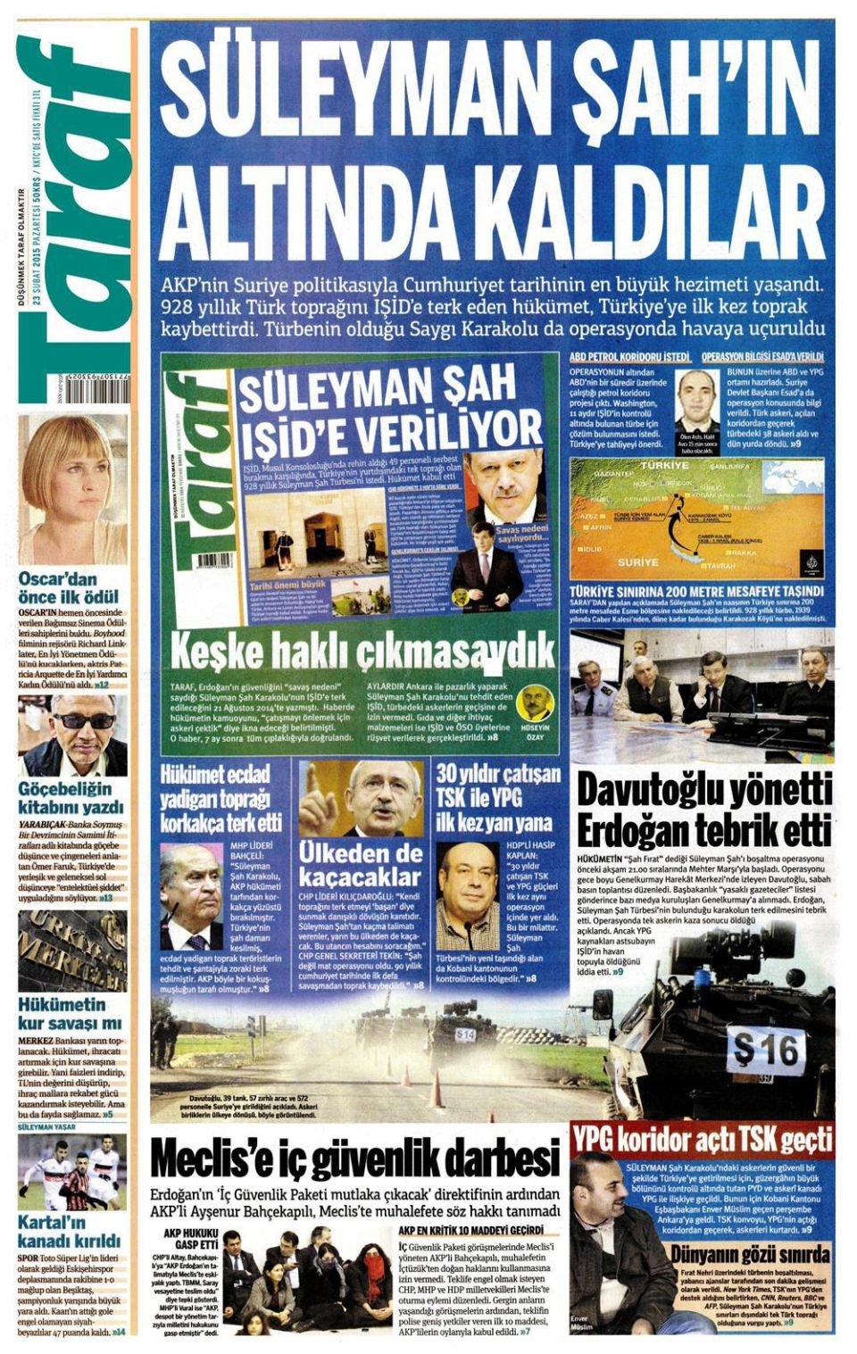 23 Şubat 2014 gazete manşetleri