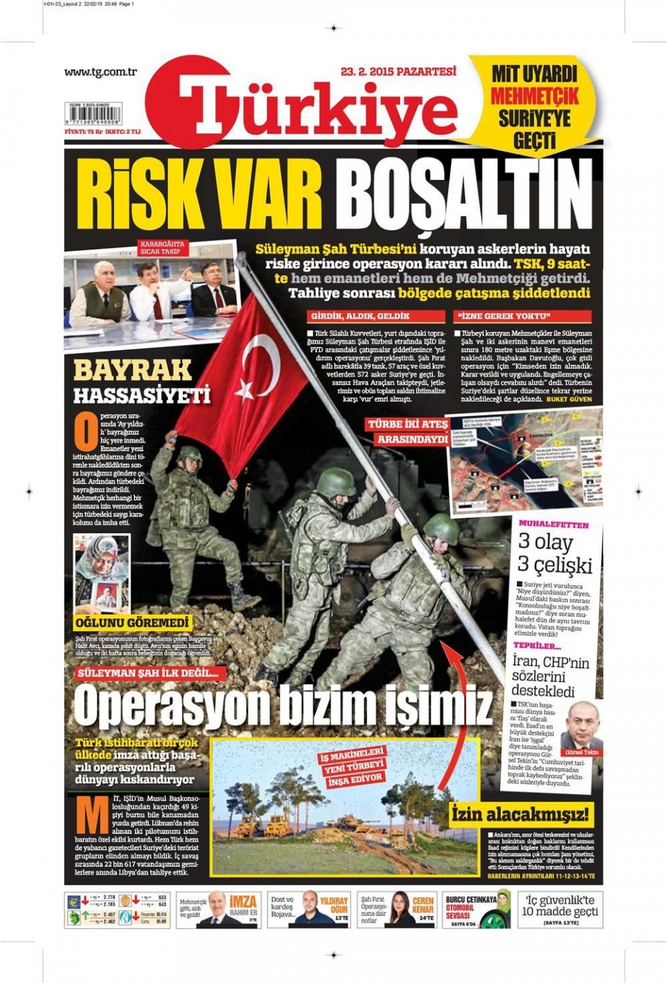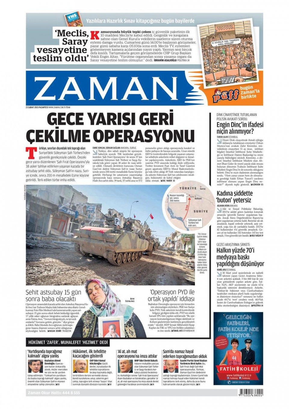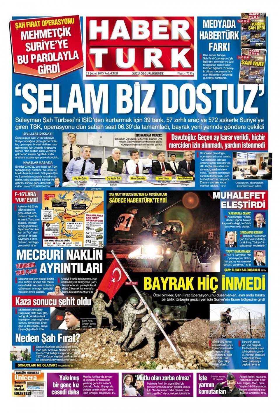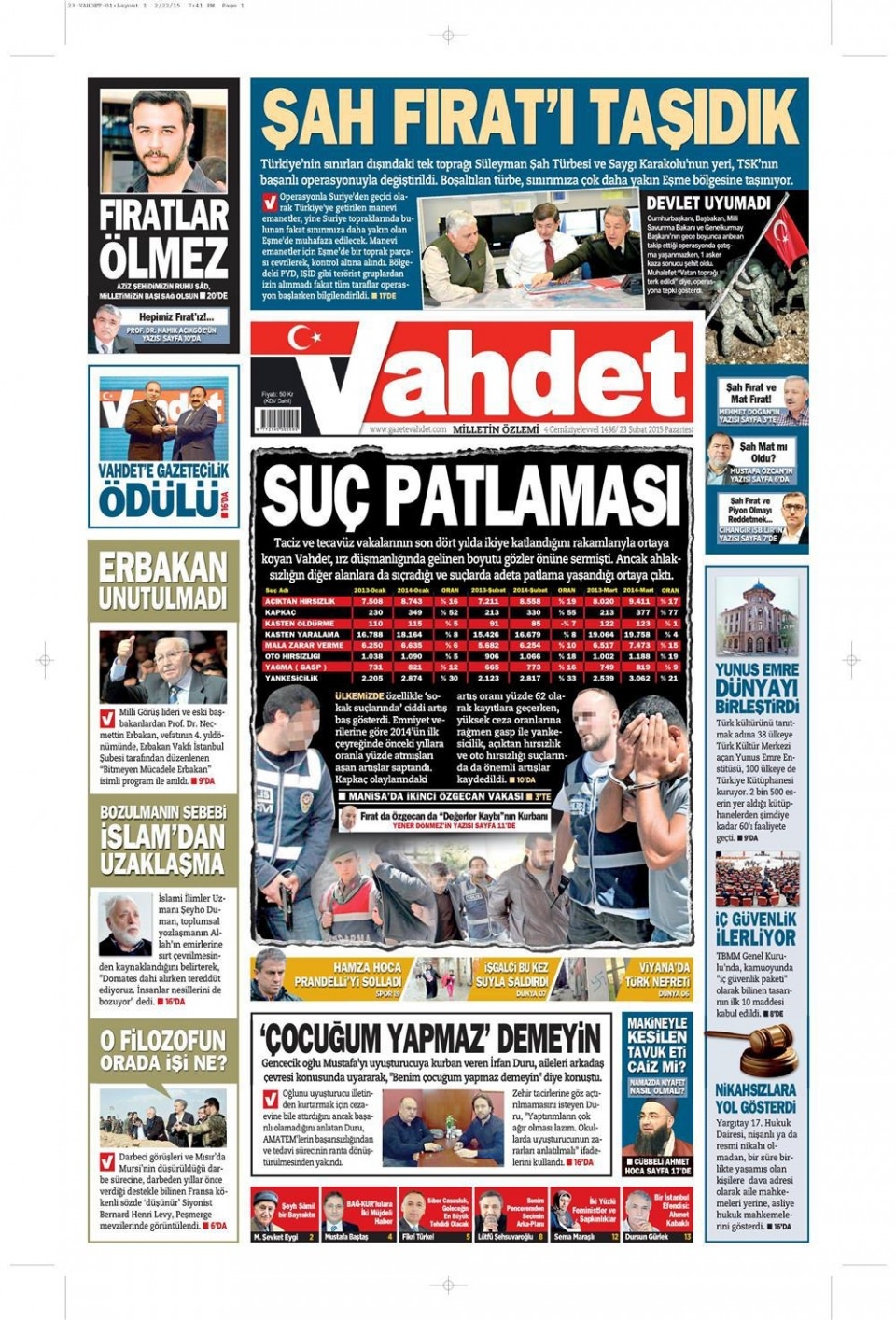 23 Şubat 2014 gazete manşetleri
