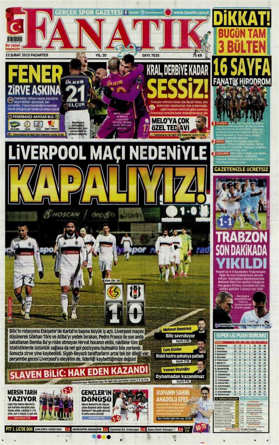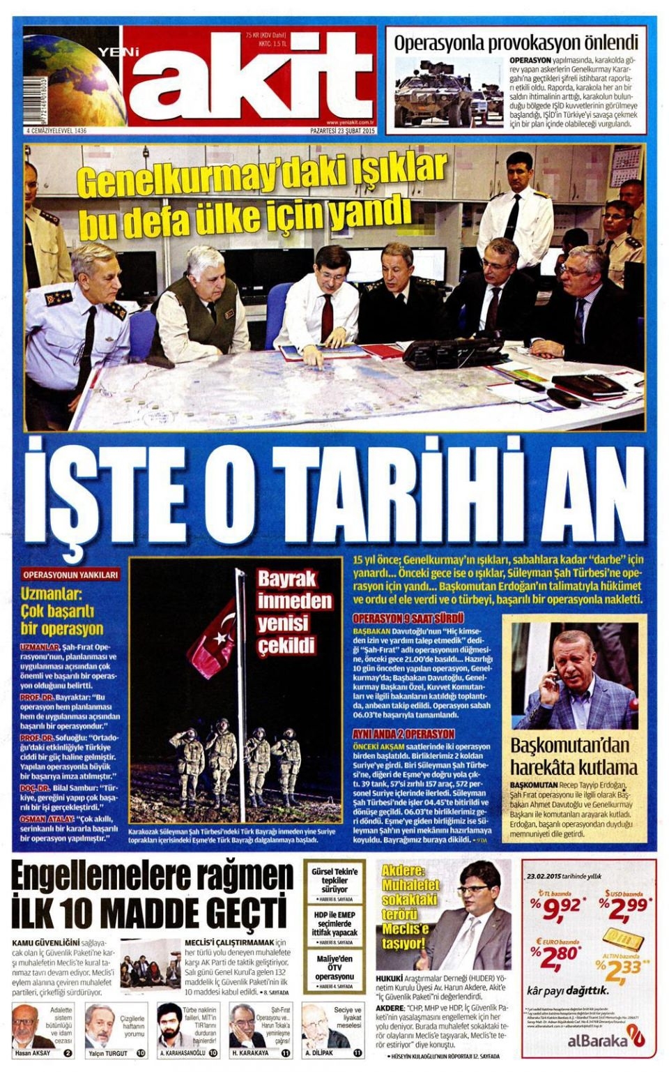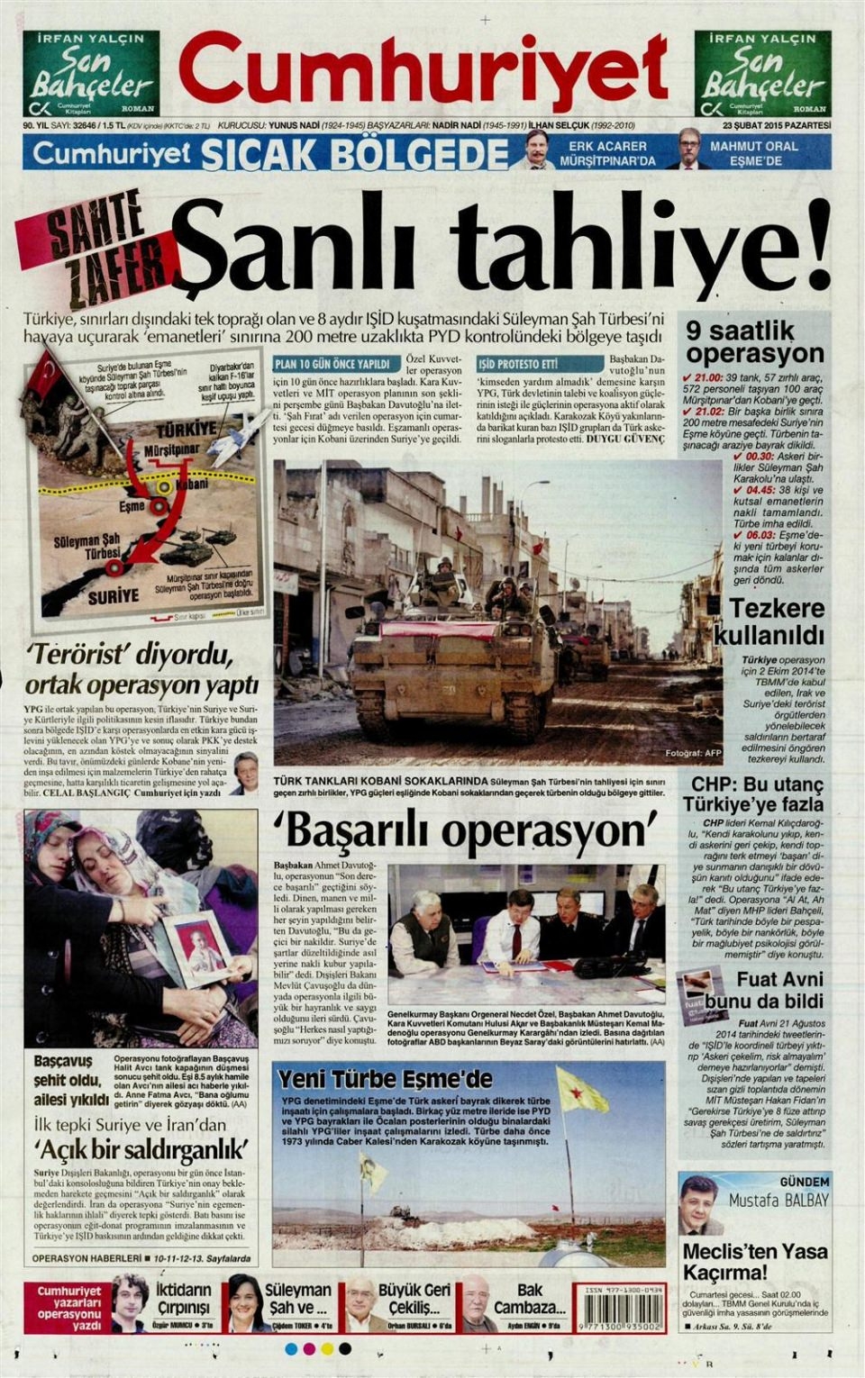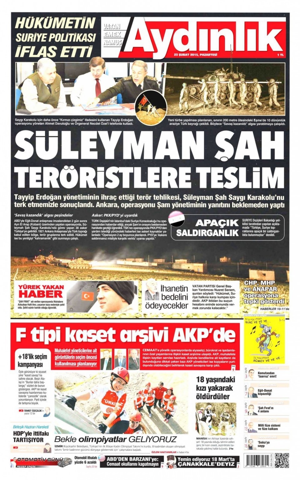 23 Şubat 2014 gazete manşetleri