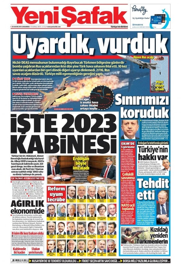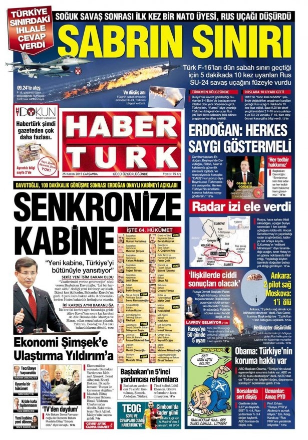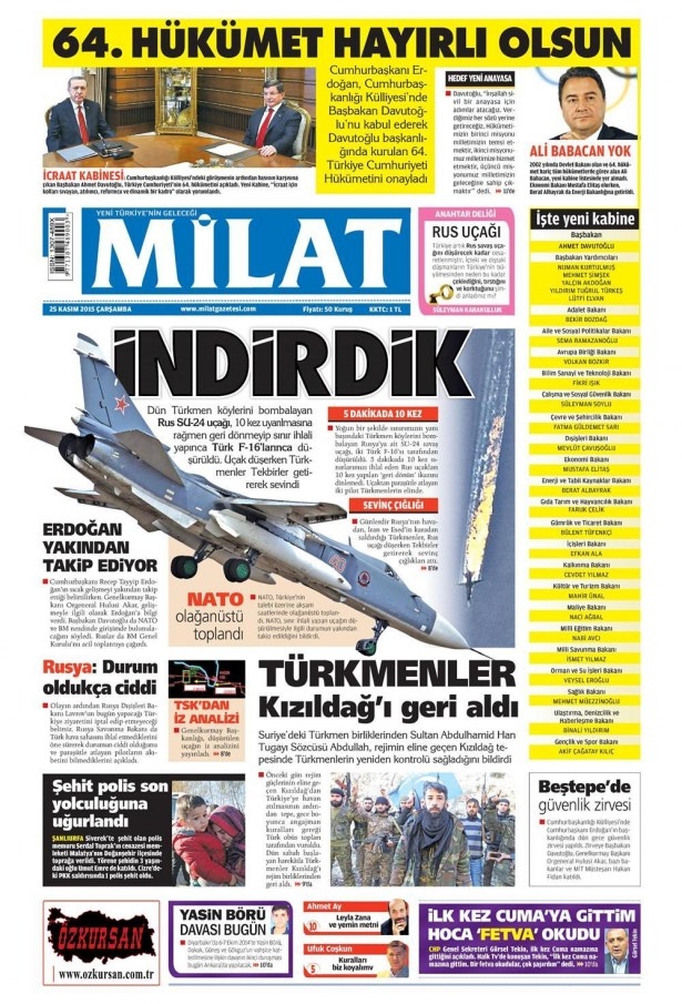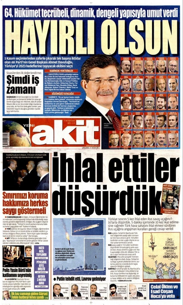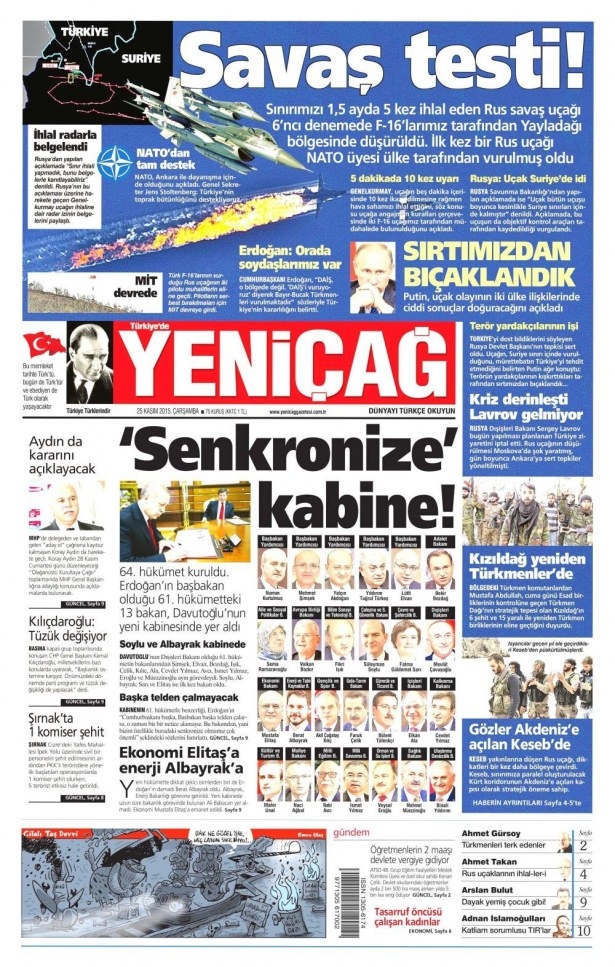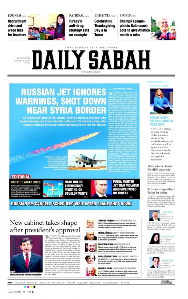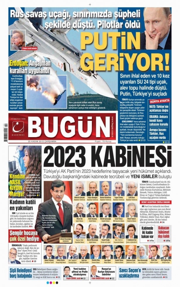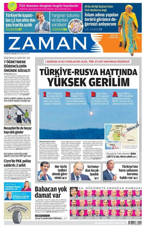 25 Kasım 2015 gazete manşetleri