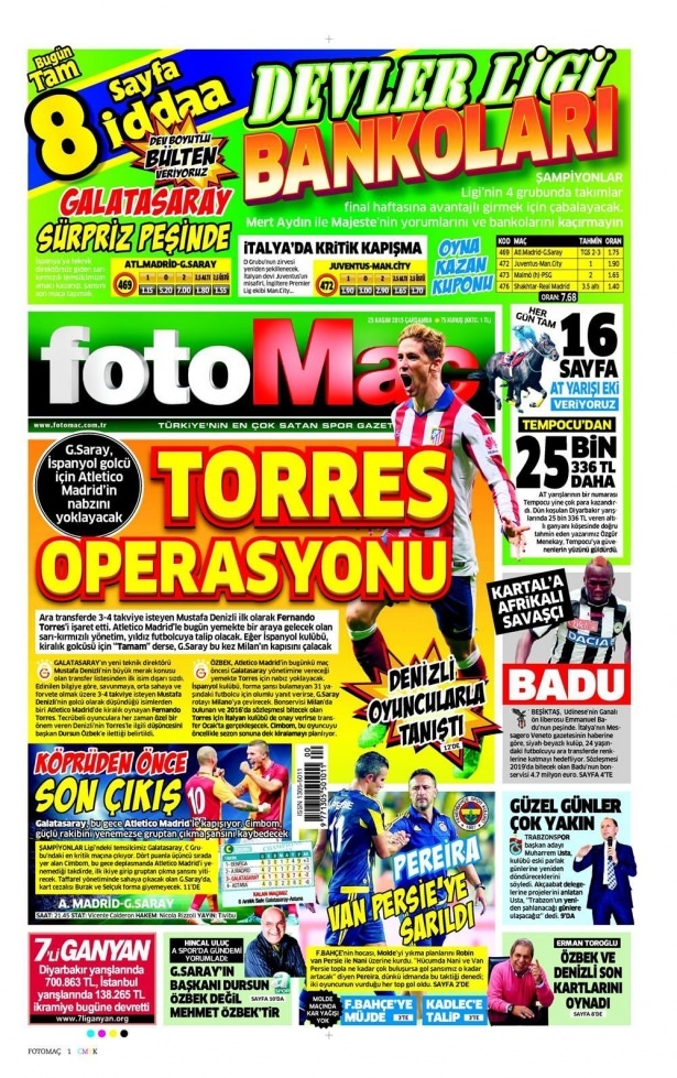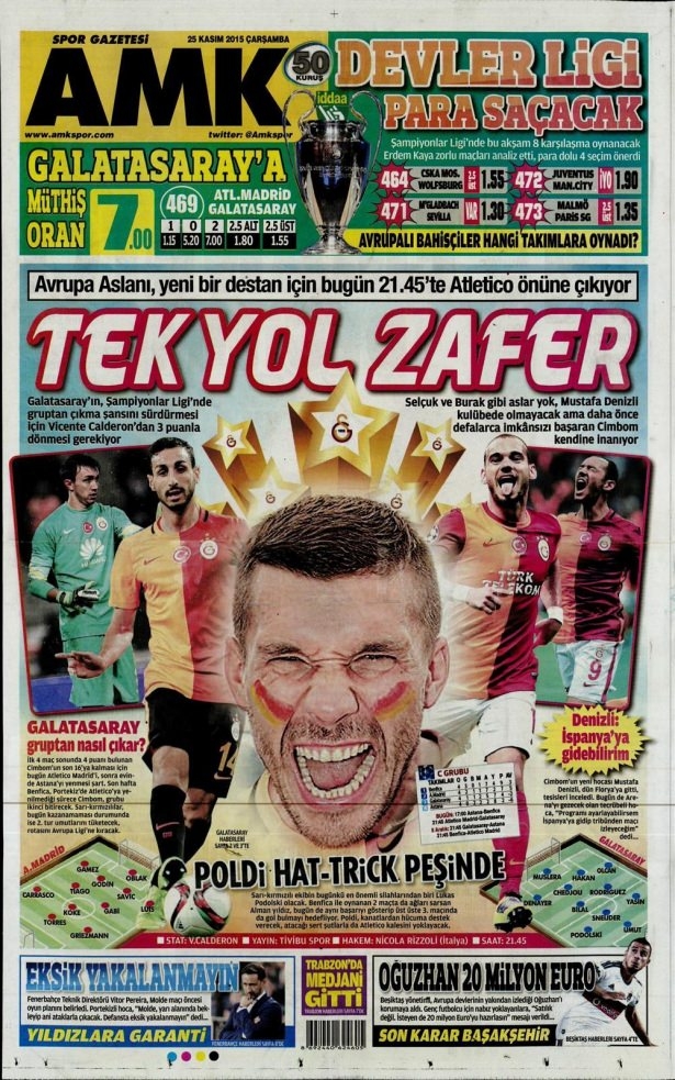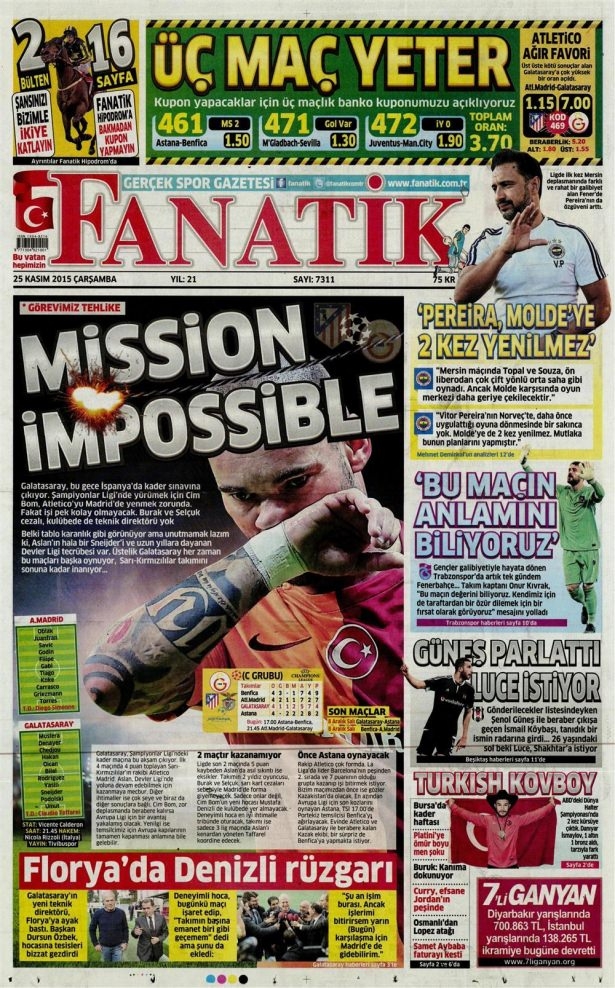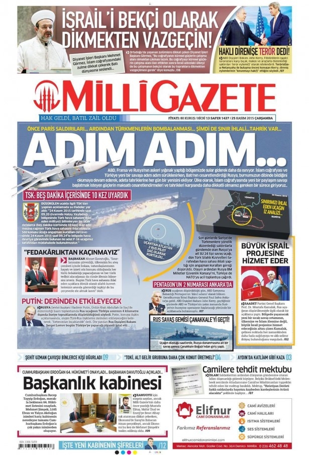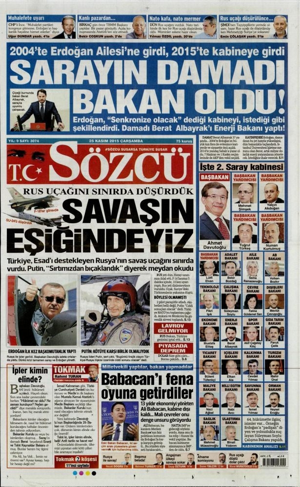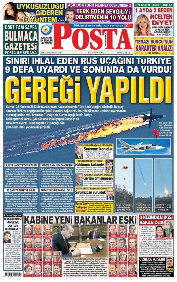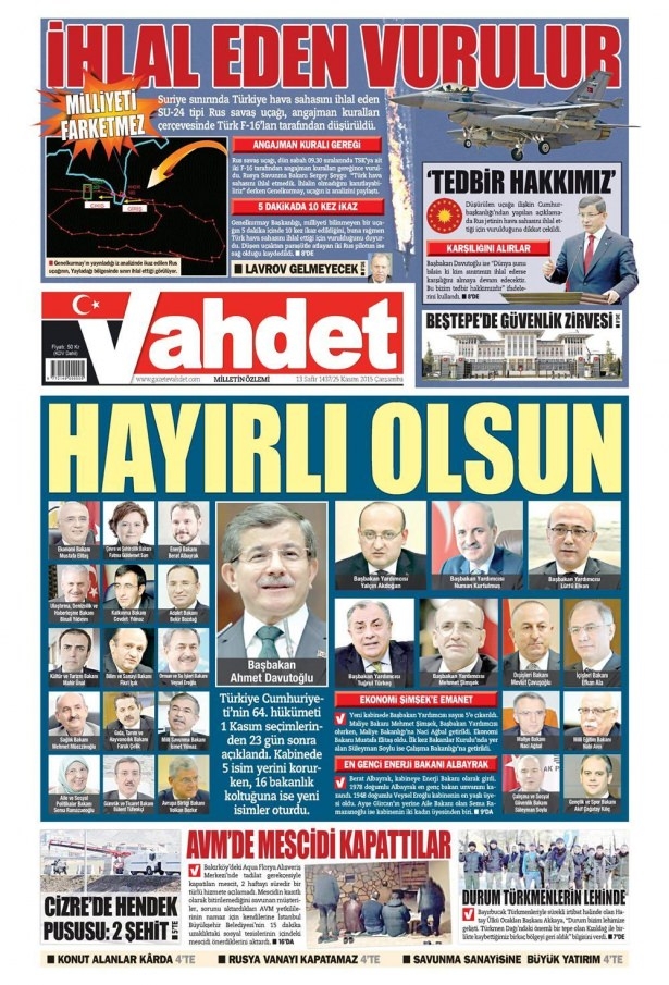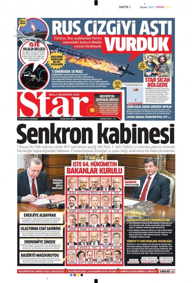 25 Kasım 2015 gazete manşetleri