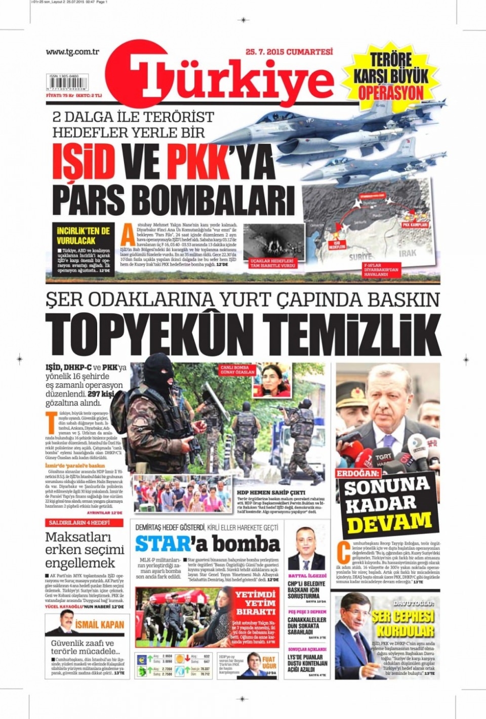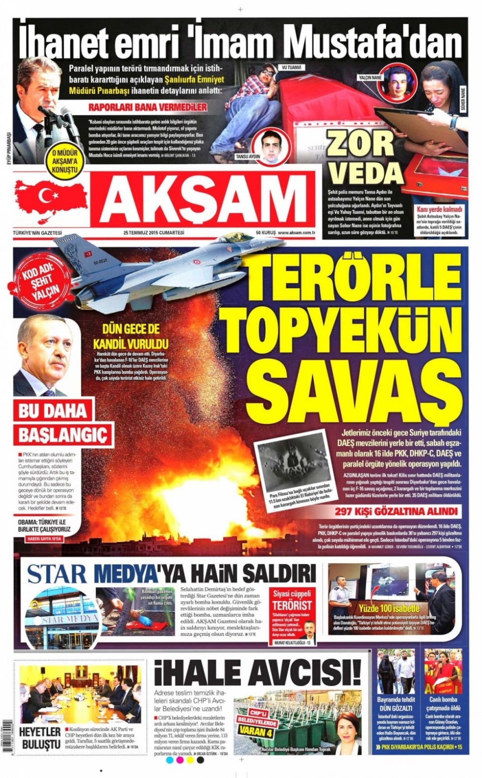 25 Temmuz Cumartesi gazete manşetleri
