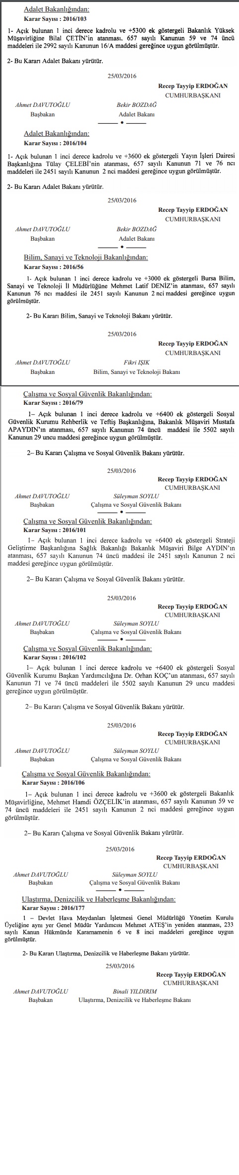 26 Mart 2016 tarihli atama kararları