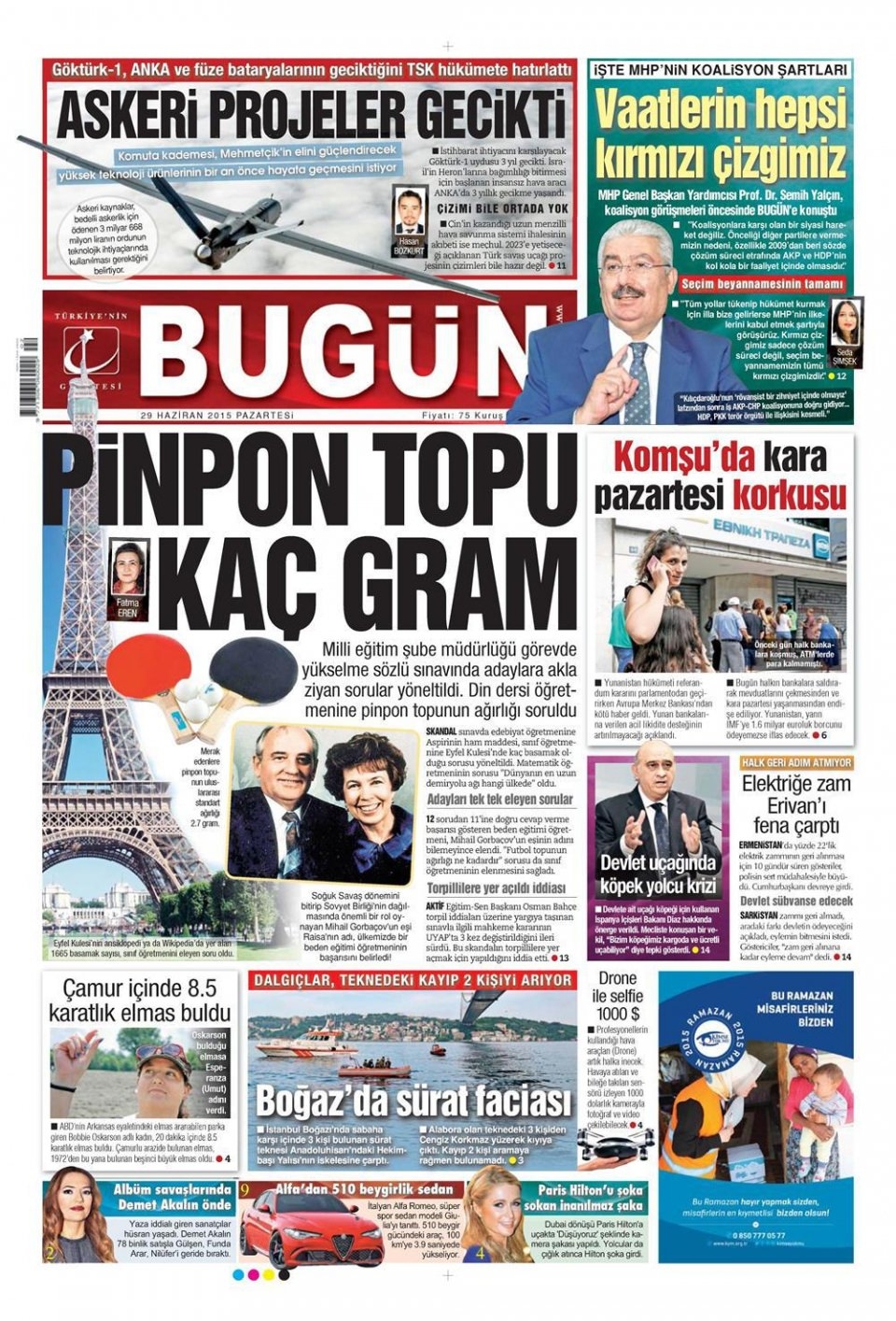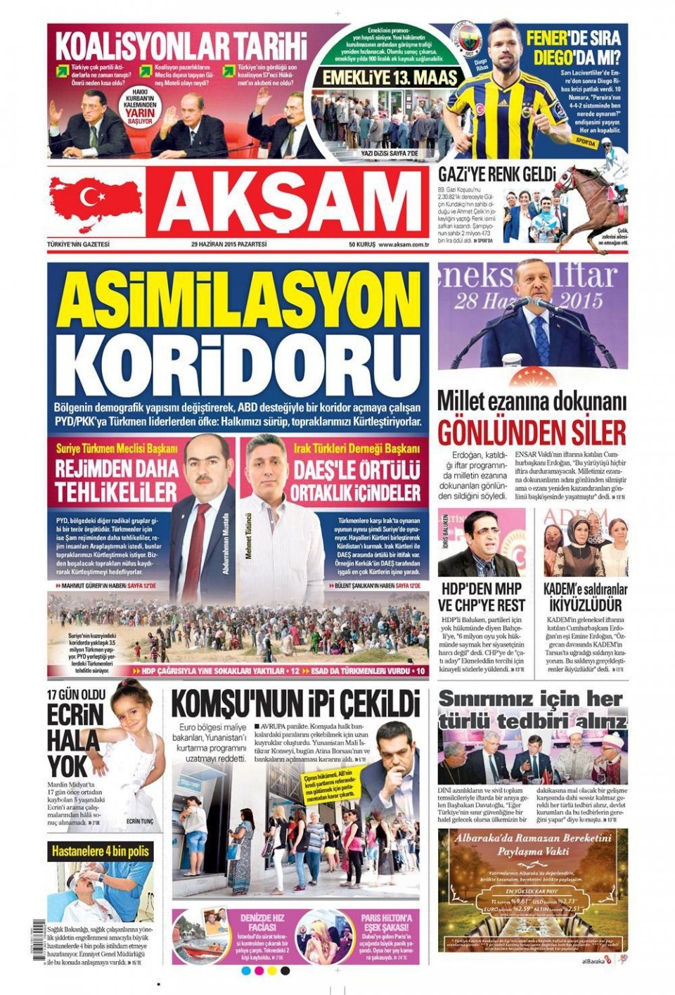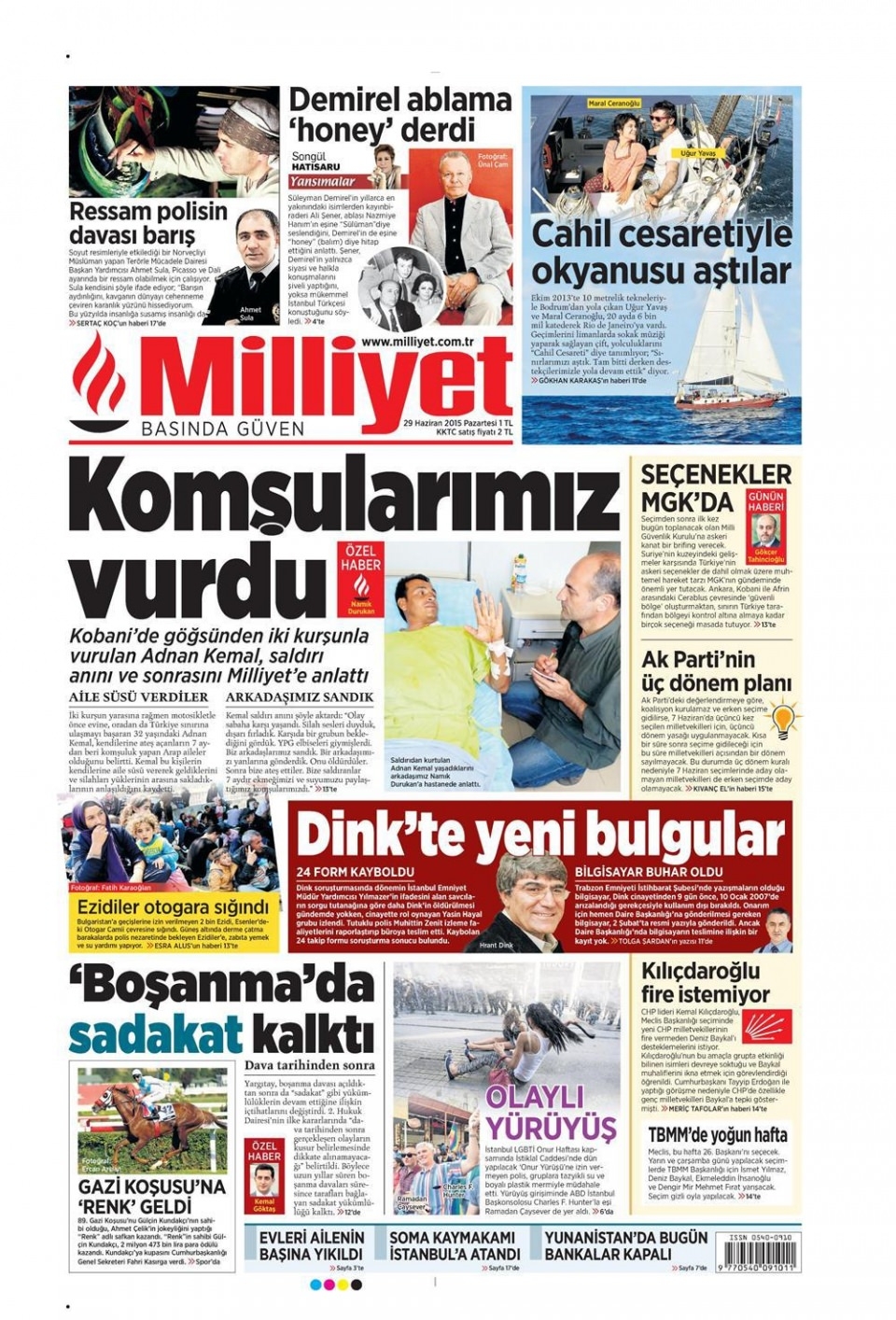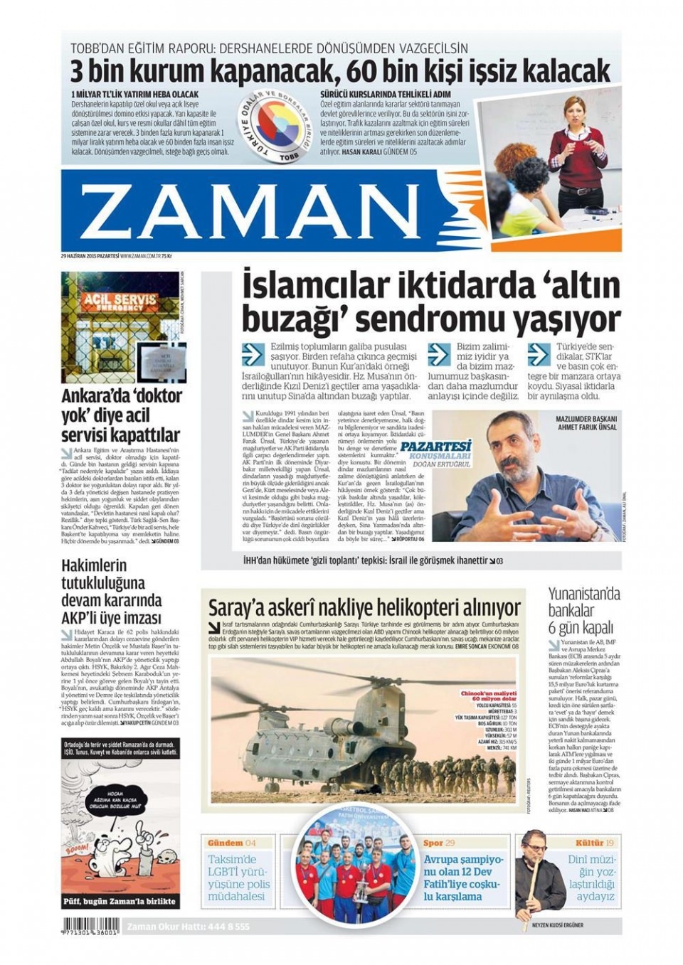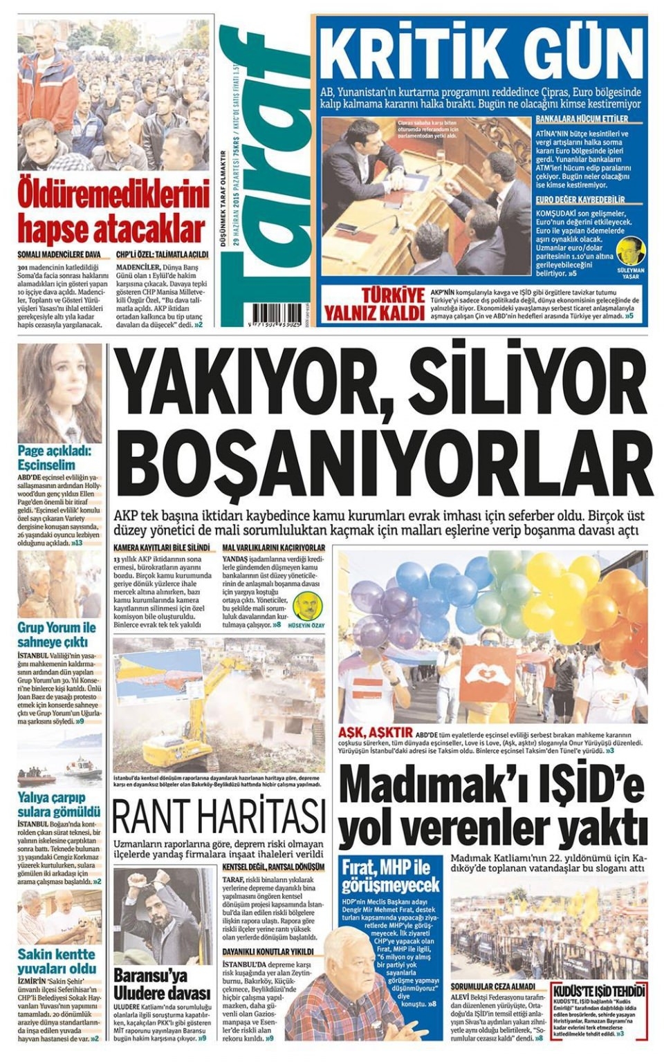29 Haziran 2015 gazete manşetleri