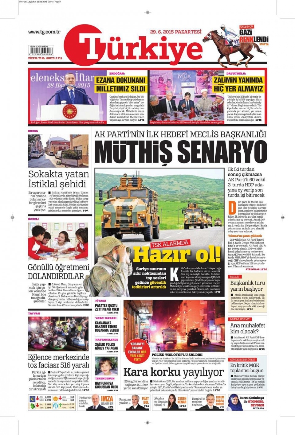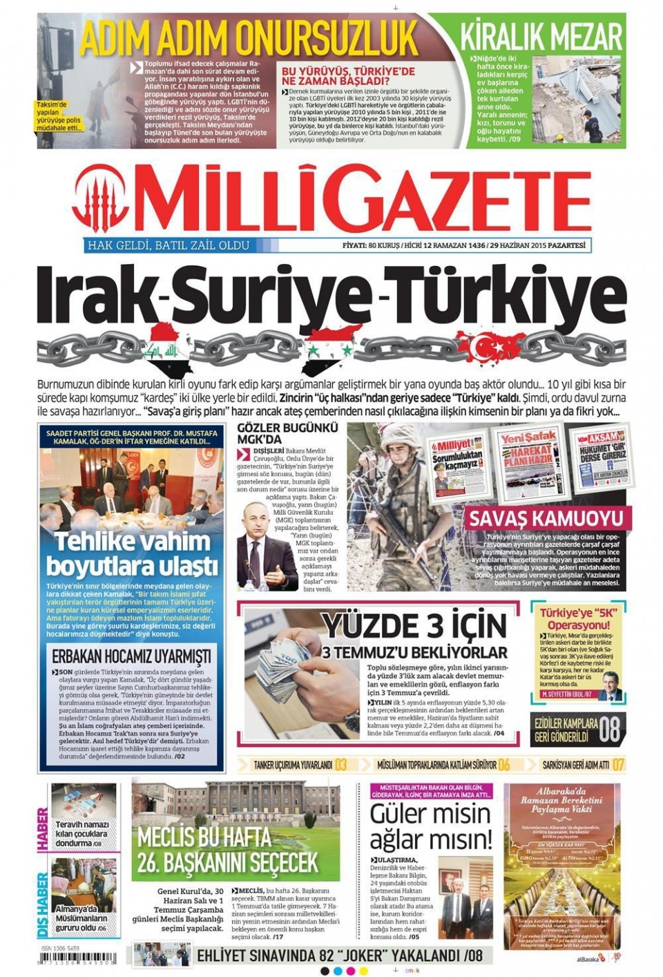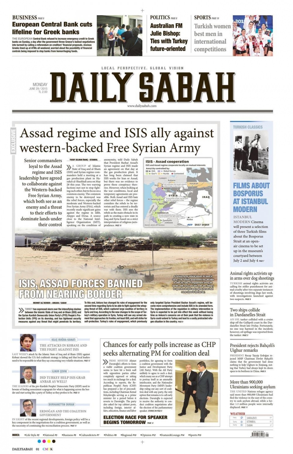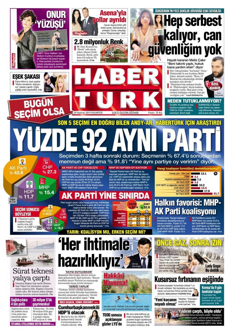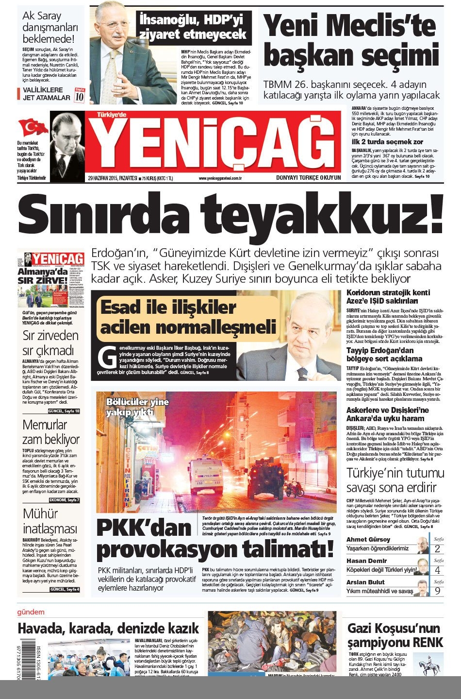 29 Haziran 2015 gazete manşetleri