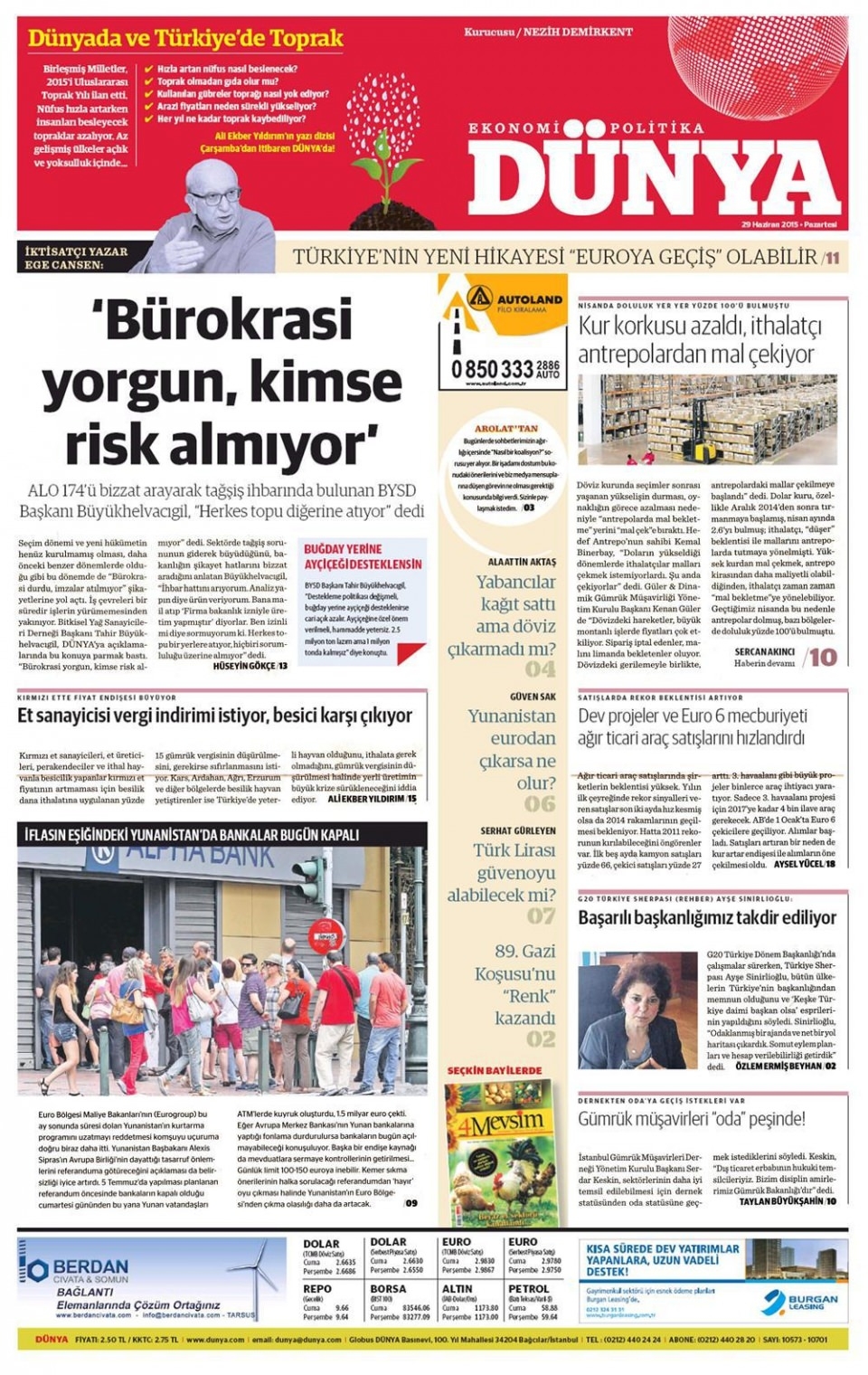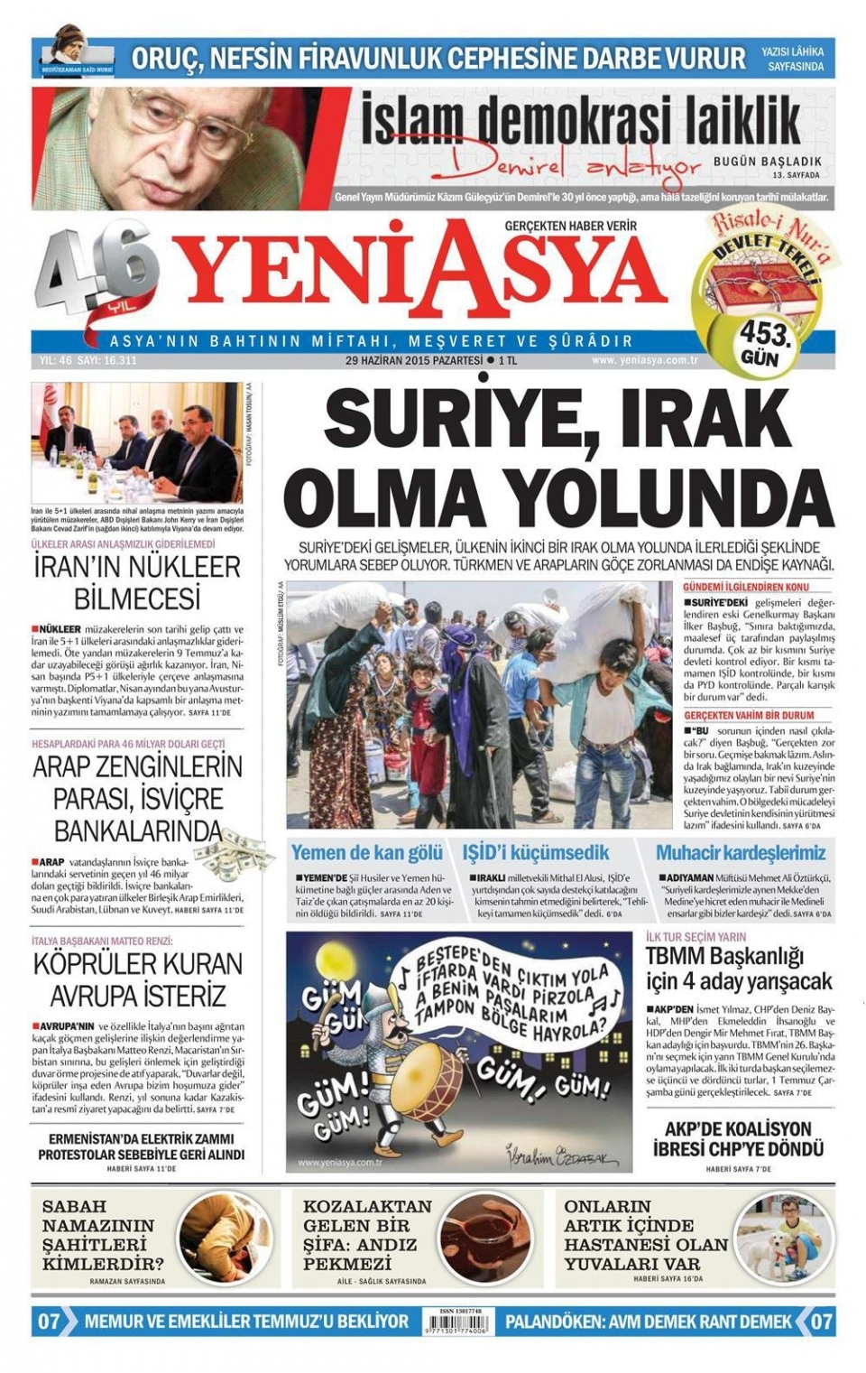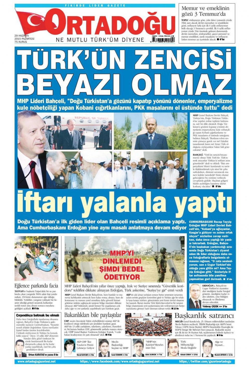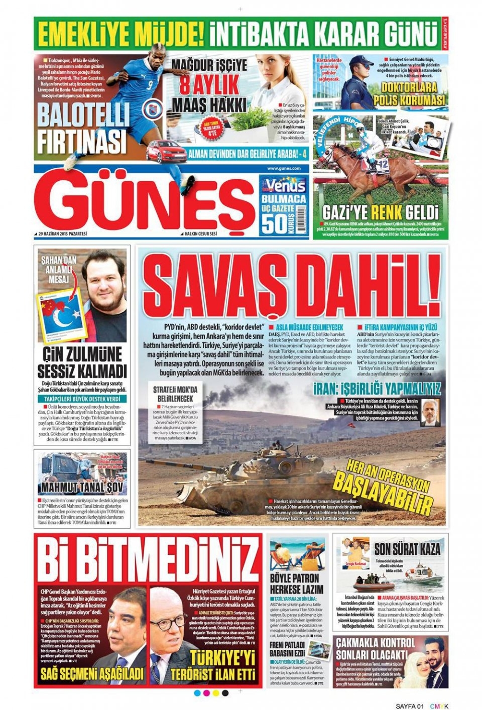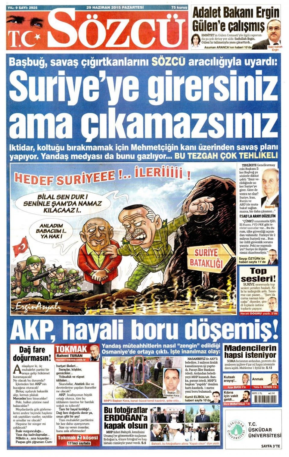 29 Haziran 2015 gazete manşetleri