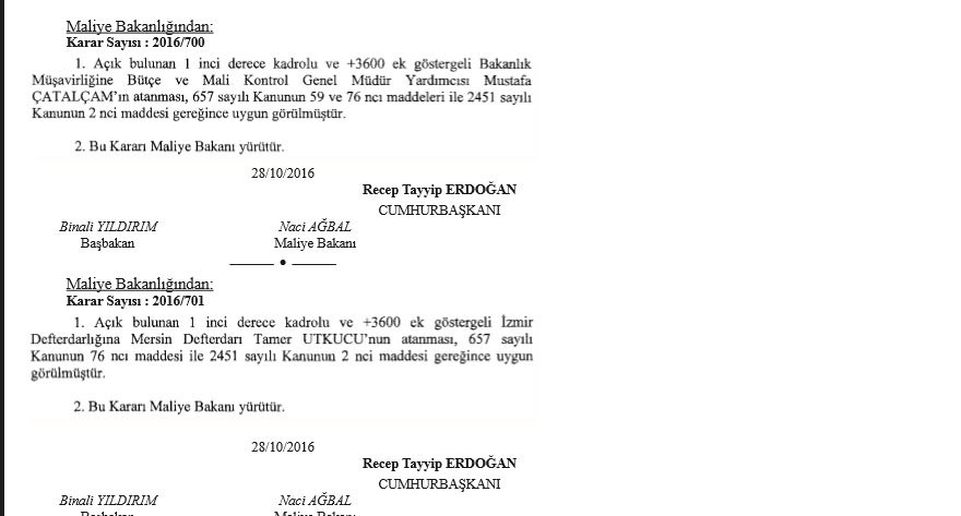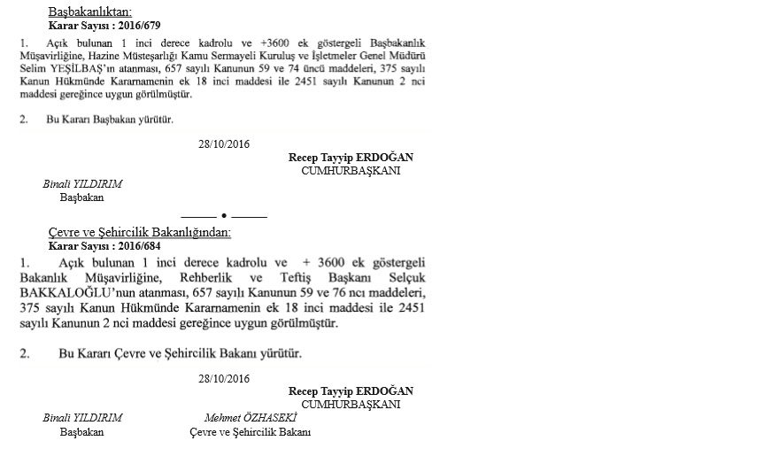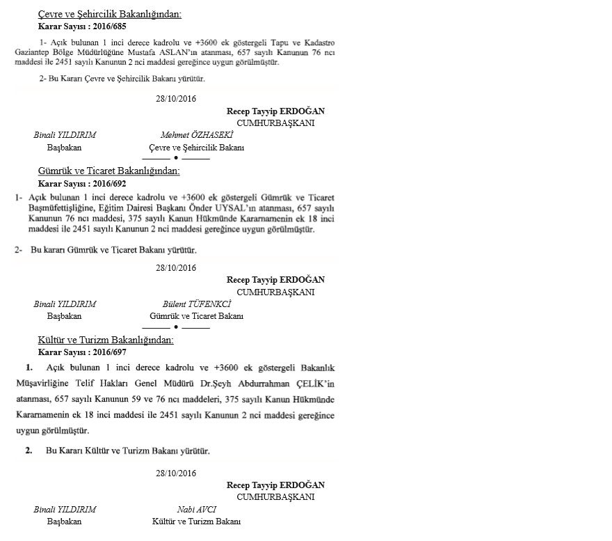 29/10/2016 tarihli atama kararları Resmi Gazete'de yayımlandı