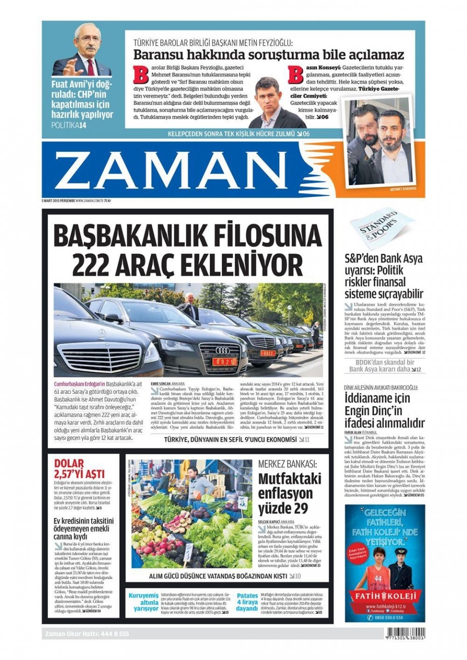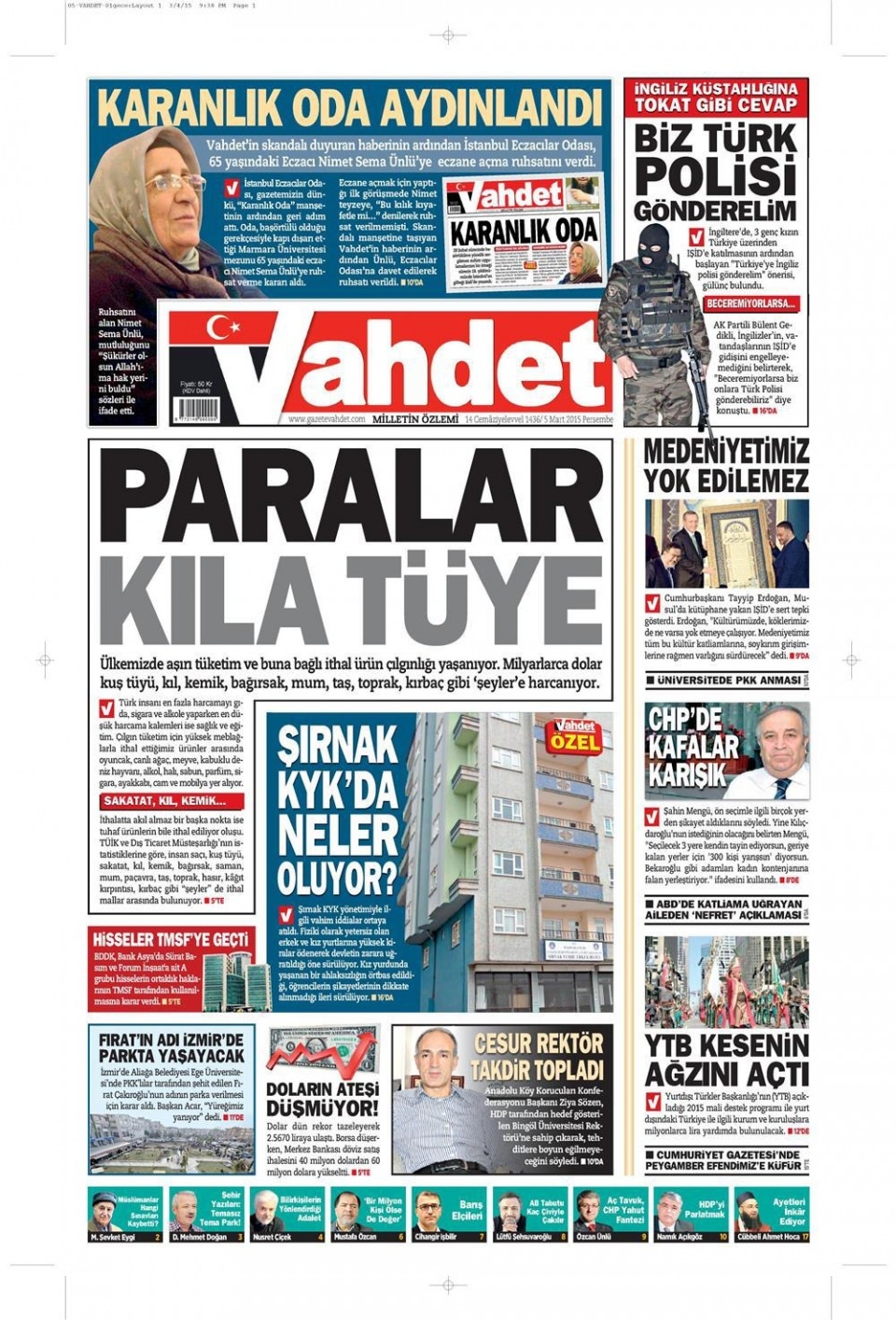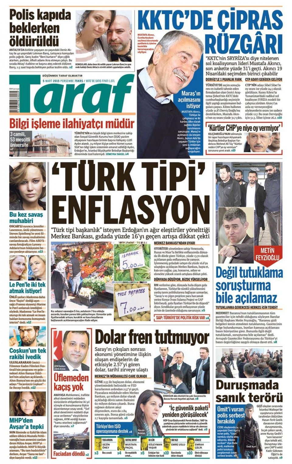 5 Mart 2015 gazete manşetleri
